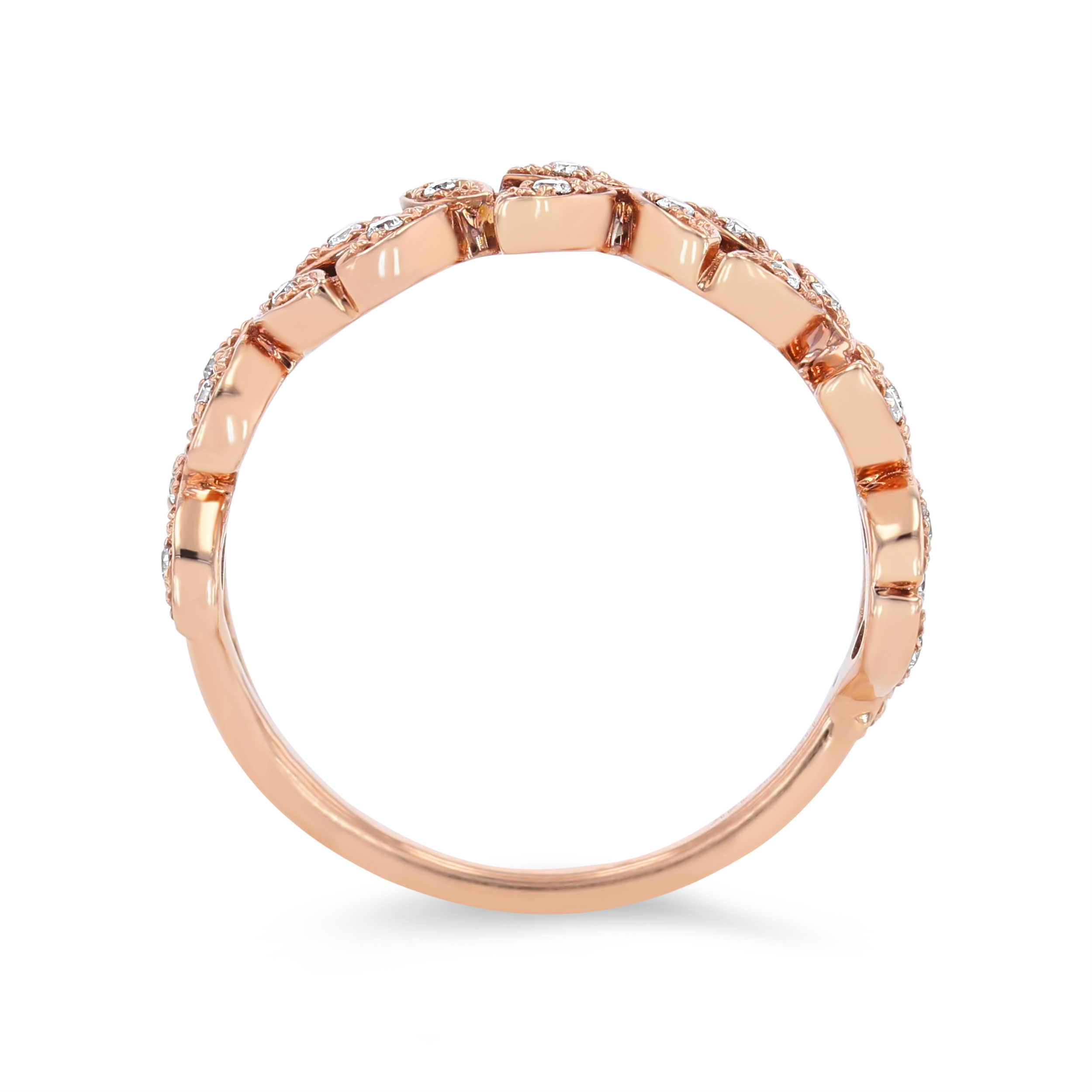 Product Description This stunning floral design features petal details accented with 0.15 carats of round brilliant cut diamonds. Wear with a set or by itself on your right hand. Other Details Style: Contemporary Metal Color: Yellow Gold Disable Reason: None Gemstone Type: Diamond Type: Ladies Wedding Band Total Setting Diamond Carat Weight: 0.15TW Metal Color: Rose Gold Wedding Band Type: Vintage Diamond: Stackable Metal Color: Platinum Ring Type: Fashion Metal Color: White Gold