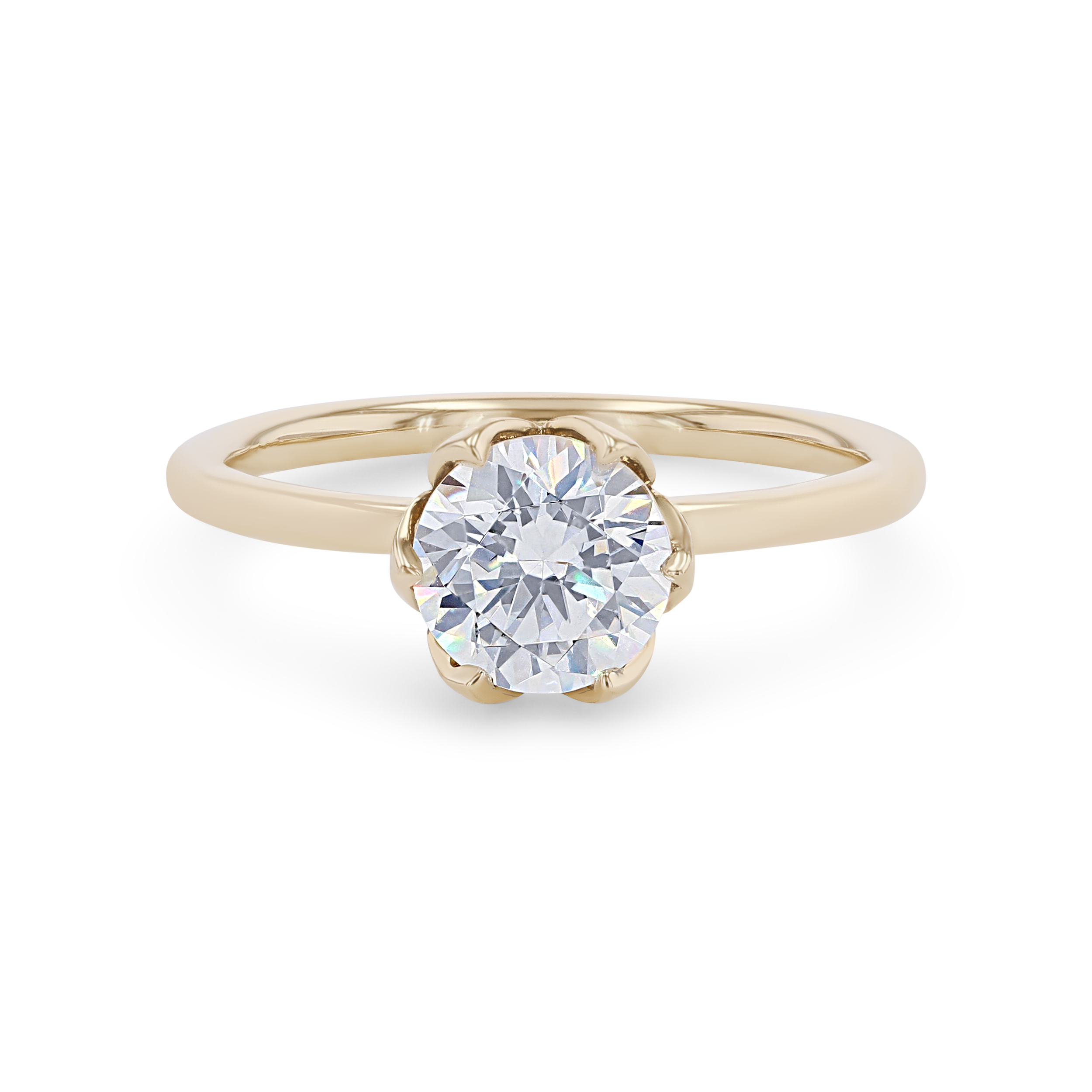 Product Description A delicate floral-inspired head holds the center stone in six-prongs in this simple solitaire setting. Other Details Mounting Type: Solitaire Type: Setting Metal Color: Platinum Style: Vintage Metal Color: White Gold Disable Reason: None Metal Color: Yellow Gold Metal Color: Rose Gold
