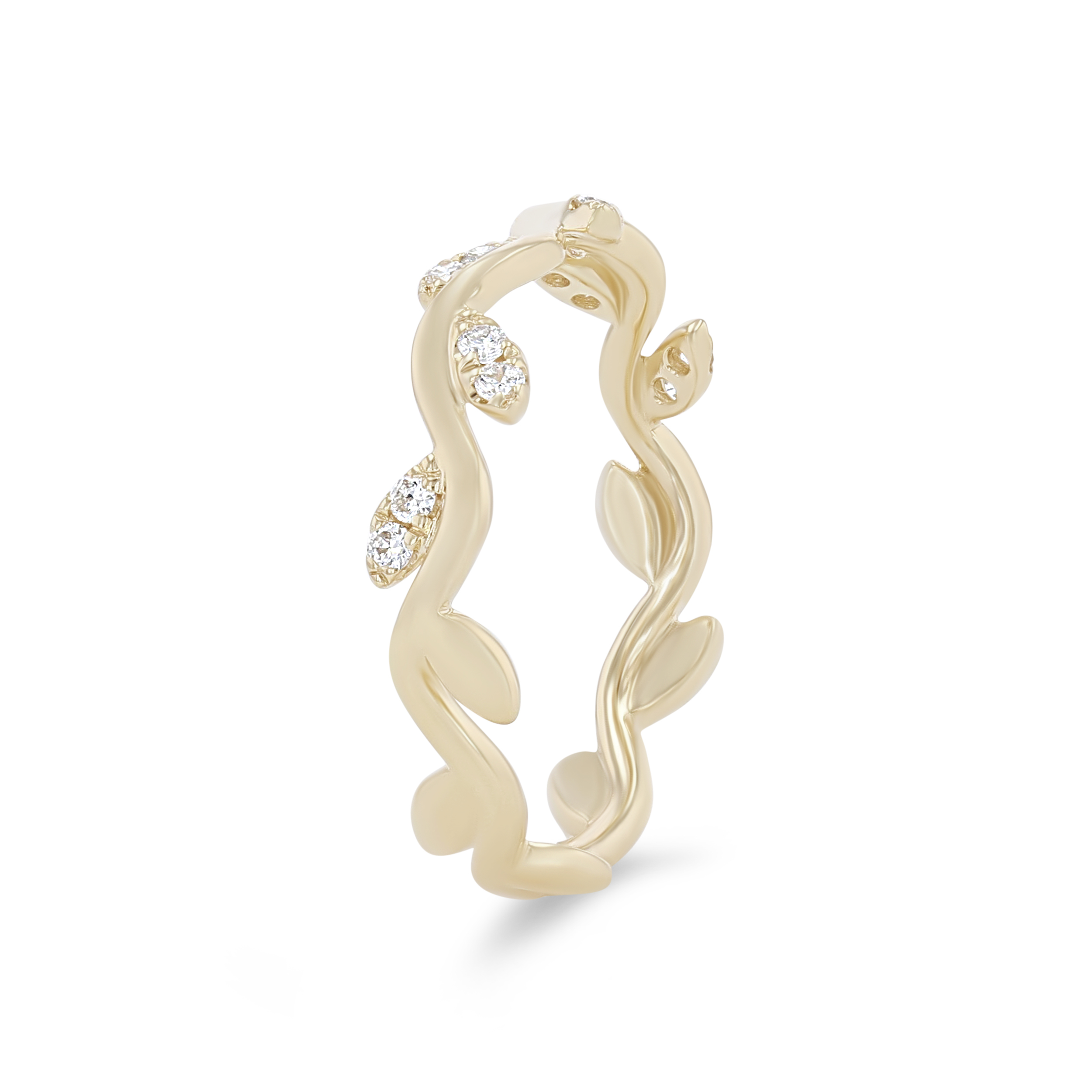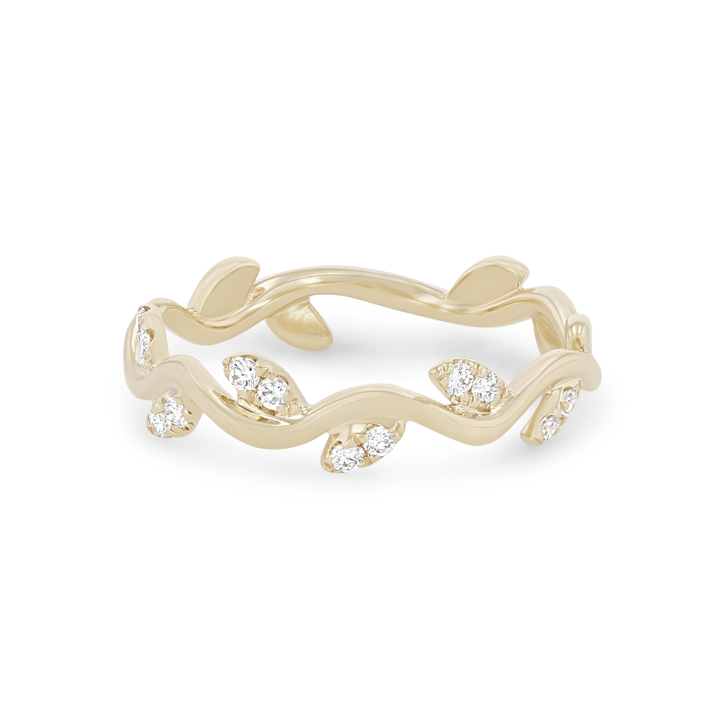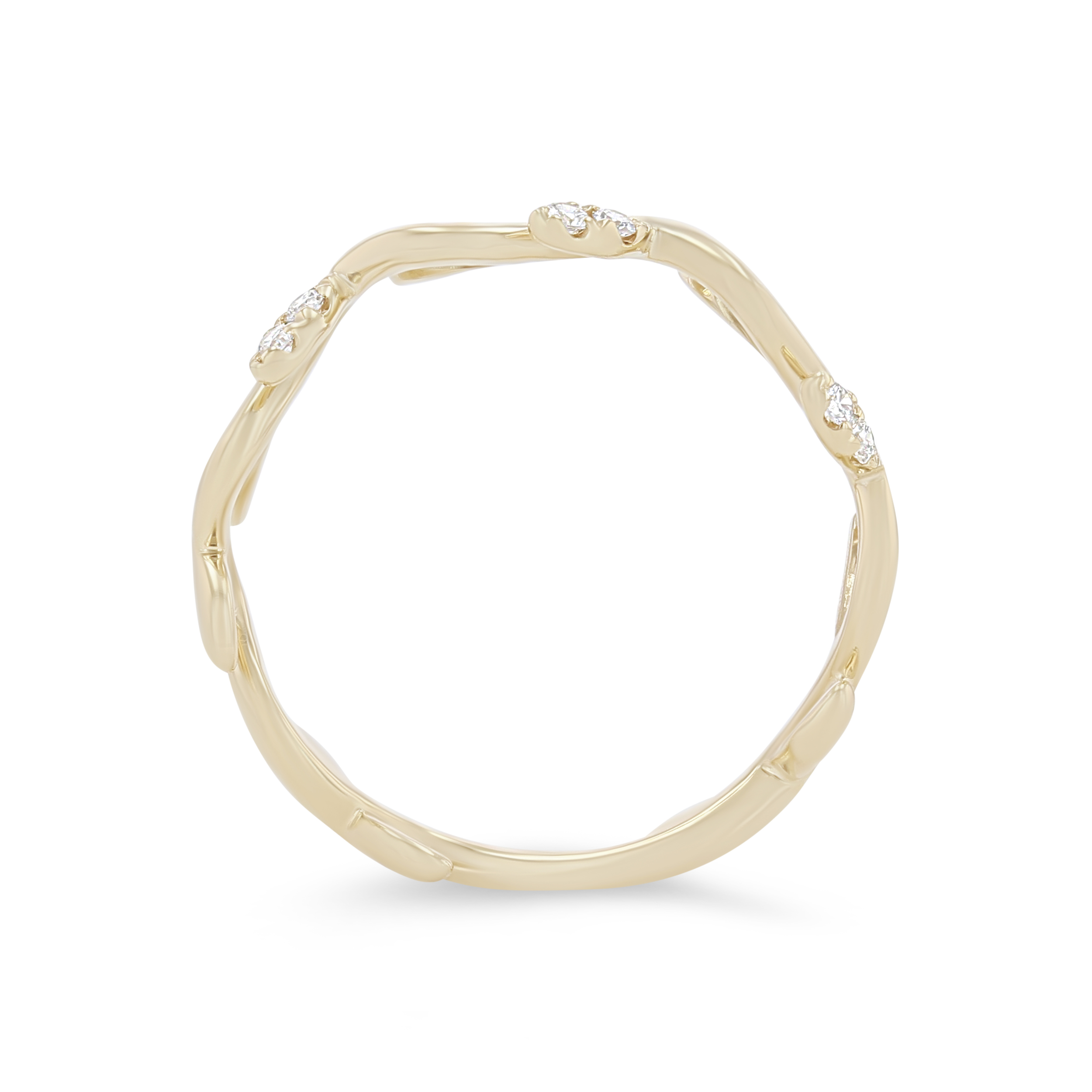 Product Description Crafted like a vine with delicate petals, this band features 0.11 carats of round brilliant cut diamonds. Other Details Metal Color: Rose Gold Metal Color: White Gold Metal Color: Yellow Gold Diamond: Stackable Gemstone Type: Diamond Metal Color: Platinum Disable Reason: None Total Setting Diamond Carat Weight: 0.11TW Type: Ladies Wedding Band Style: Contemporary Wedding Band Type: Twist