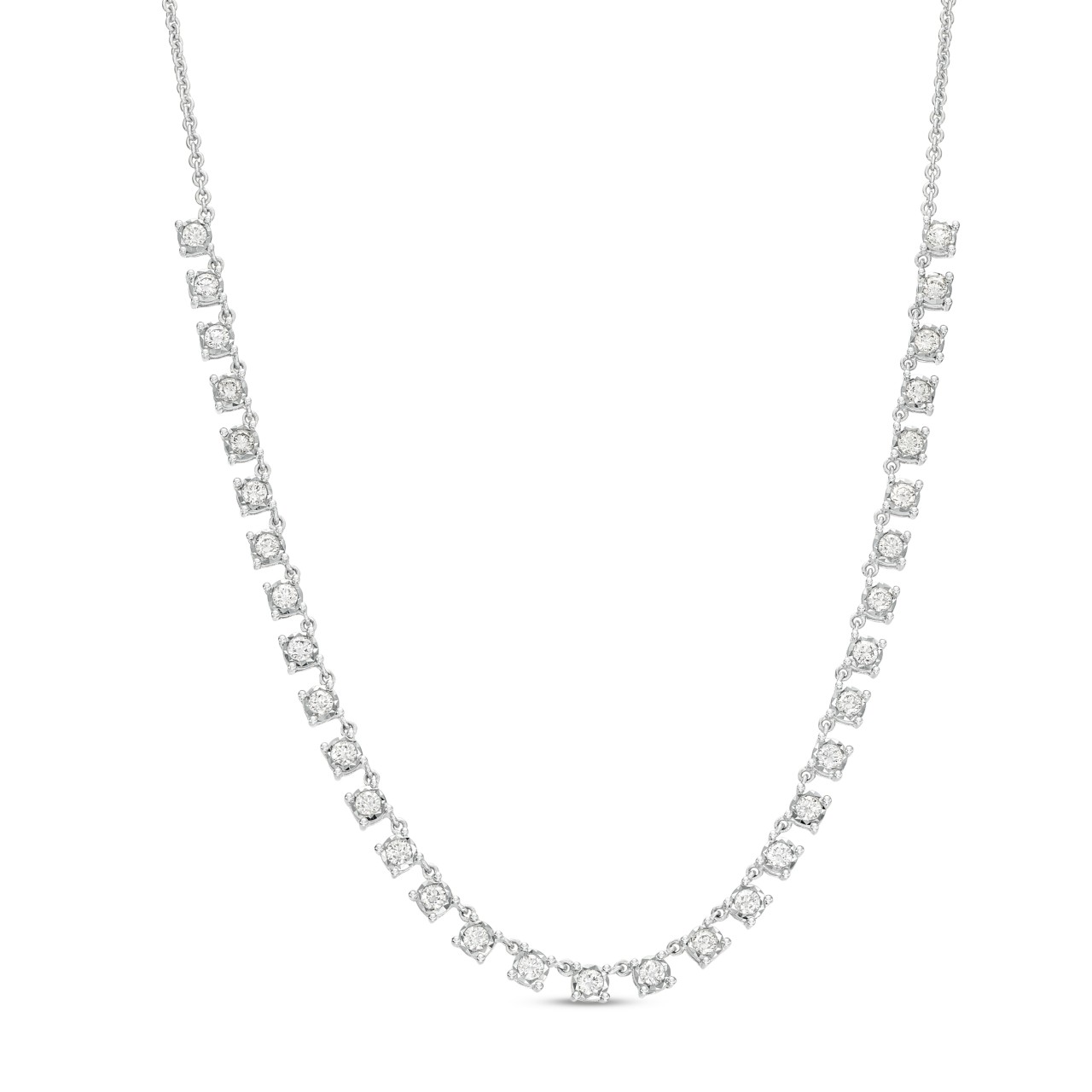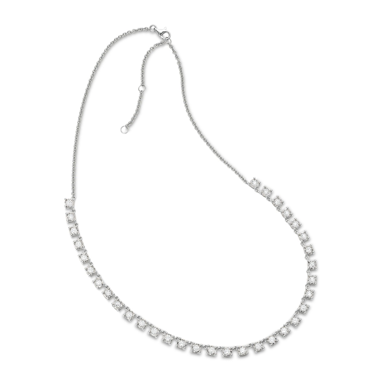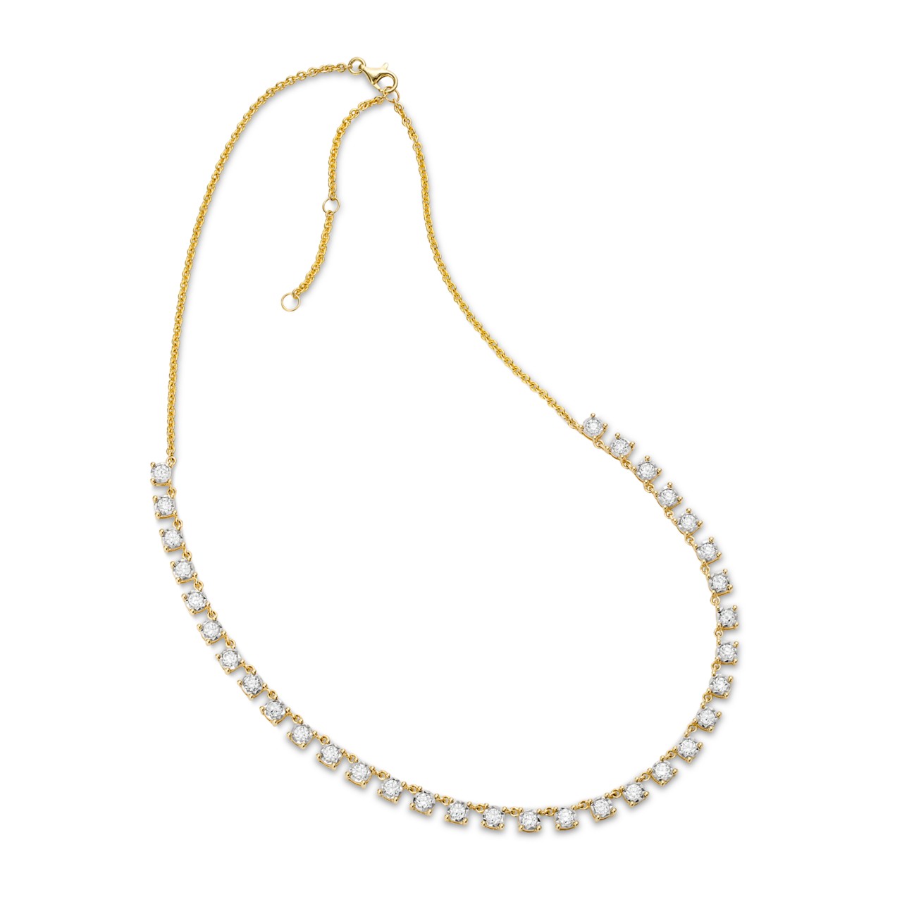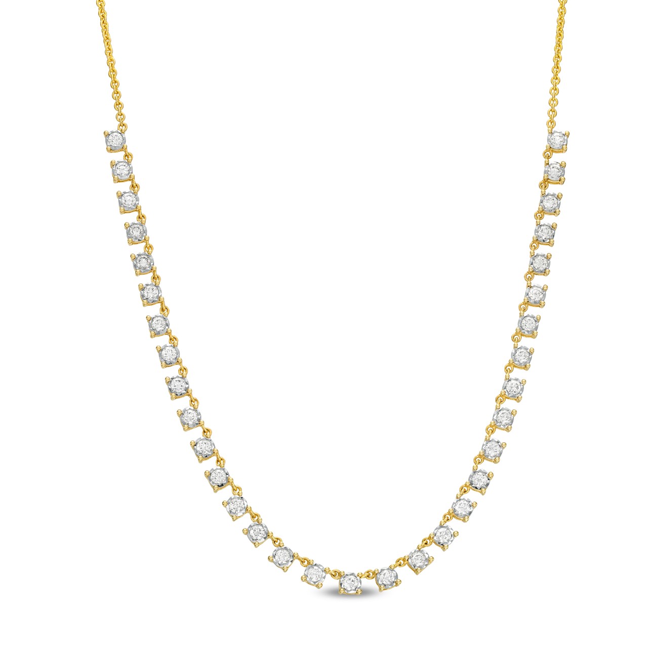 Product Description A stunning piece to wear solo or layered, this necklace features stations of round brilliant cut diamonds each held in four prongs. Other Details Type: Necklace Length: 16.5 IN Pendant Type: Station Average color range: H-I Average clarity range: SI Disable Reason: None Necklace Type: Fashion Metal Color: White Gold Total Setting Diamond Carat Weight: 2.68TW Metal Color: Yellow Gold Gemstone Type: Diamond