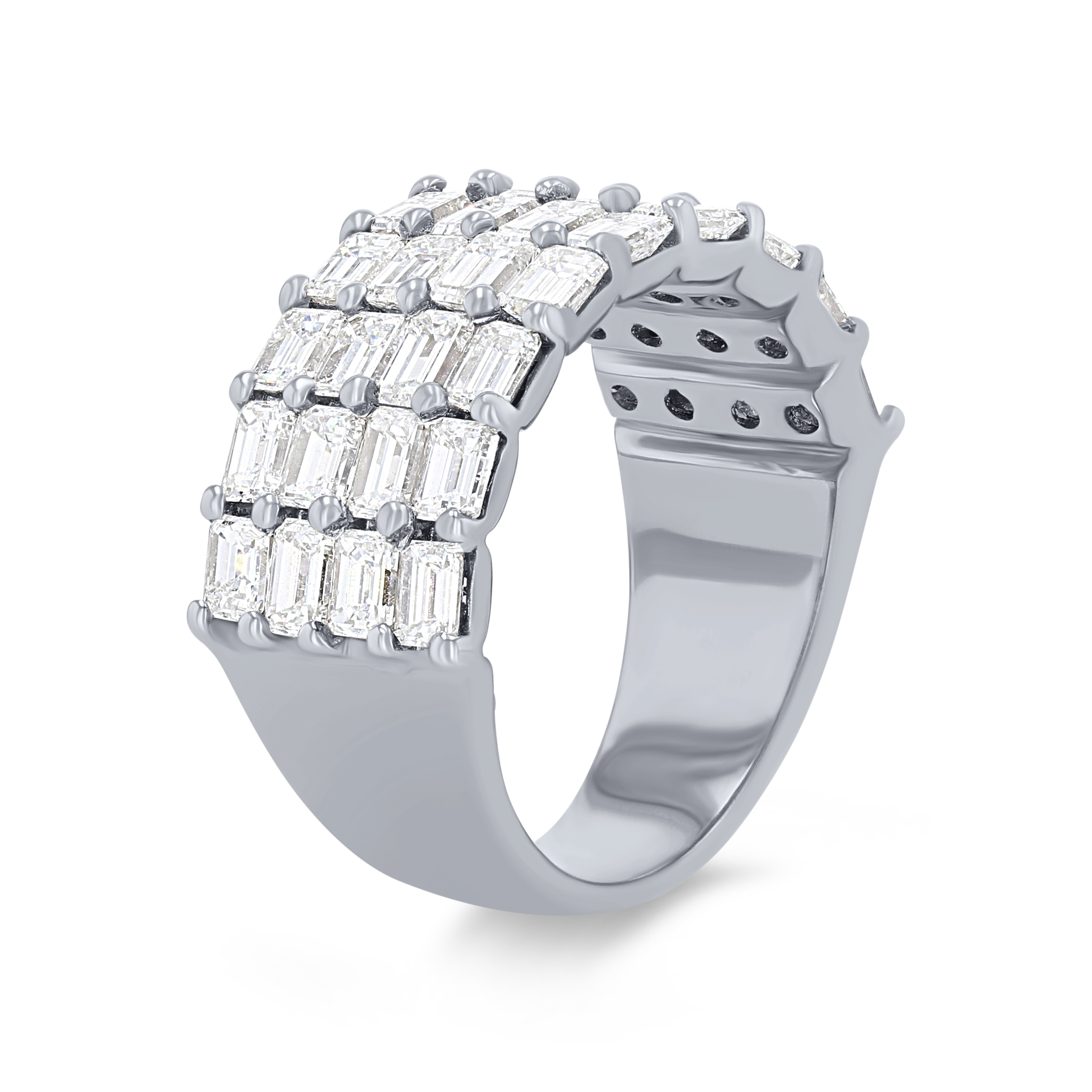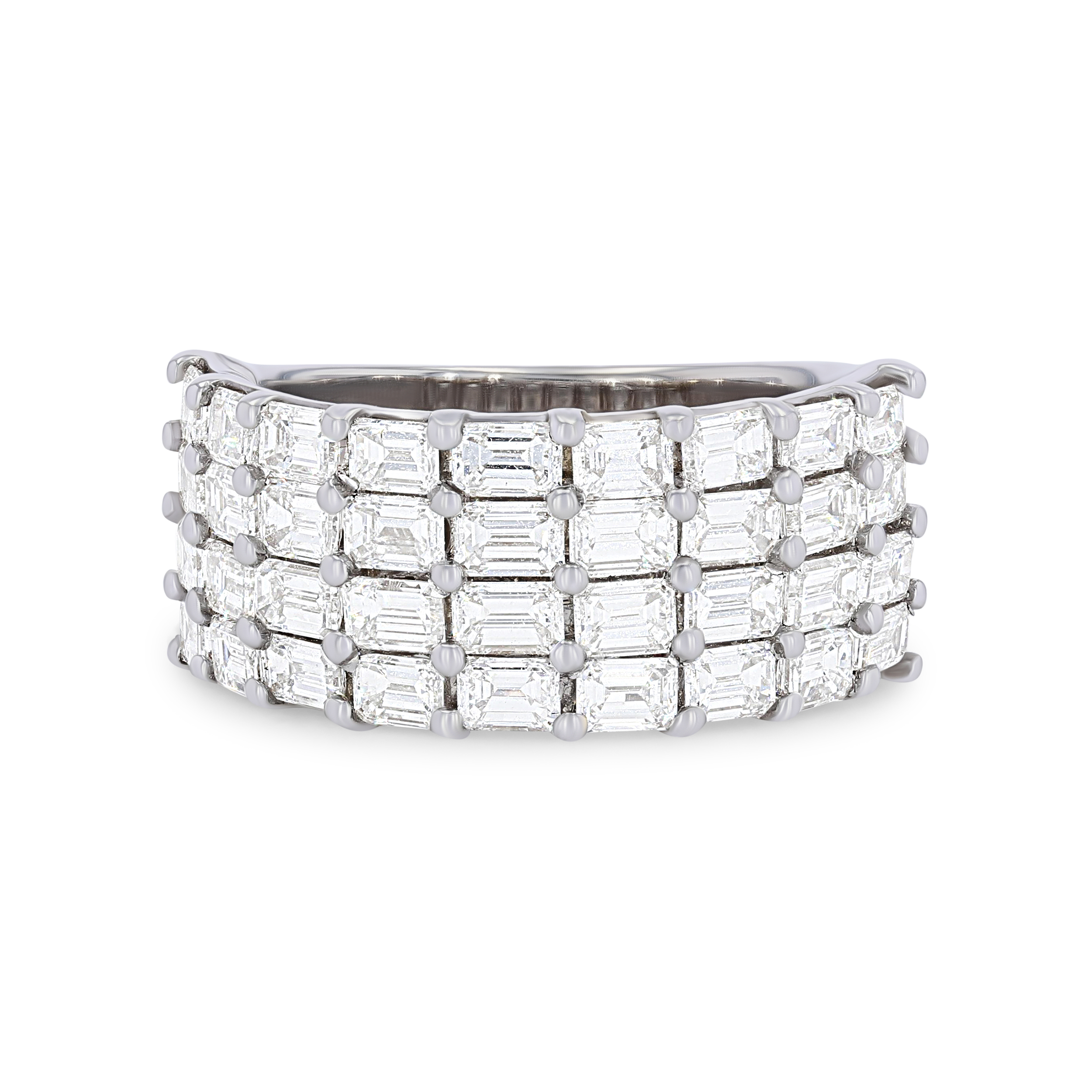 Product Description This stunning contemporary design features four rows of emerald cut diamonds totaling 3.50 carats. Other Details Ring Type: Multi-row Total Setting Diamond Carat Weight: 3.5TW Gemstone Type: Diamond Metal Color: White Gold Disable Reason: None Metal Color: Yellow Gold Type: Ring Metal Color: Rose Gold Metal Color: Platinum Style: Contemporary