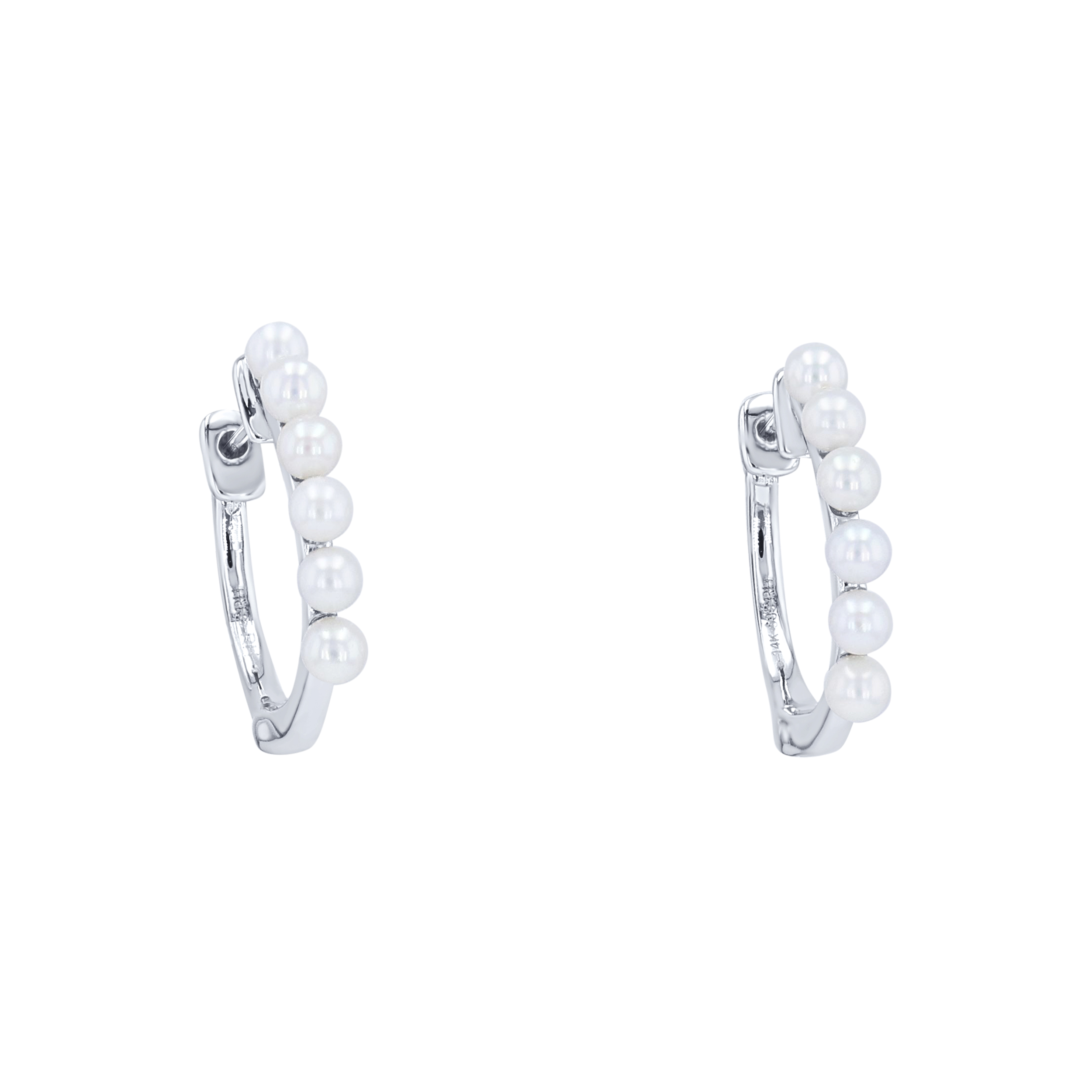 Product Description A classic style with a modern design, these huggie earrings feature 12 freshwater pearls. Other Details Earring Type: Gemstones Type: Earrings Gemstone Type: Pearl Diameter: Approx. 0.59 Inches Style: Contemporary Women Wedding Band Type: Gemstone Disable Reason: None Metal Color: White Gold