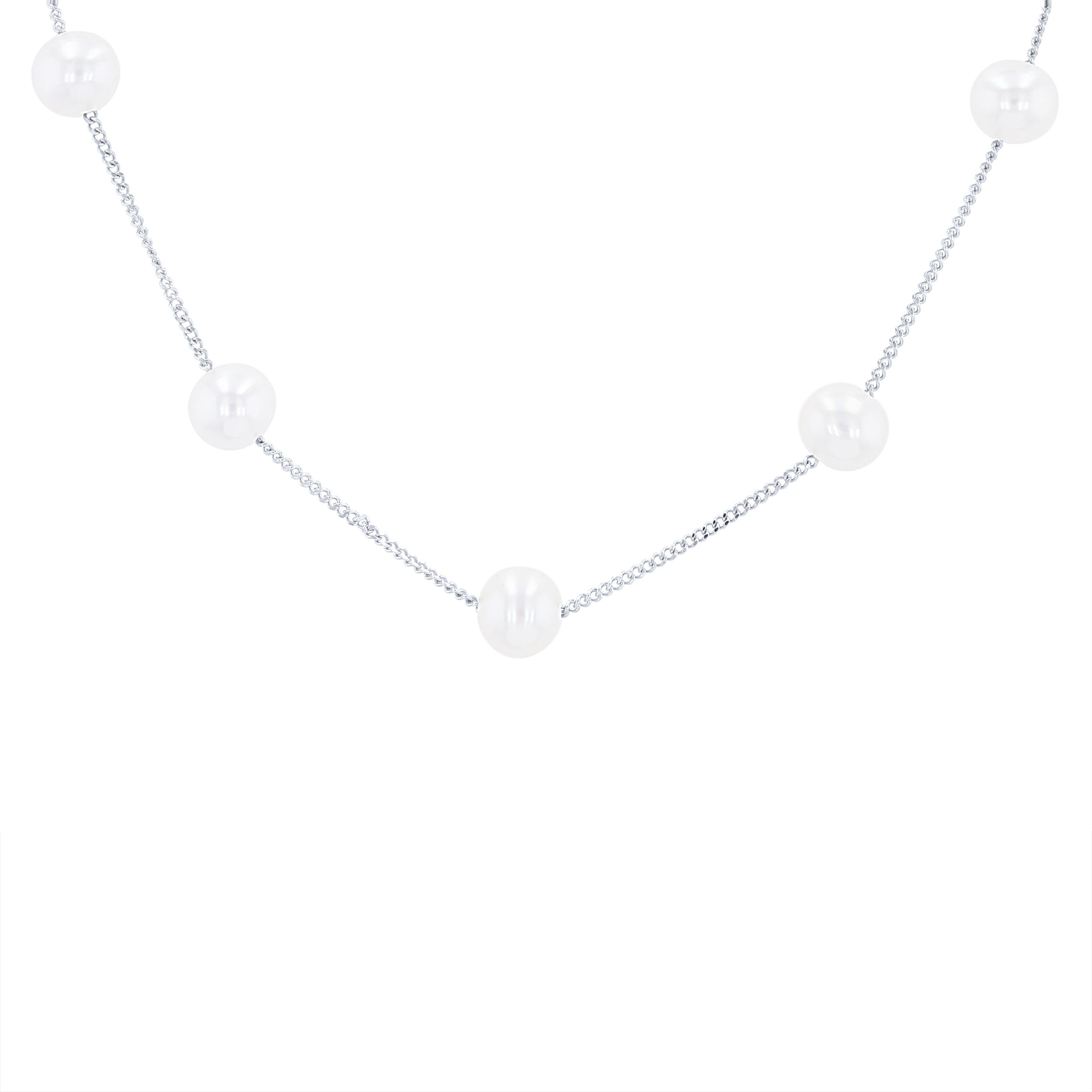 Product Description A timeless design, this tin cup necklace features 15 freshwater pearls set in stations around a 14 karat white gold 18 inch chain. Other Details Disable Reason: None Pendant Type: Gemstone Type: Necklace Necklace Type: Fashion Length: 18 IN Gemstone Type: Pearl Metal Color: White Gold Style: Classic