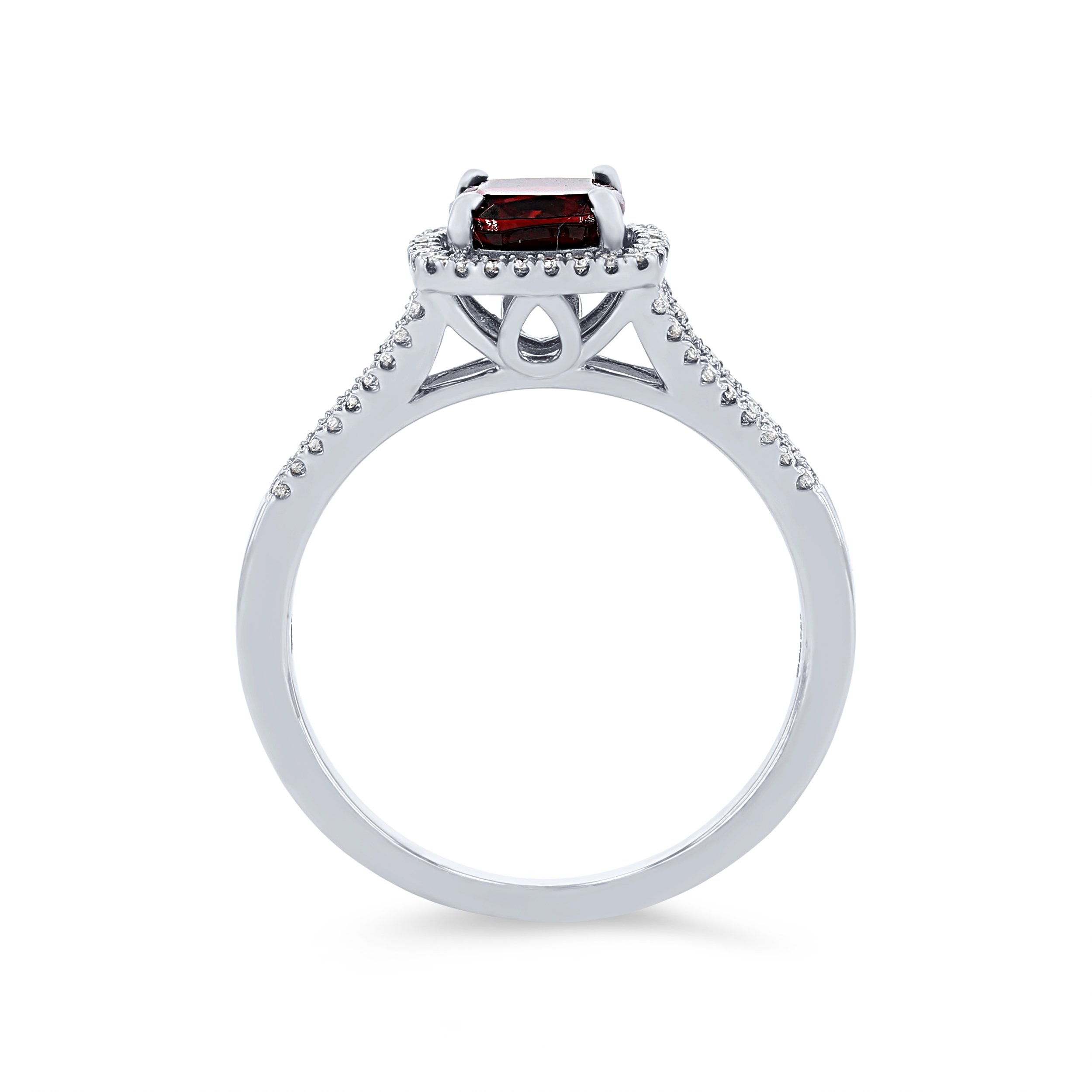 Product Description A perfect gift for a January birthday, this ring features a cushion cut garnet weighing 1.20 carats accented with 0.20 carats of round brilliant cut diamonds. Other Details Total Setting Diamond Carat Weight: 0.2TW Metal Color: White Gold Disable Reason: None Style: Classic Women Wedding Band Type: Gemstone Center Stone Type: Garnet Type: Ring Gemstone Type: Garnet Center Stone Shape: Cushion