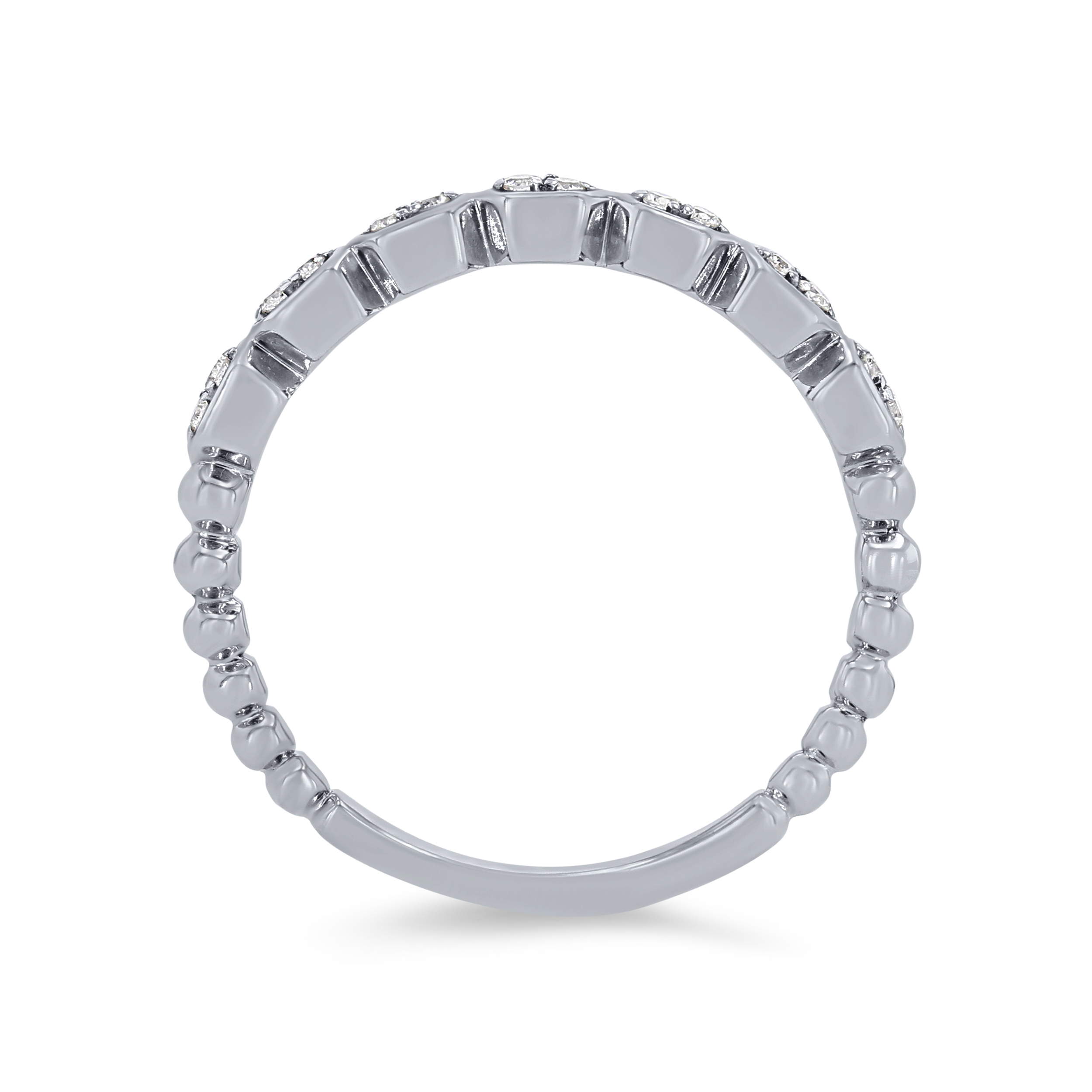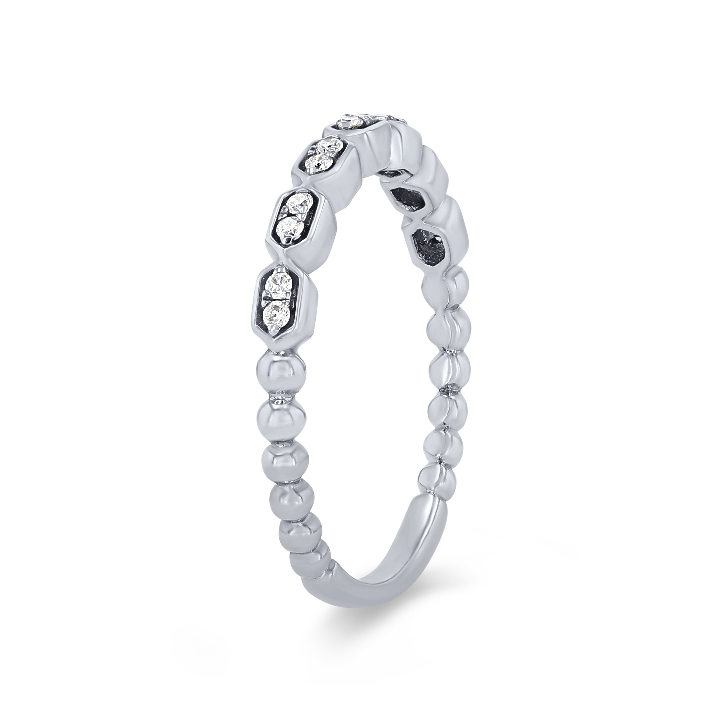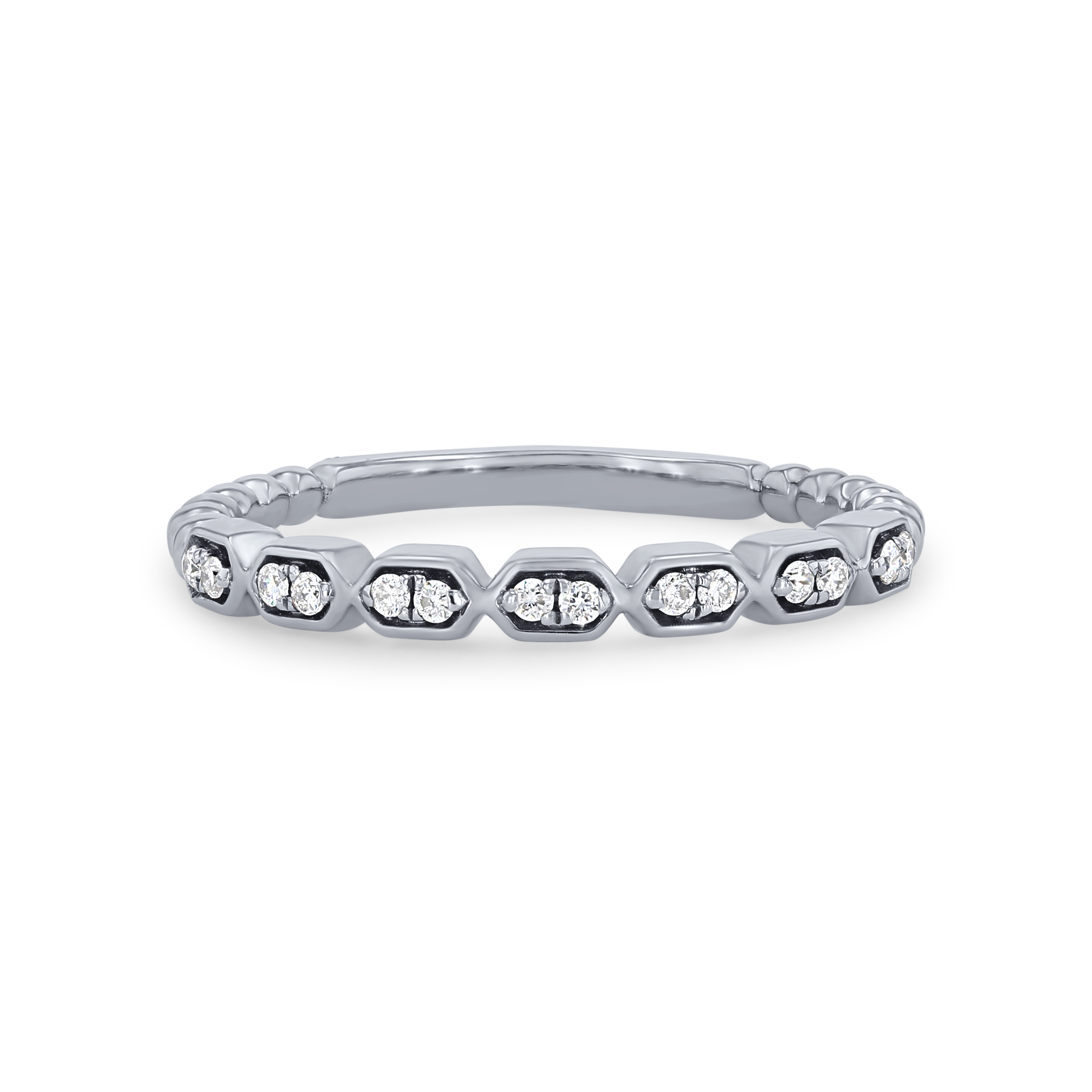 Product Description This contemporary geometric band features 0.08 carats of round brilliant cut diamonds. Worn with an engagement ring or as part of a stack, it is sure to make a statement. Other Details Metal Color: Rose Gold Wedding Band Type: Stackable Metal Color: Platinum Style: Contemporary Gemstone Type: Diamond Total Setting Diamond Carat Weight: 0.08TW Metal Color: White Gold Type: Ladies Wedding Band Metal Color: Yellow Gold Disable Reason: None