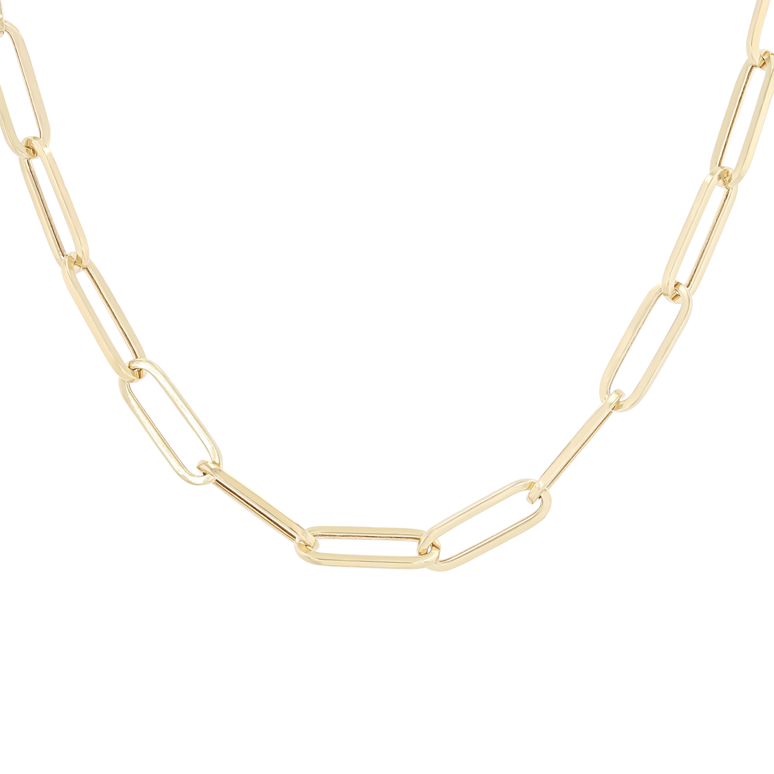 Product Description Modern and on trend, this paperclip style chain necklace is crafted in 14 karat yellow gold and measures 18 inches. Other Details Disable Reason: None Style: Contemporary Length: 18 IN Metal Color: Yellow Gold Necklace Type: Fashion Type: Necklace