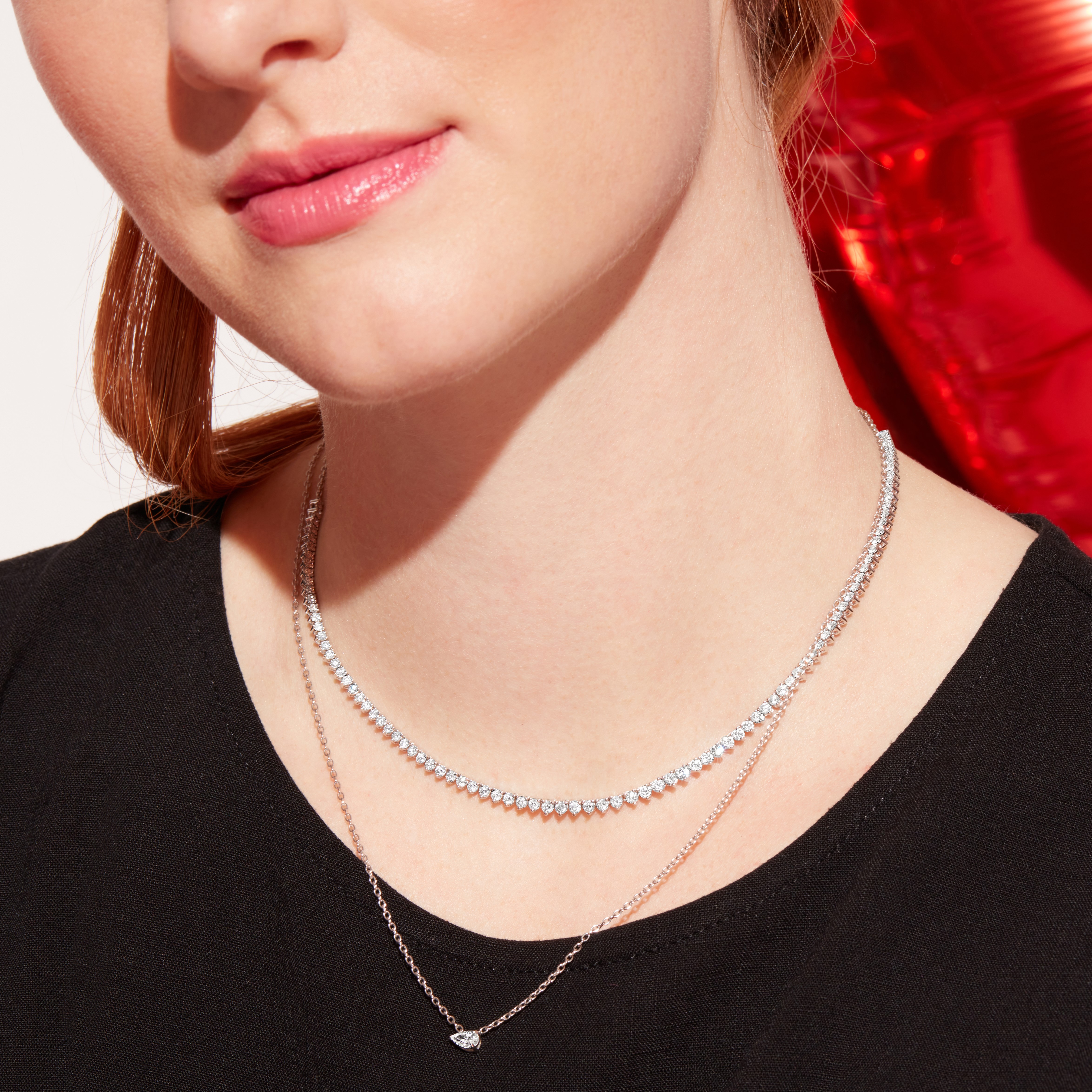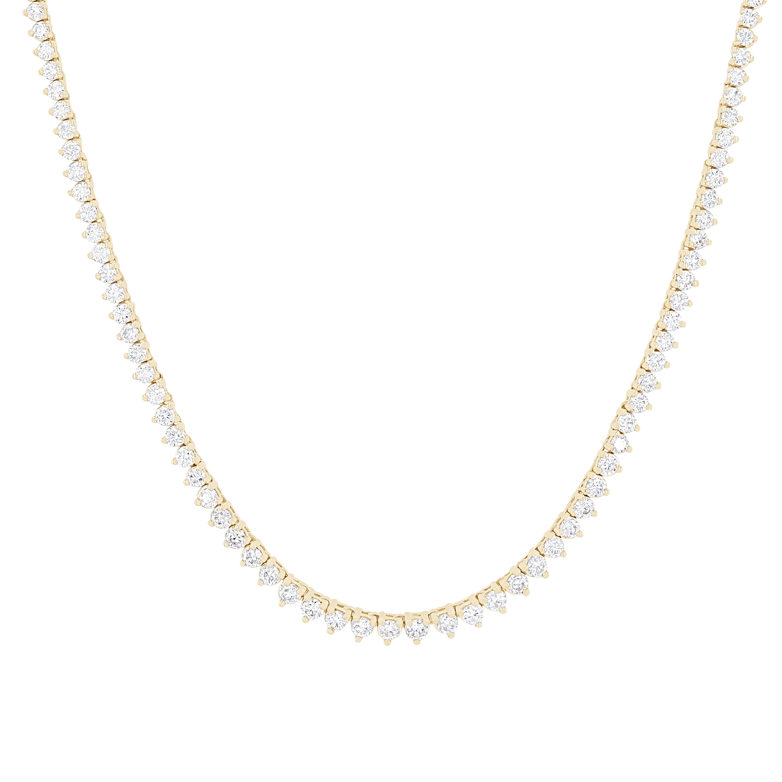 Product Description Elegant and timeless, this stunning Riviera necklace features 3.00 carats of round brilliant cut diamonds graduating in size. Other Details Necklace Type: Tennis Necklace Disable Reason: None Diamond Classics Product Type: Diamond Necklaces Total Setting Diamond Carat Weight: 3TW Gemstone Type: Diamond Length: 17 IN Average clarity range: I1 Average color range: H Metal Color: Yellow Gold Metal Color: White Gold Style: Classic Type: Necklace