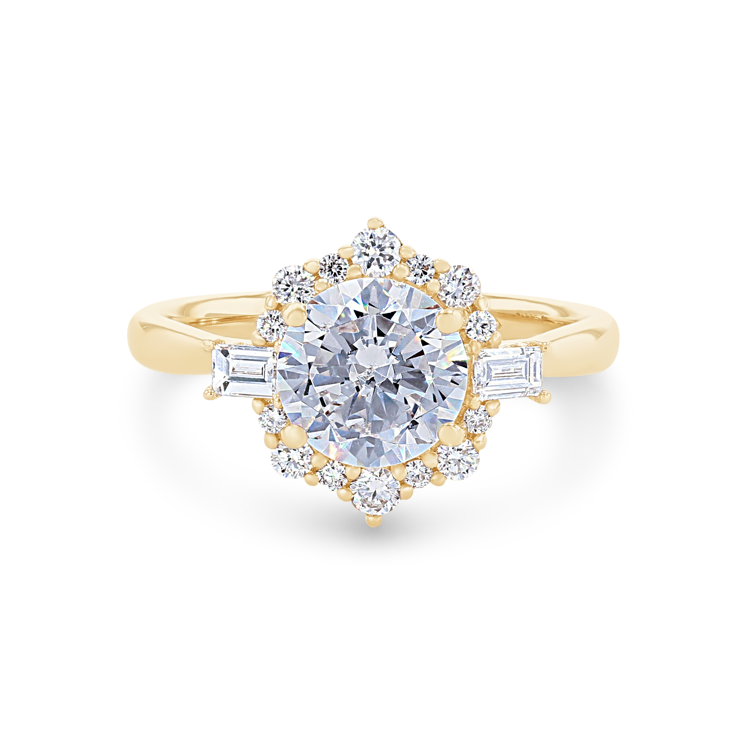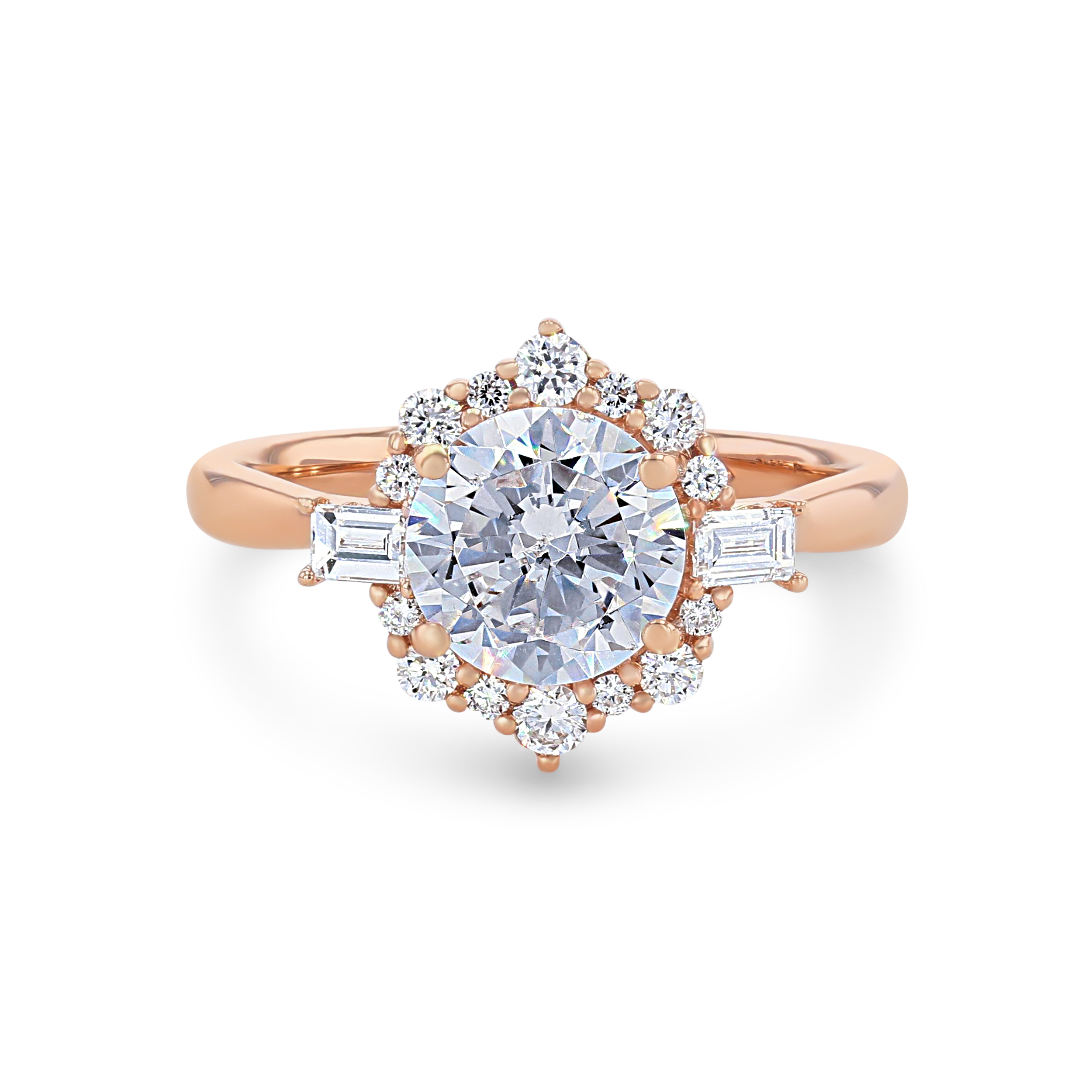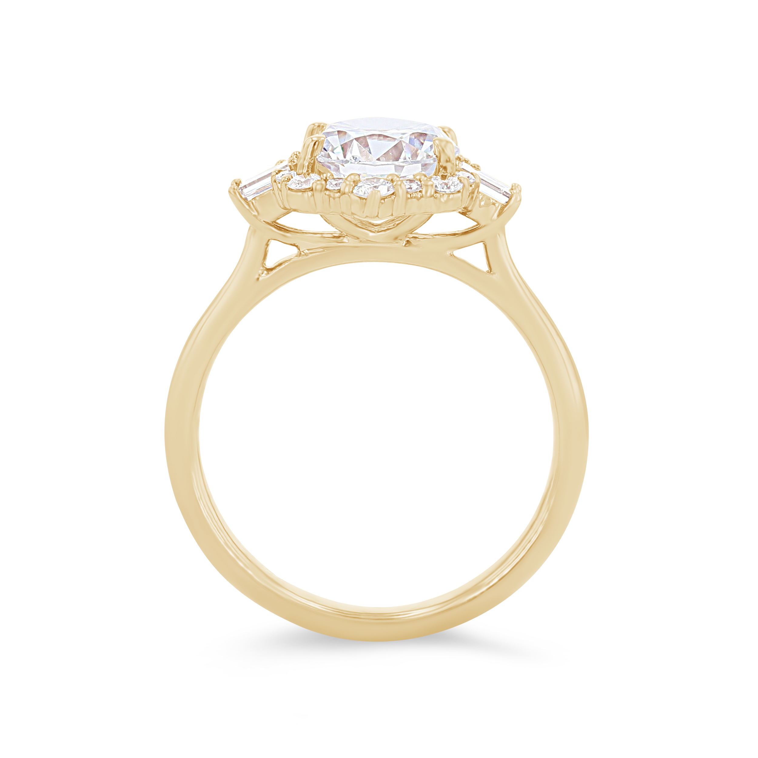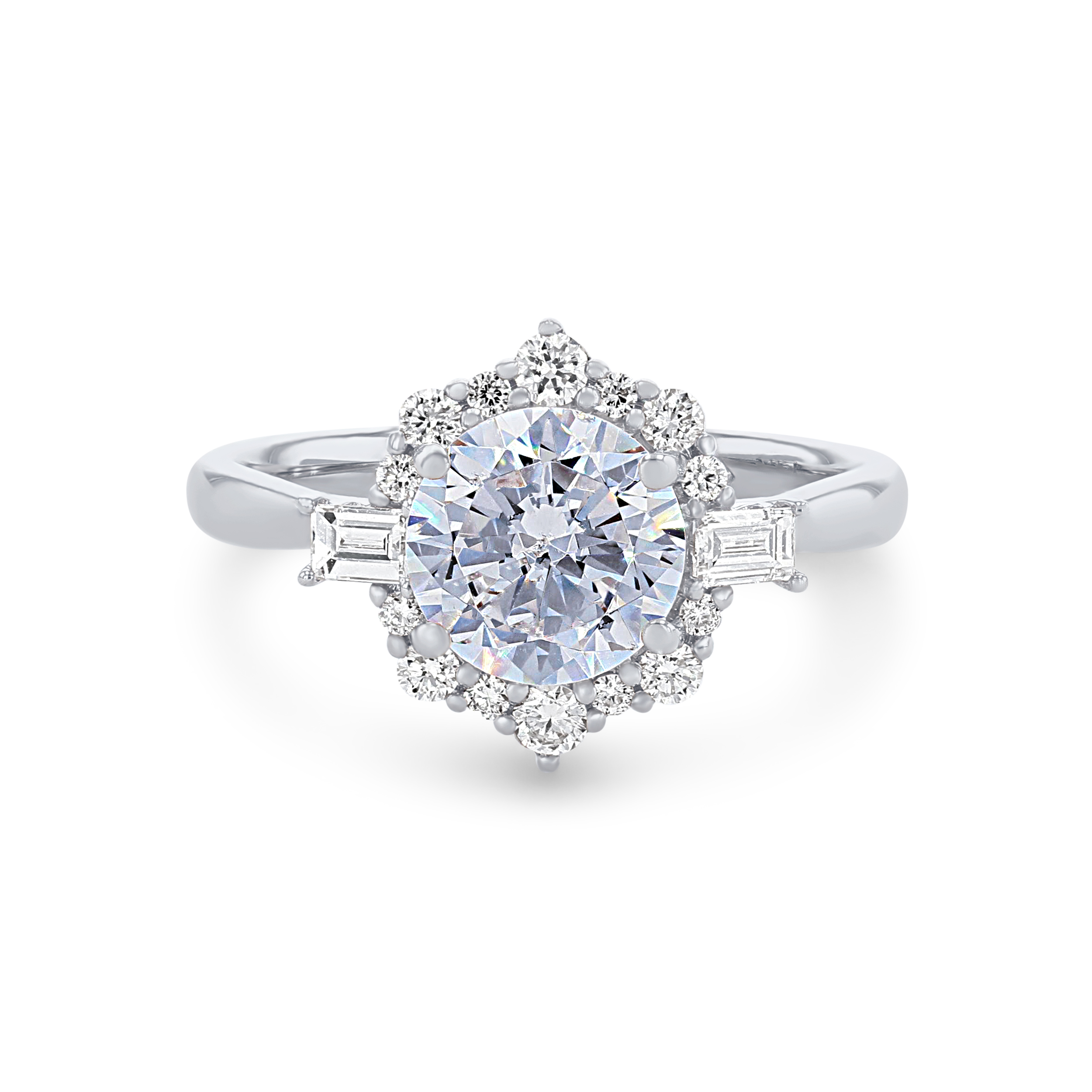 Product Description Crafted with vintage-inspired detail, this halo engagement setting features 0.38 carats of combined round brilliant and baguette cut diamonds. Other Details Gemstone Type: Diamond Metal Color: Yellow Gold Metal Color: White Gold Disable Reason: None Metal Color: Rose Gold Metal Color: Platinum Total Setting Diamond Carat Weight: 0.38TW Type: Setting Style: Vintage Mounting Type: Halo