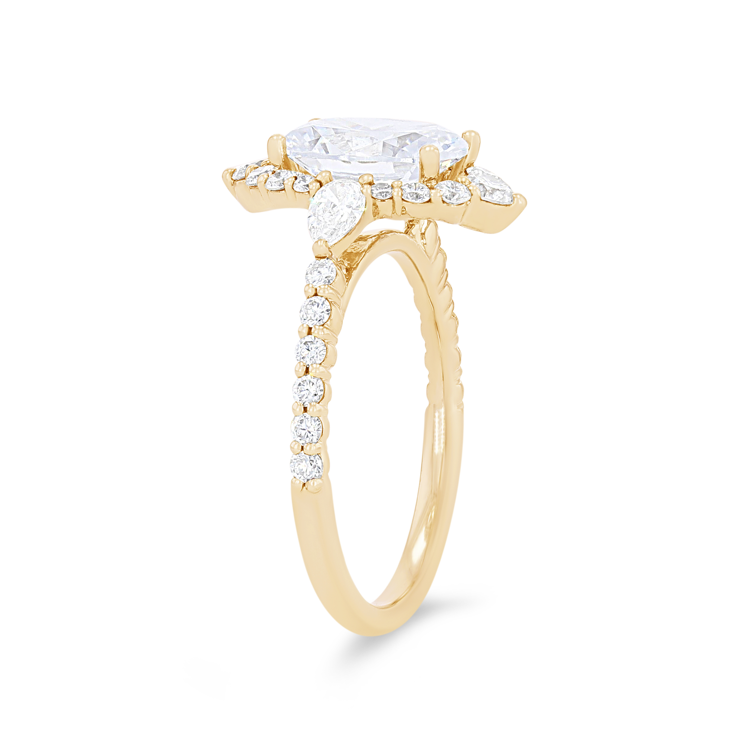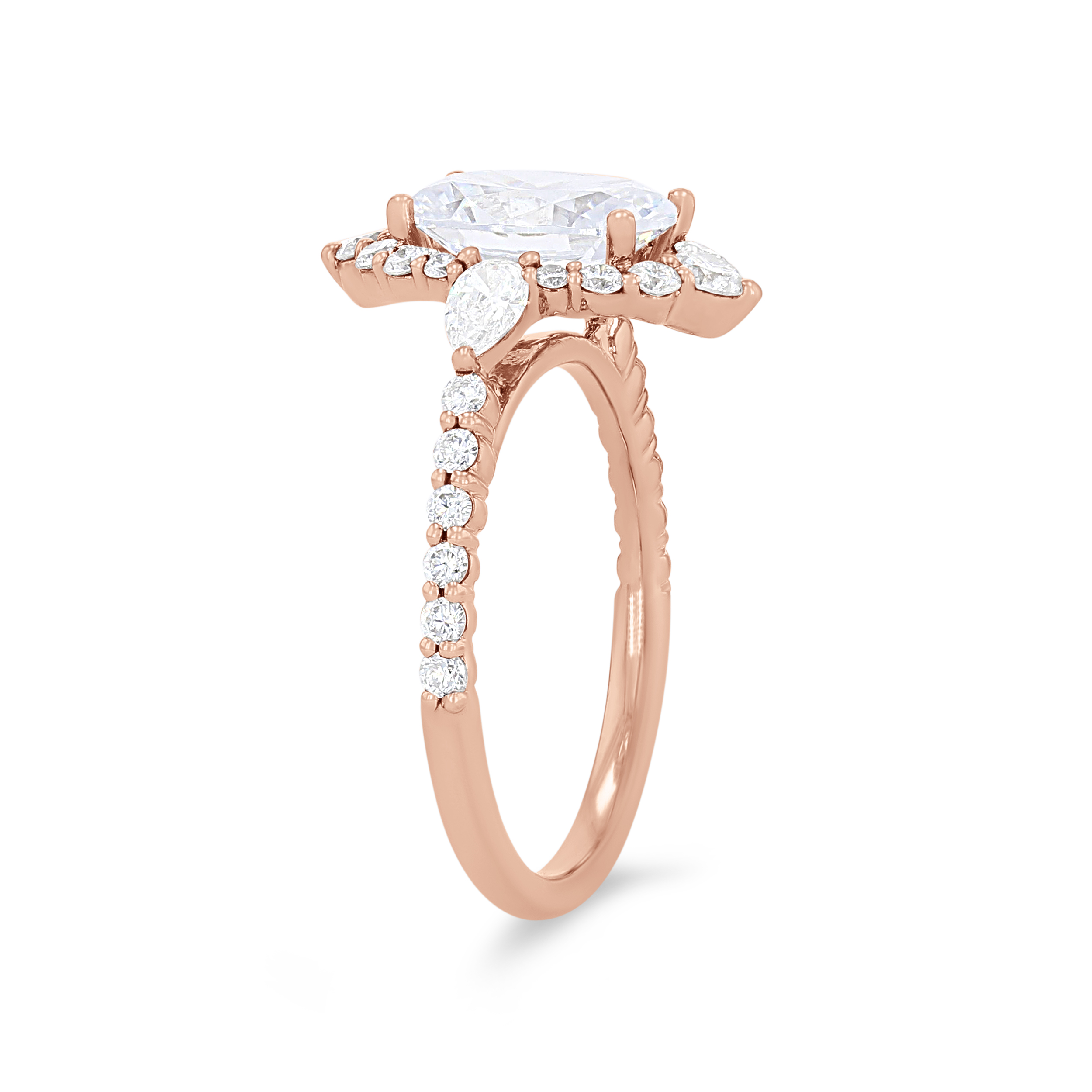 Product Description A captivating design crafted with round brilliant cut diamonds alternating in size and two pear shape diamond accents create a stunning vintage look totaling 0.72 carats. Other Details Gemstone Type: Diamond Disable Reason: None Metal Color: Rose Gold Metal Color: Platinum Type: Setting Mounting Type: Halo Metal Color: Yellow Gold Style: Vintage Total Setting Diamond Carat Weight: 0.72TW Metal Color: White Gold