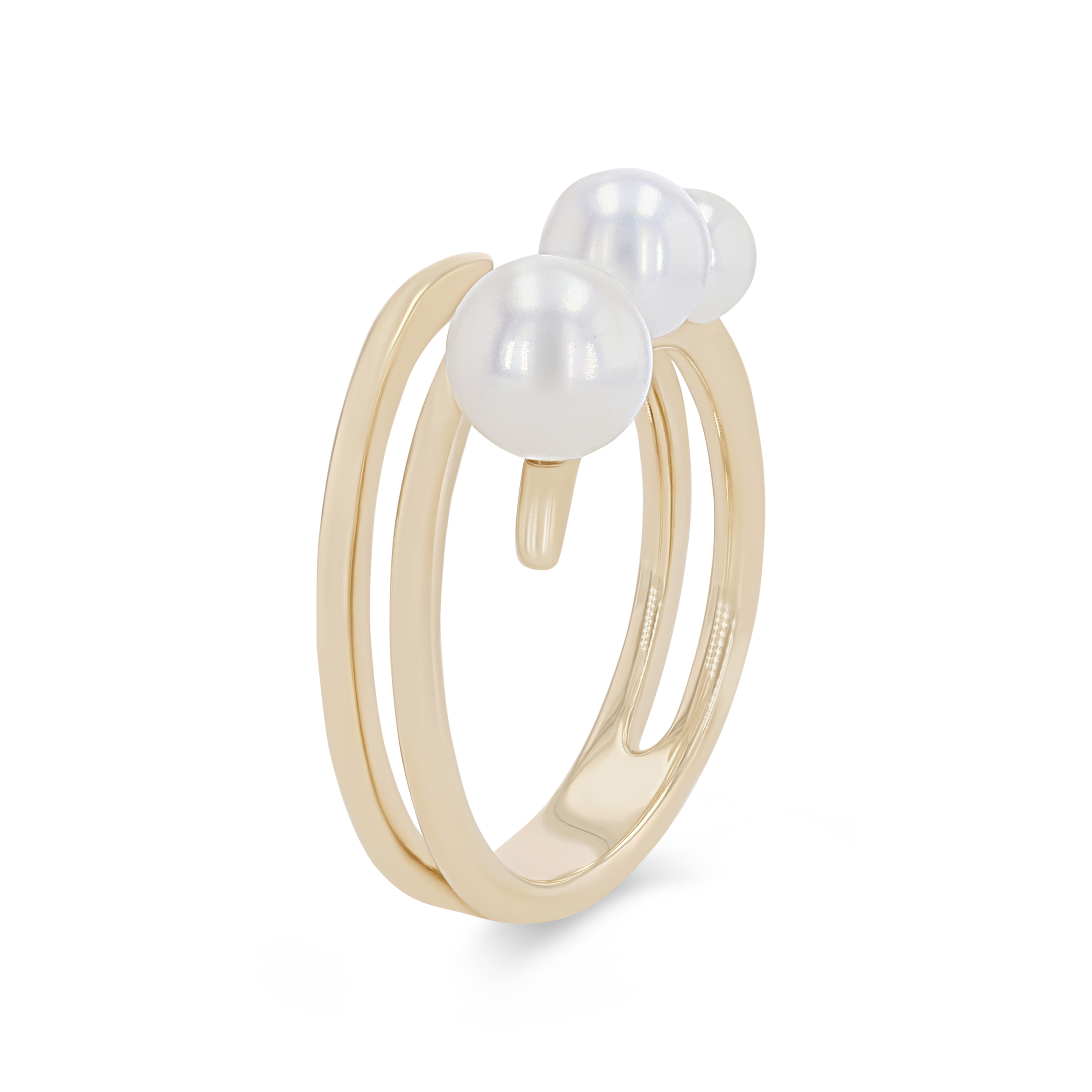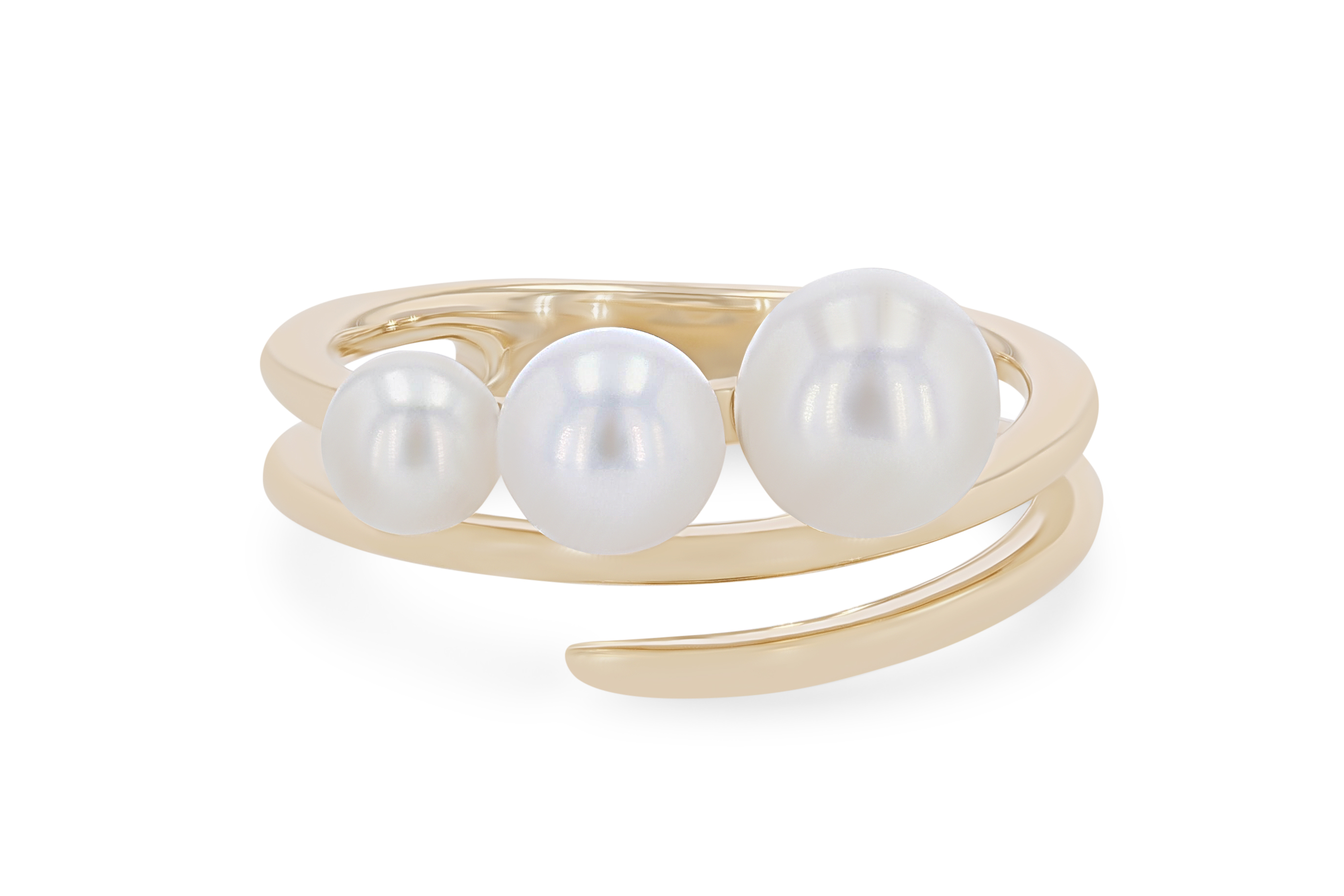 Product Description Crafted in a modern bypass design, this ring features three pearls graduating in size measuring 4.0-6.0 millimeters. Other Details Disable Reason: None Gemstone Type: Pearl Type: Ring Style: Contemporary Women Wedding Band Type: Gemstone Metal Color: Yellow Gold