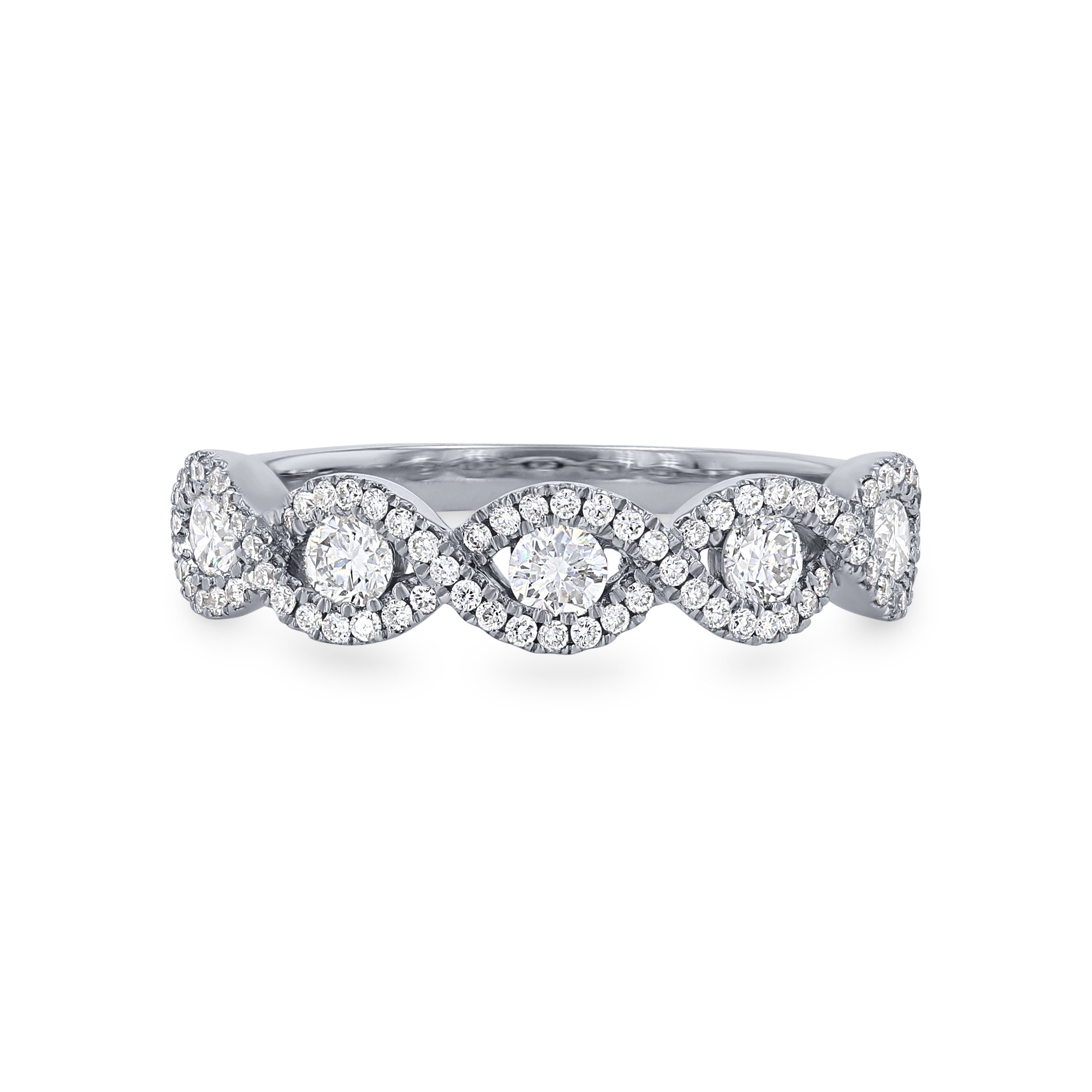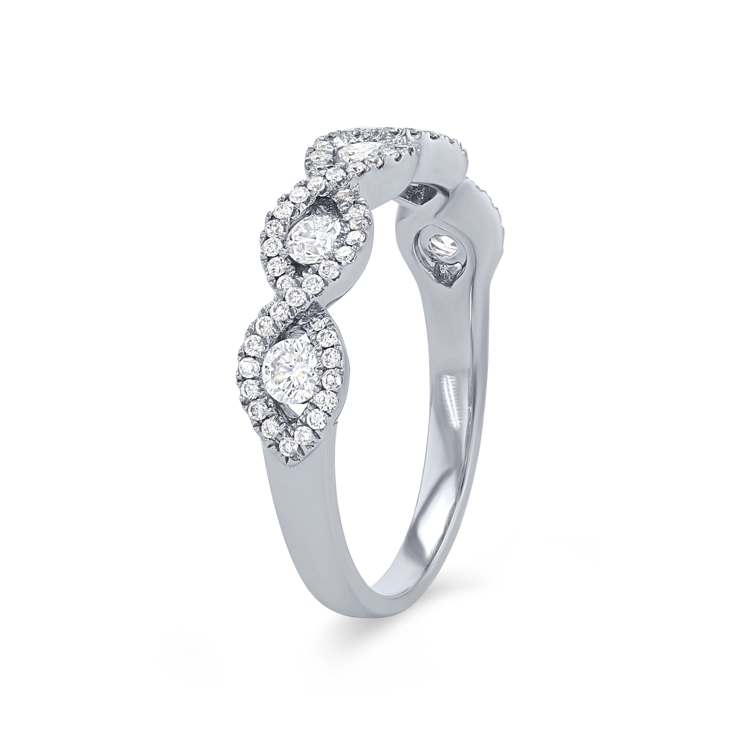Product Description An intricate twisted design highlights this classic style, accented by 0.52 carats of round brilliant cut diamonds. Other Details Metal Color: Rose Gold Disable Reason: None Type: Ladies Wedding Band Metal Color: Yellow Gold Metal Color: Platinum Wedding Band Type: Twist Total Setting Diamond Carat Weight: 0.52TW Style: Classic Gemstone Type: Diamond Metal Color: White Gold Ring Type: Halo