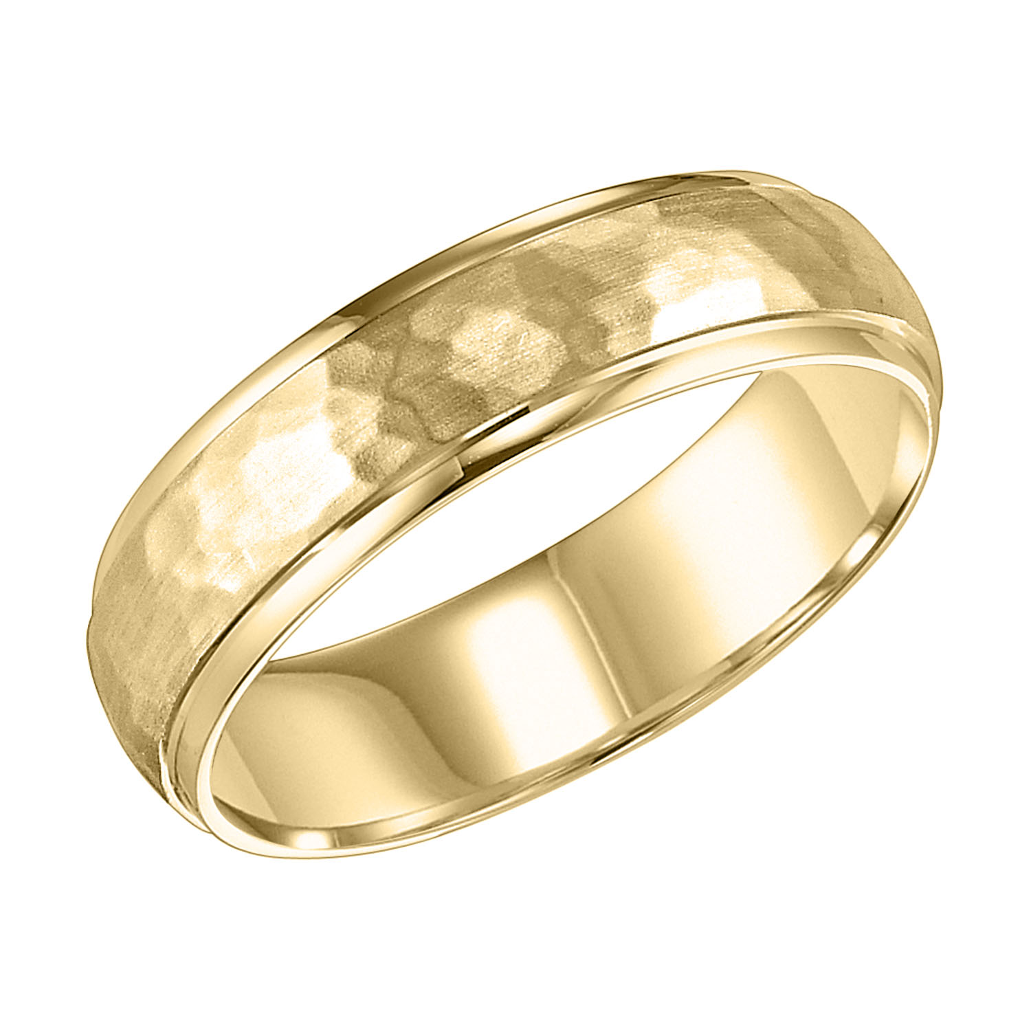 Product Description This wedding band features a contemporary hammered design framed by high polished edges, measuring six millimeters wide. Other Details Gents Wedding Band Style: Textured Finish: Matte Type: Gents Wedding Band Style: Contemporary