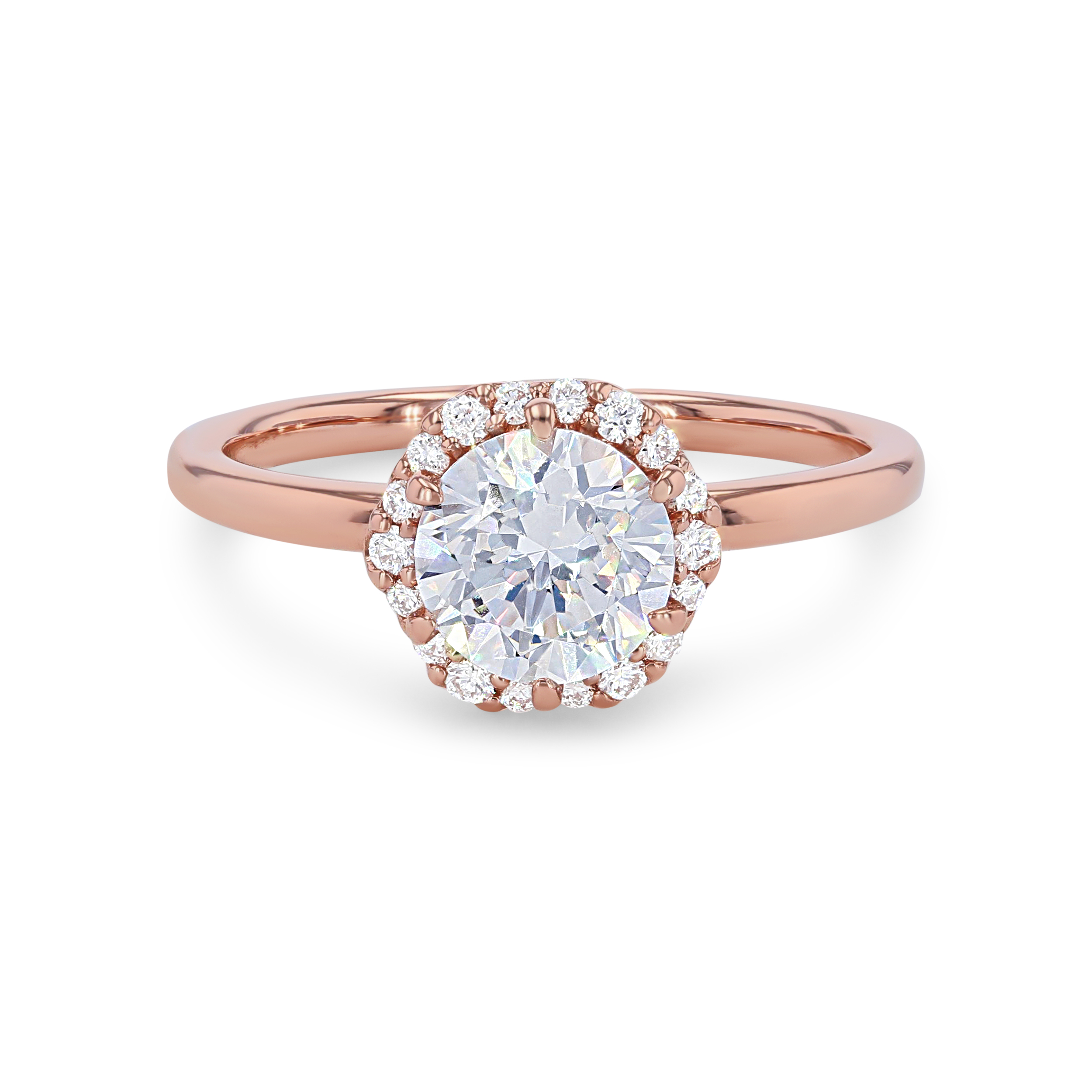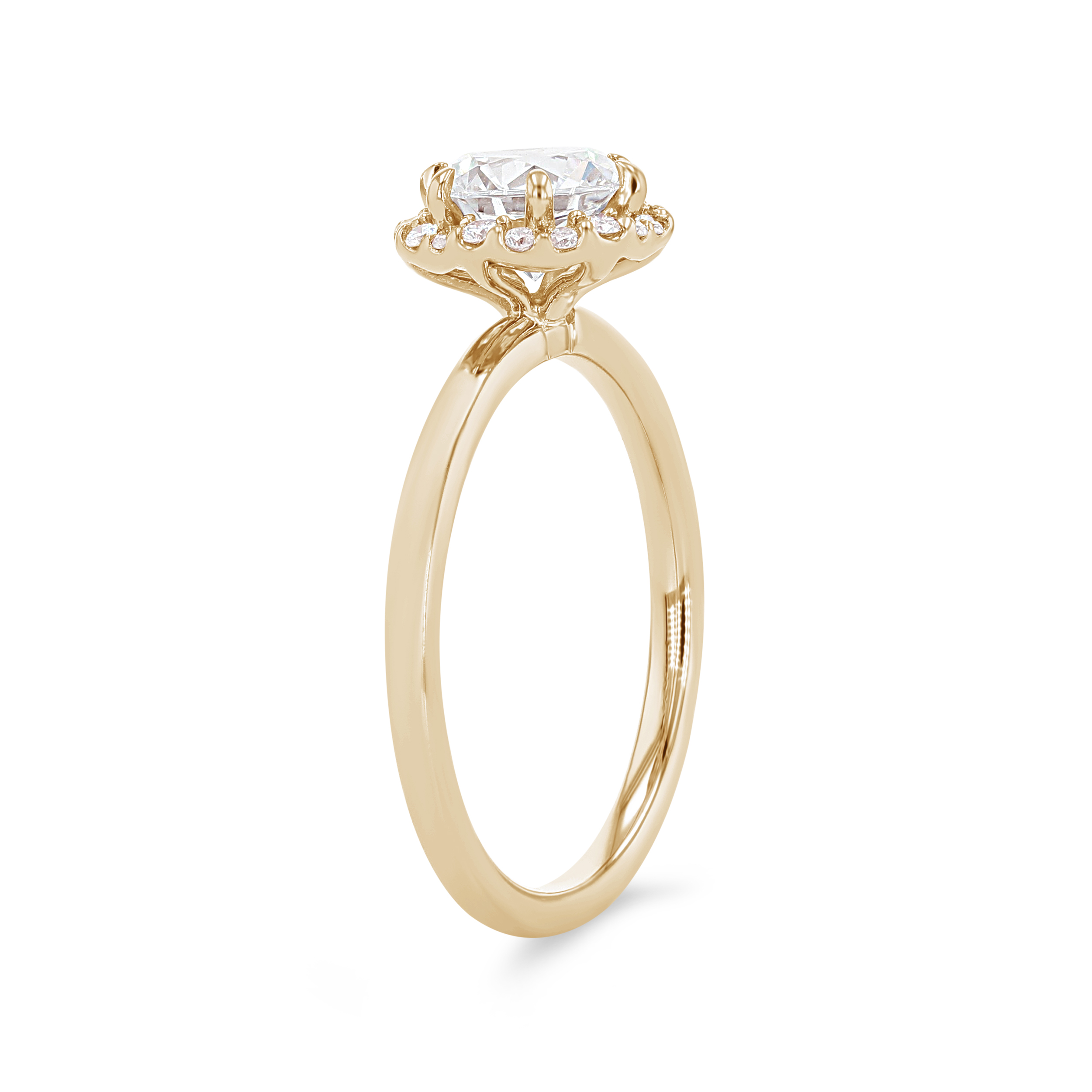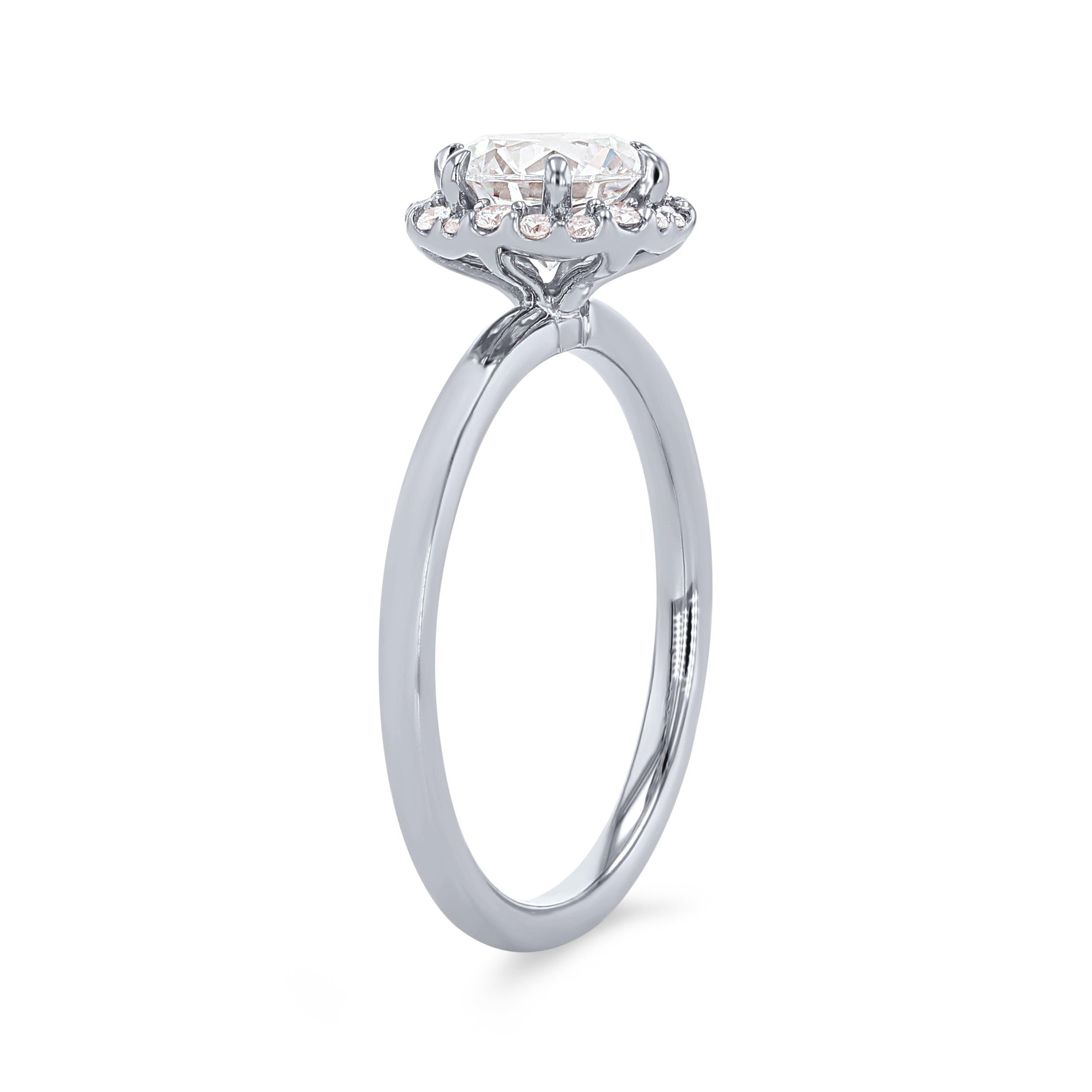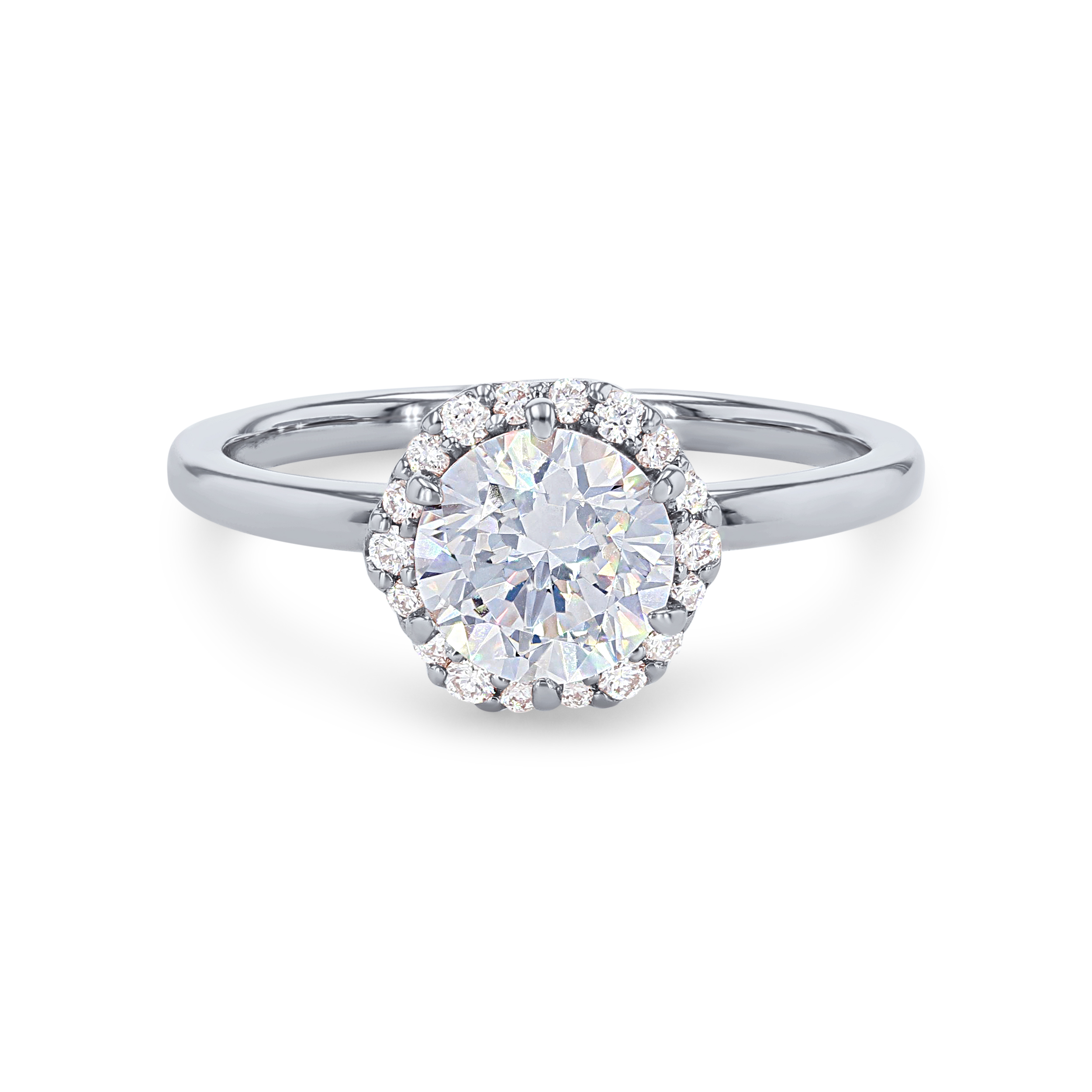 A modern take on a classic style, this engagement setting features a hexagon shaped halo accented by 0.13 carats of round brilliant cut diamonds.