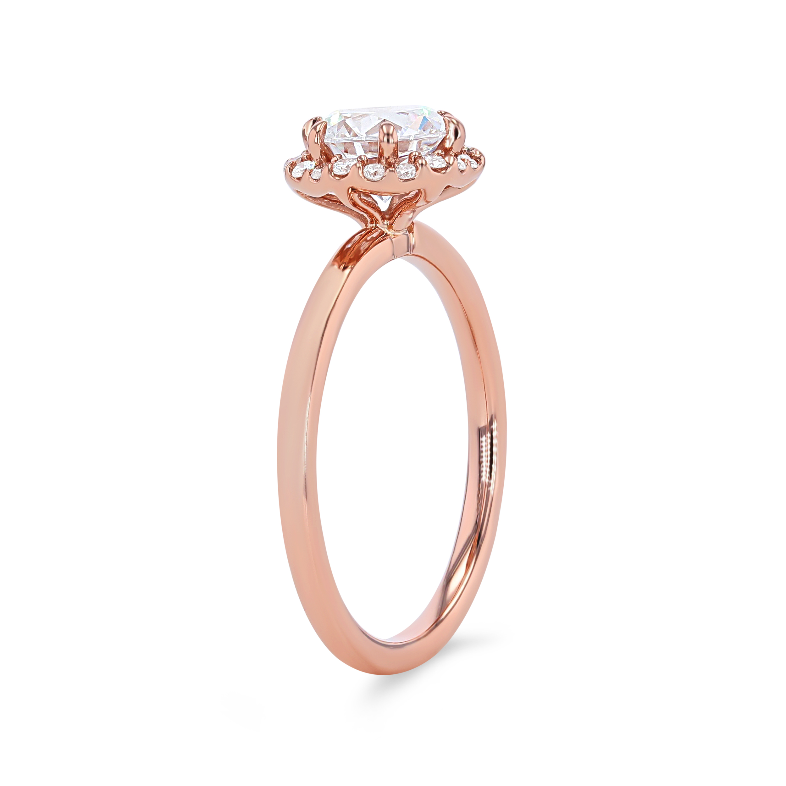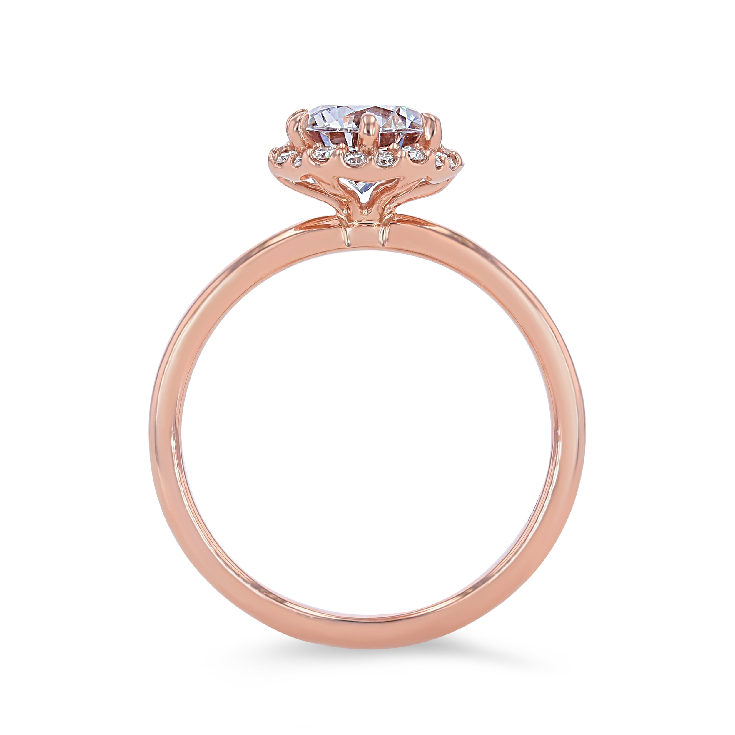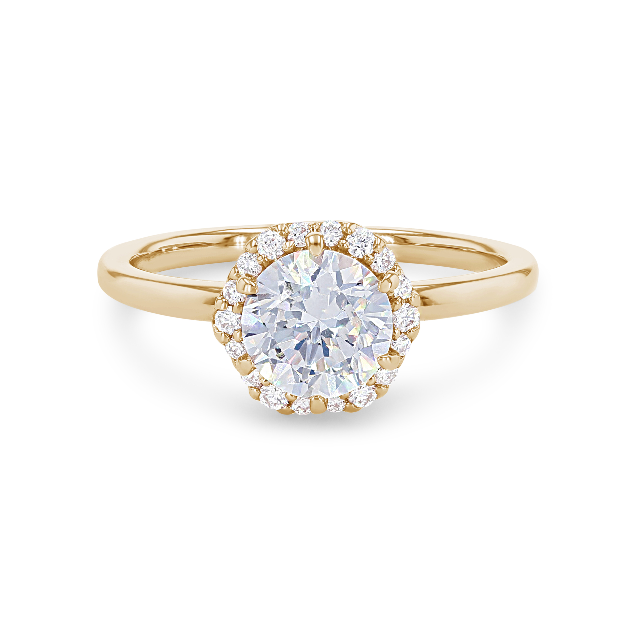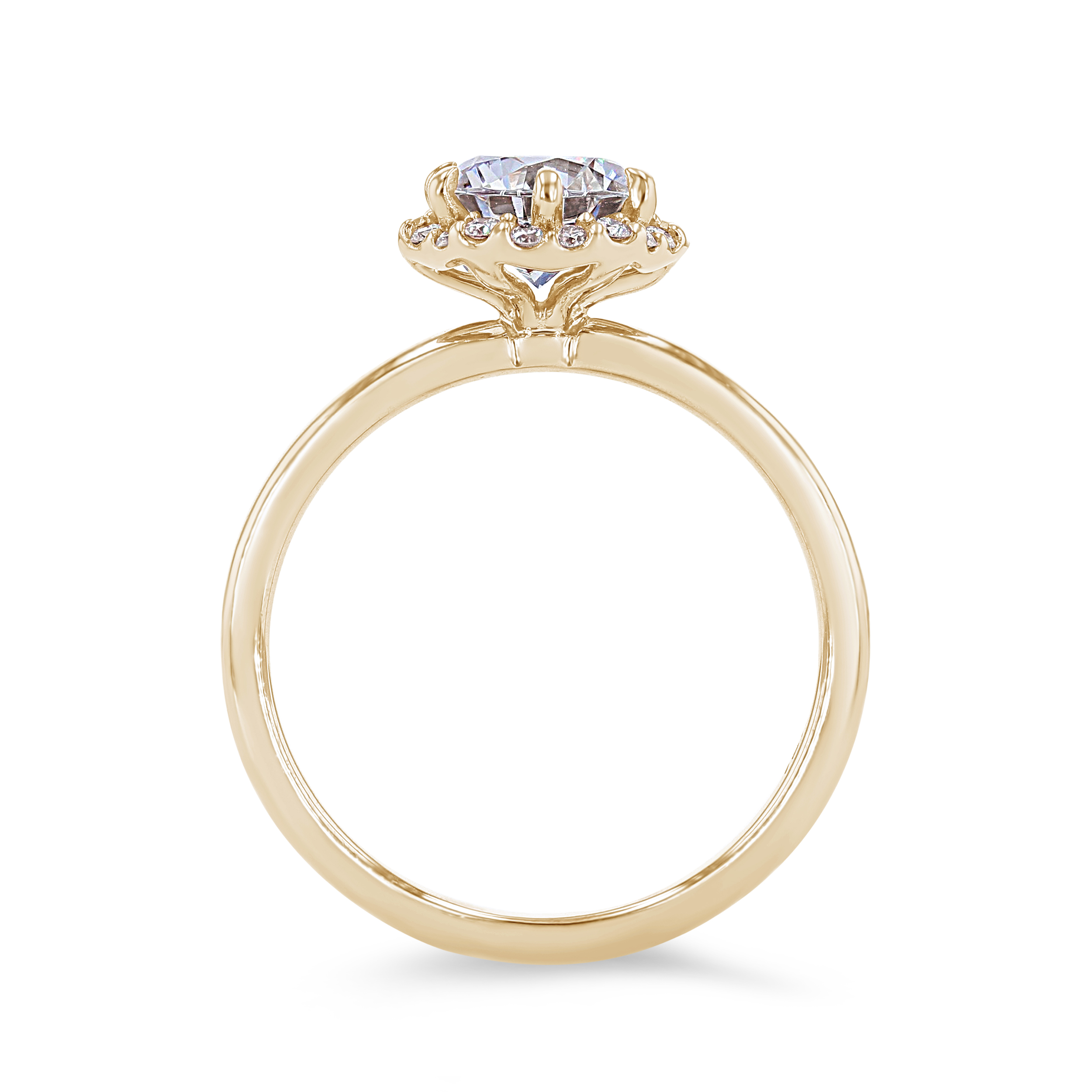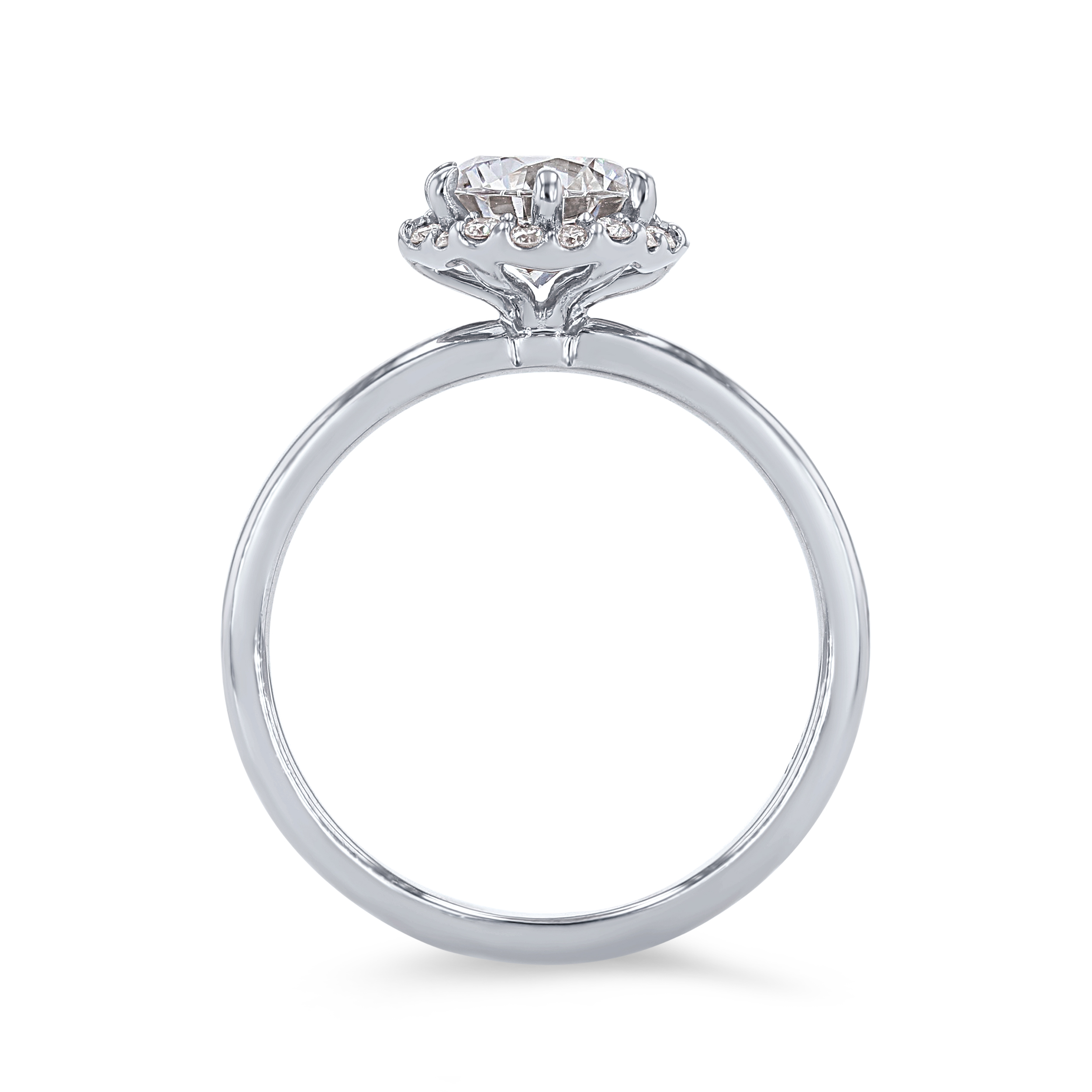 A modern take on a classic style, this engagement setting features a hexagon shaped halo accented by 0.13 carats of round brilliant cut diamonds.