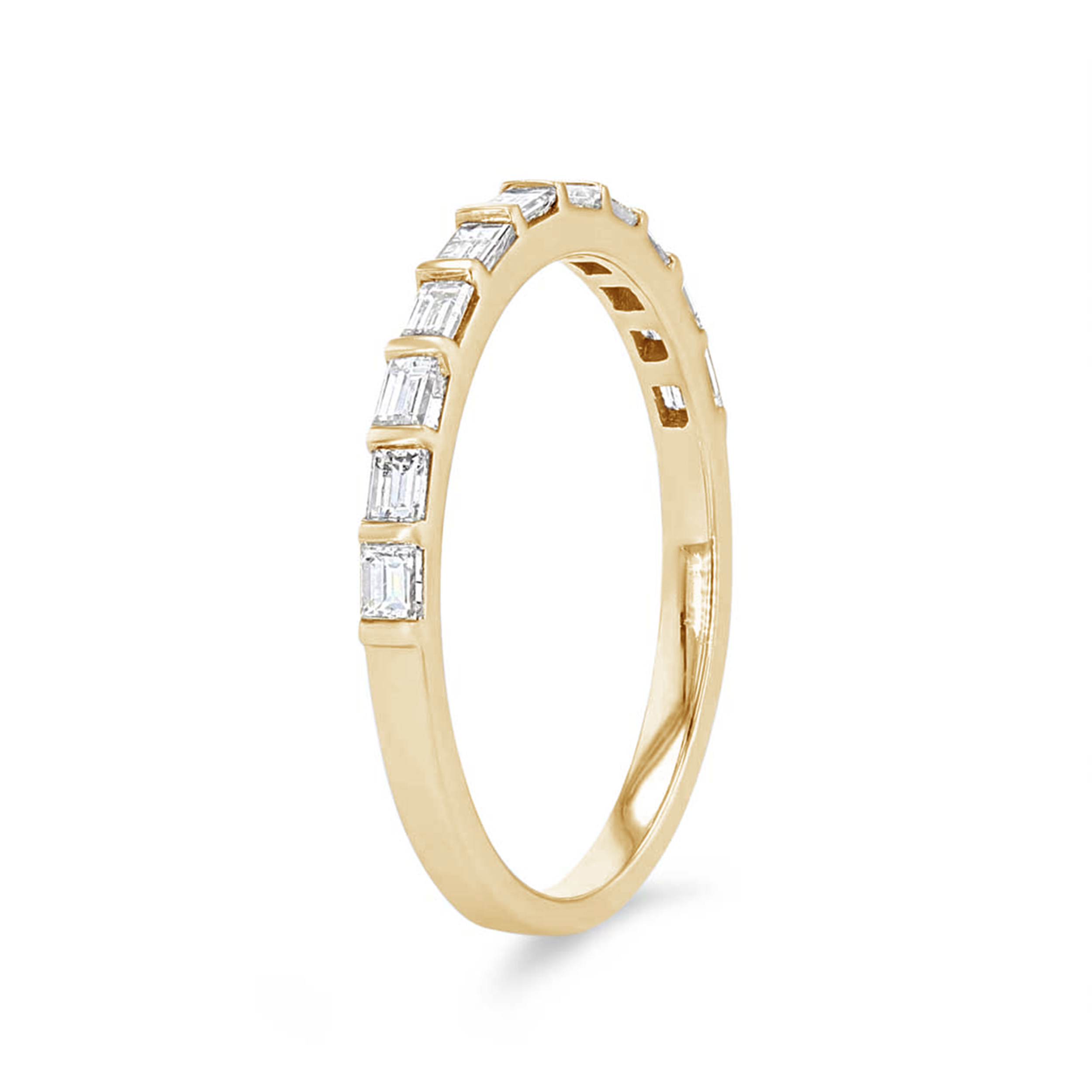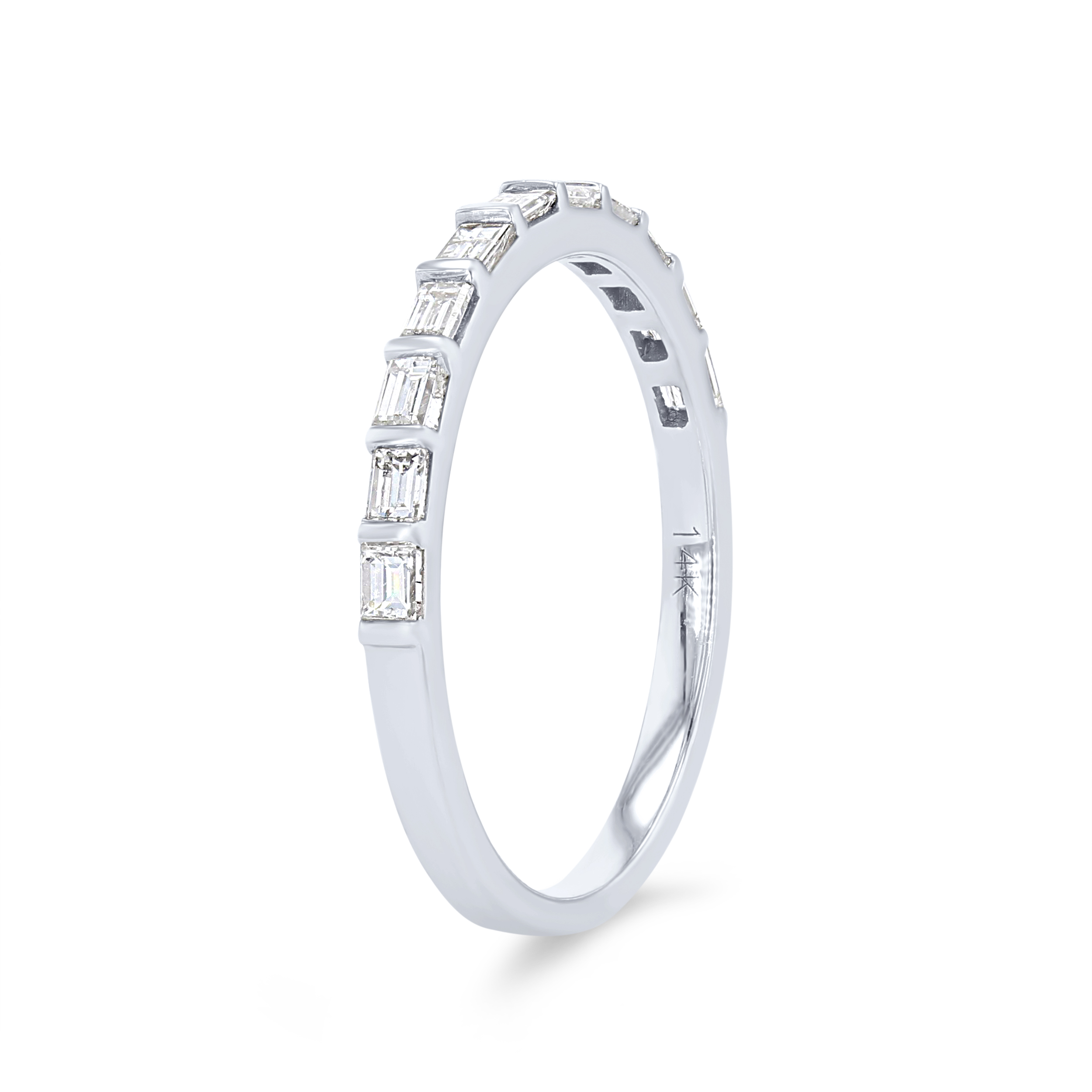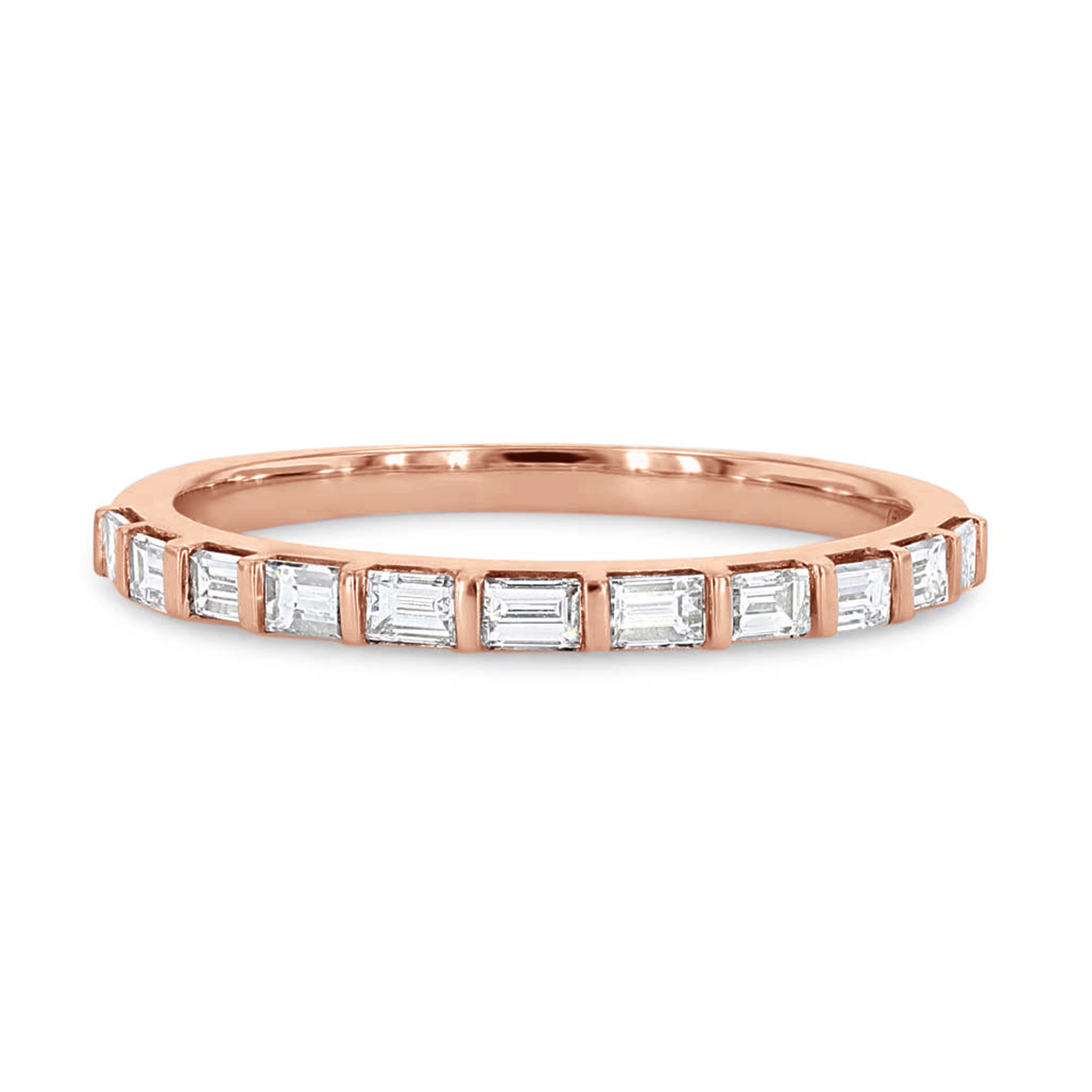 Product Description Modern lines are emphasized in this unique baguette diamond band, weighing 0.38 carats total. Other Details Metal Color: White Gold Metal Color: Rose Gold Style: Contemporary Total Setting Diamond Carat Weight: 0.38TW Metal Color: Platinum Diamond: Stackable Metal Color: Yellow Gold Disable Reason: None Gemstone Type: Diamond Wedding Band Type: Fancy Shapes Type: Ladies Wedding Band
