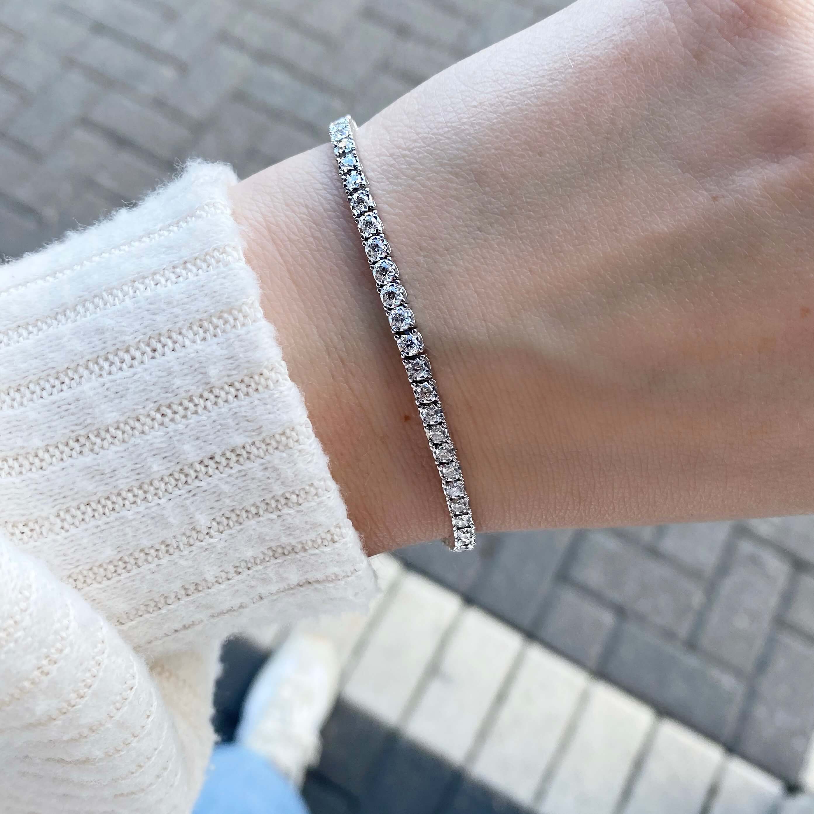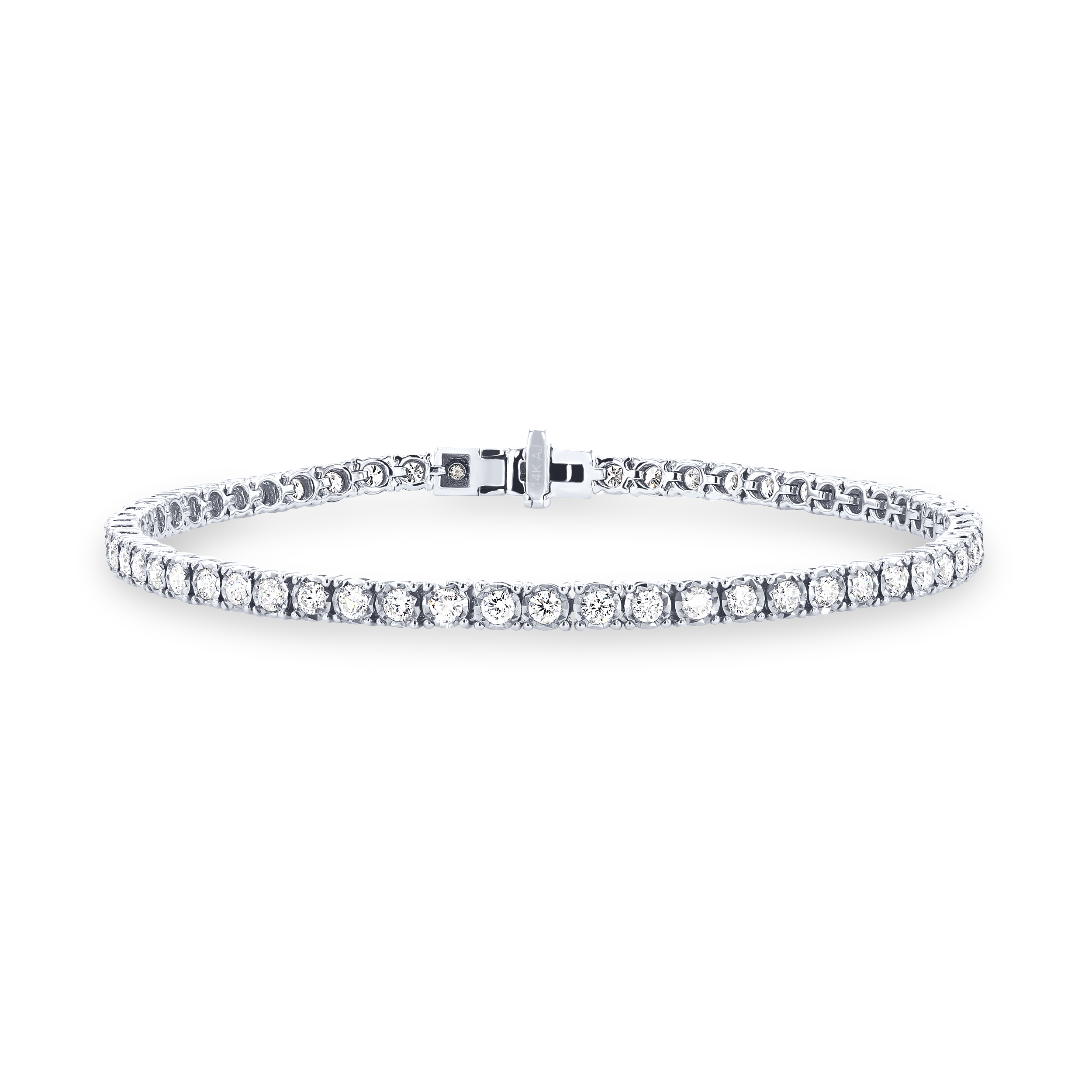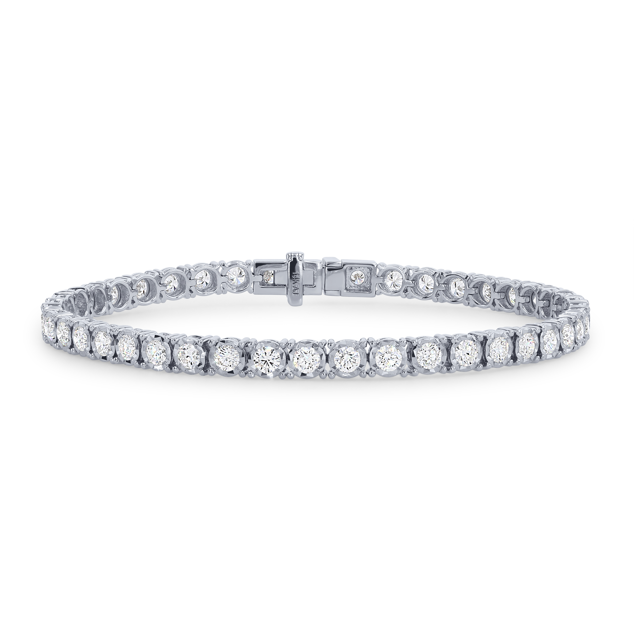 A tennis bracelet with round brilliant cut diamonds crafted in an illusion setting.