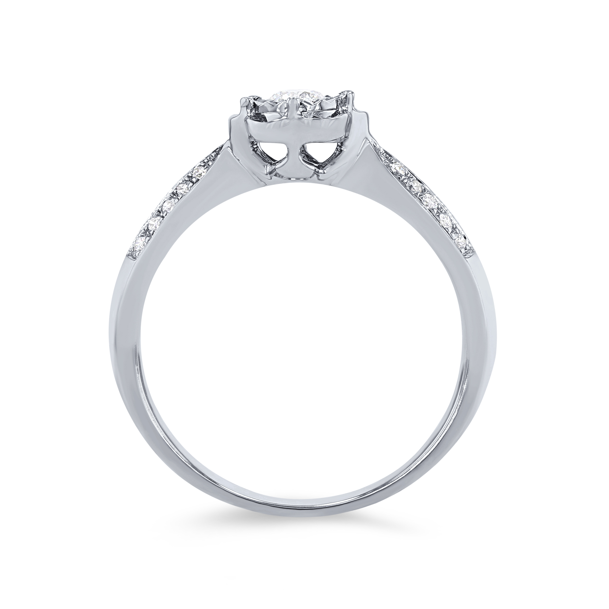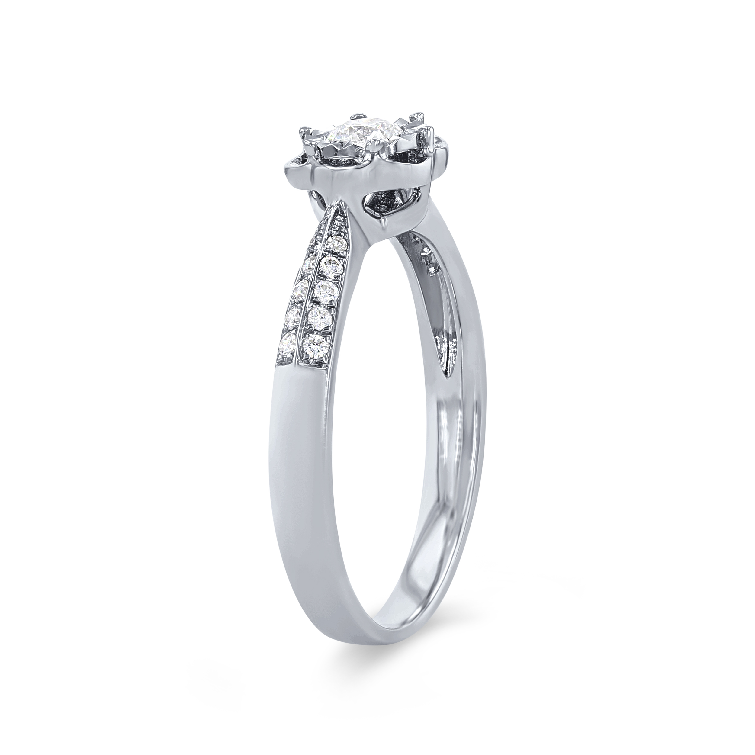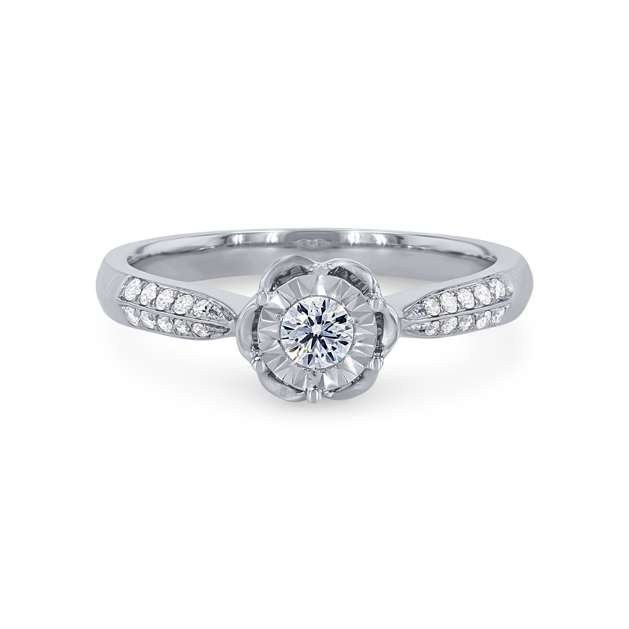 Product Description A single round brilliant cut diamond weighing 0.22 carats is surrounded by a floral-inspired illusion setting. Other Details Metal Color: Platinum Disable Reason: None Metal Color: Rose Gold Ring Type: Fashion Metal Color: Yellow Gold Total Setting Diamond Carat Weight: 0.22TW Type: Ring Metal Color: White Gold Gemstone Type: Diamond Style: Contemporary
