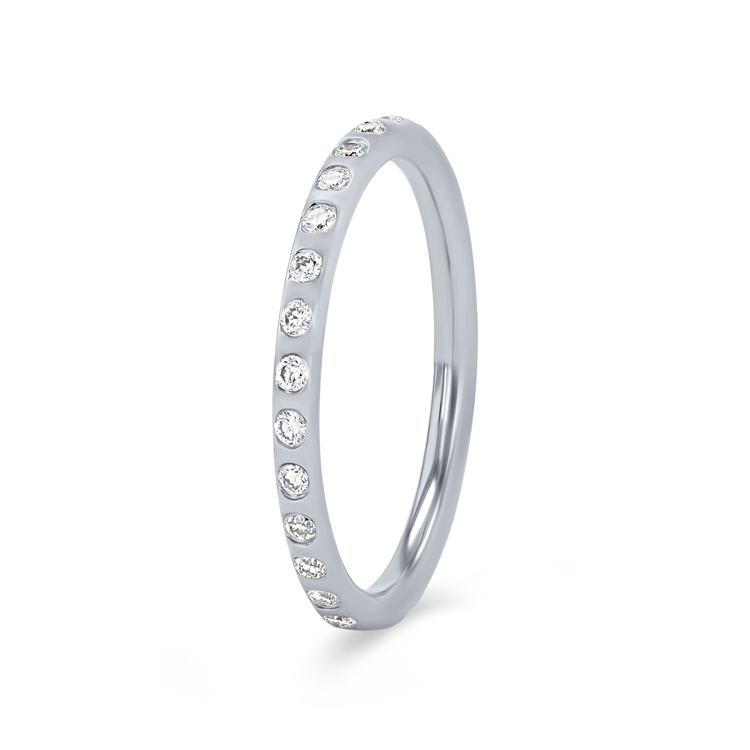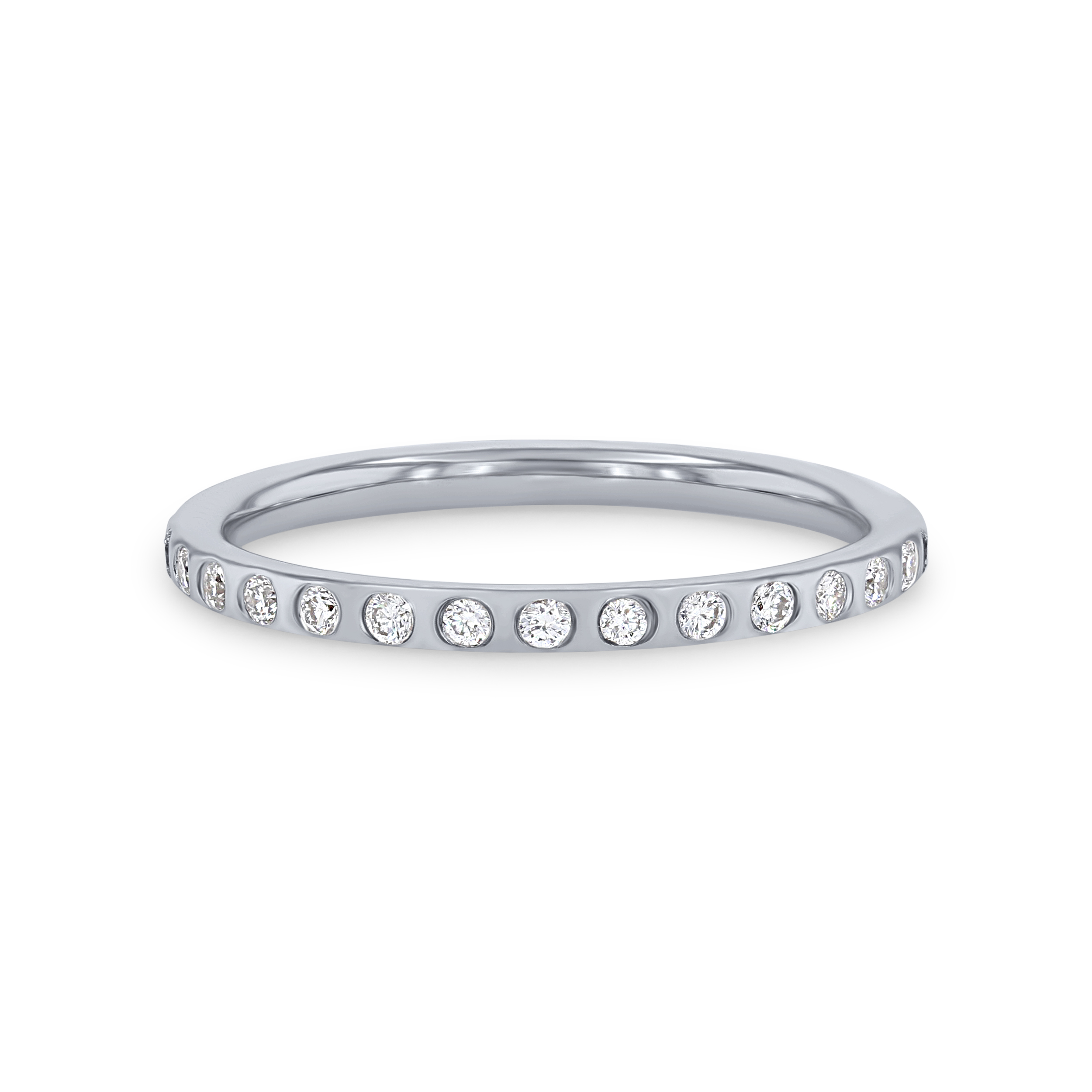 Product Description A beautiful modern look, this eternity band features 0.30 carats of round brilliant cut diamonds inlayed to the metal. Other Details Type: Ladies Wedding Band Metal Color: Platinum Total Setting Diamond Carat Weight: 0.3TW Disable Reason: None Wedding Band Type: Stackable Metal Color: White Gold Style: Contemporary Metal Color: Yellow Gold Gemstone Type: Diamond Metal Color: Rose Gold