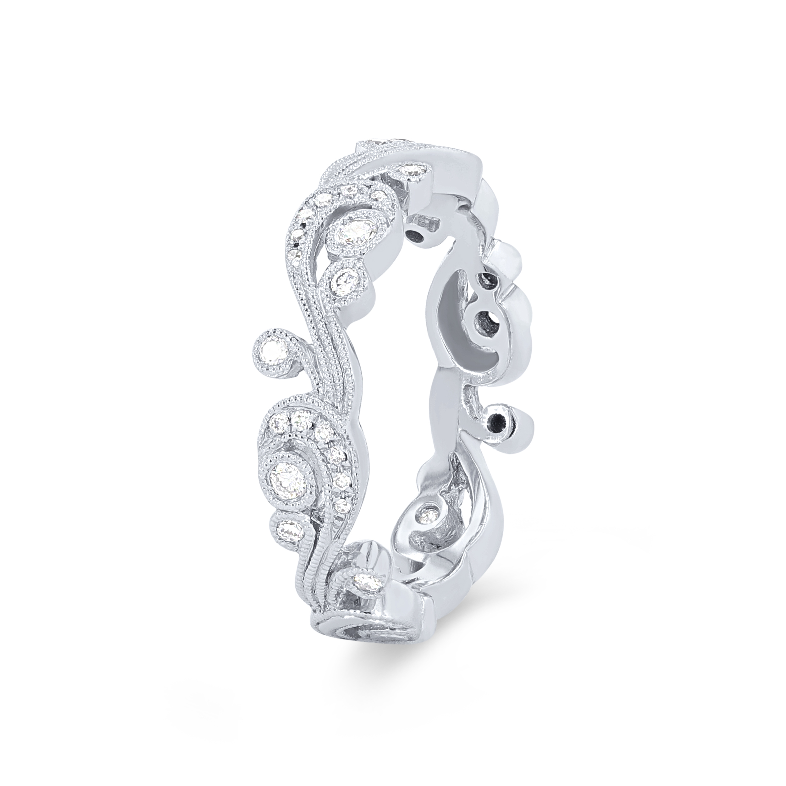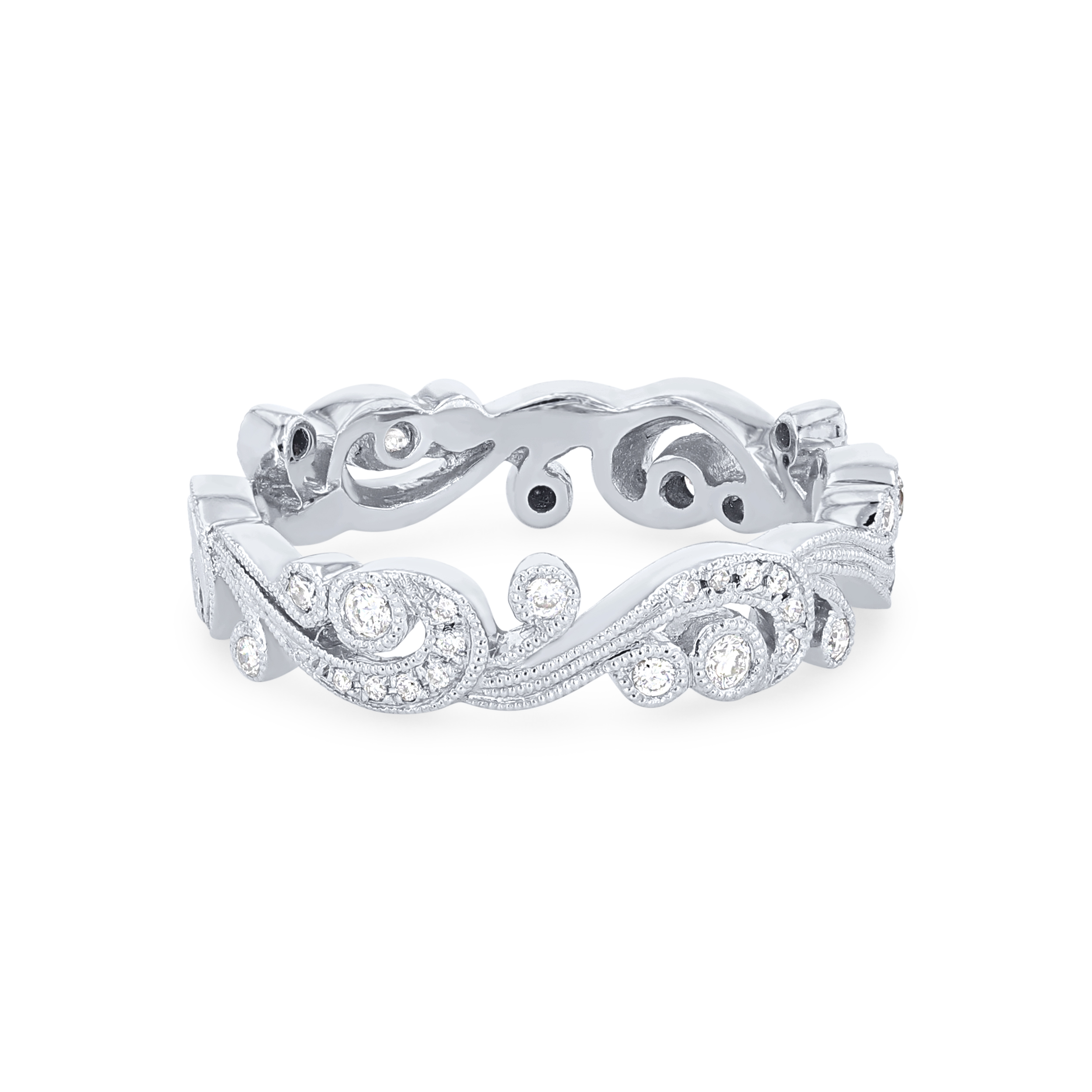 Product Description Distinctive milgrain detail and hand engraving craft a stunning wedding band from the Angelique Collection, accented with 0.21 carats of round brilliant cut diamonds. Other Details Disable Reason: None Gemstone Type: Diamond Metal Color: White Gold Type: Ladies Wedding Band Diamond: Twist Metal Color: Platinum Metal Color: Yellow Gold Total Setting Diamond Carat Weight: 0.21TW Wedding Band Type: Vintage Metal Color: Rose Gold