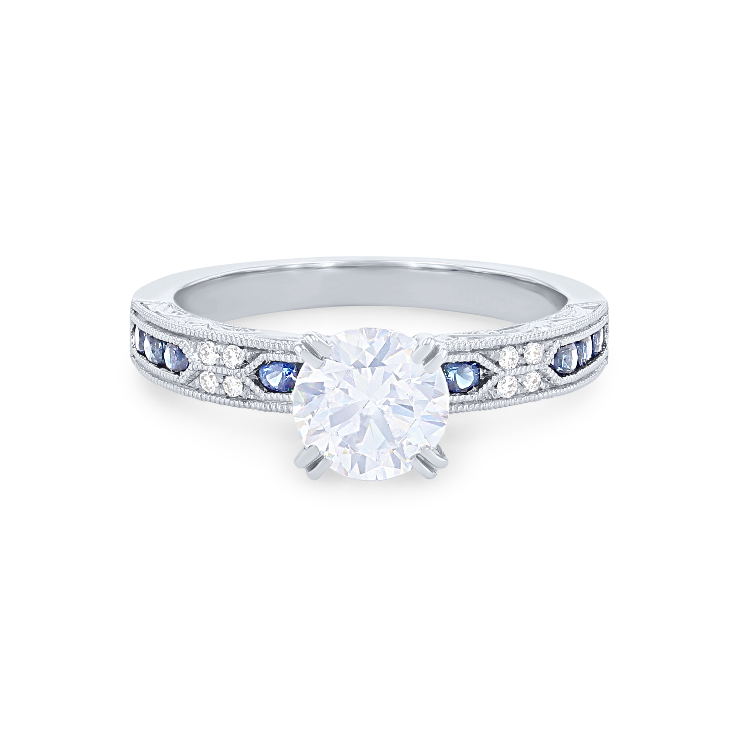 Product Description Crafted with beautiful hand engraved detail, this Charlotte Collection engagement setting features 0.38 carats of blue sapphires and 0.03 carats of round brilliant cut diamonds. Other Details Type: Setting Gemstone Type: Sapphire Total Setting Diamond Carat Weight: 0.03TW Metal Color: White Gold Metal Color: Yellow Gold Total Gemstone Carat Weight: 0.035TW Style: Vintage Mounting Type: Diamond Accented Women Wedding Band Type: Gemstone Disable Reason: None Metal Color: Platinum