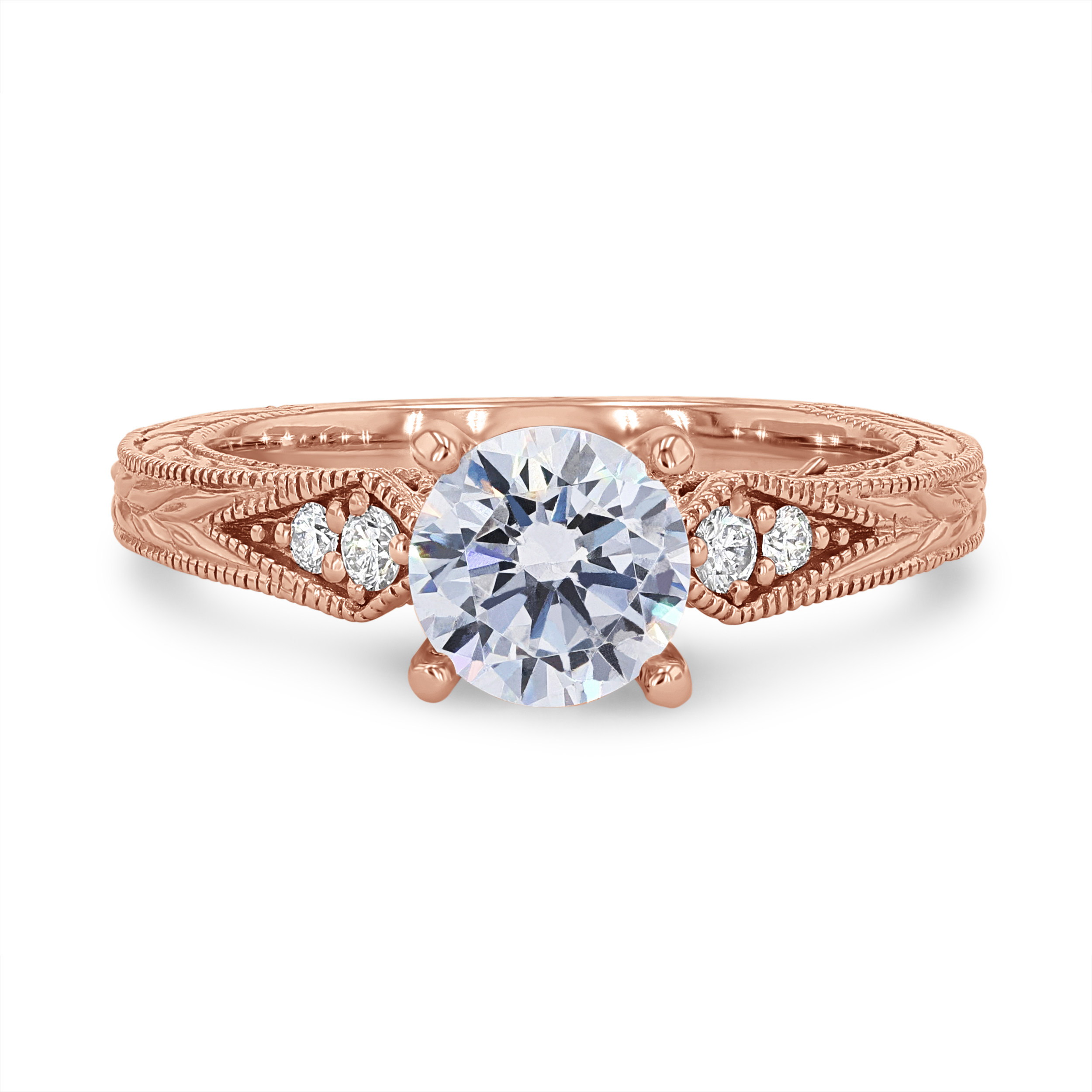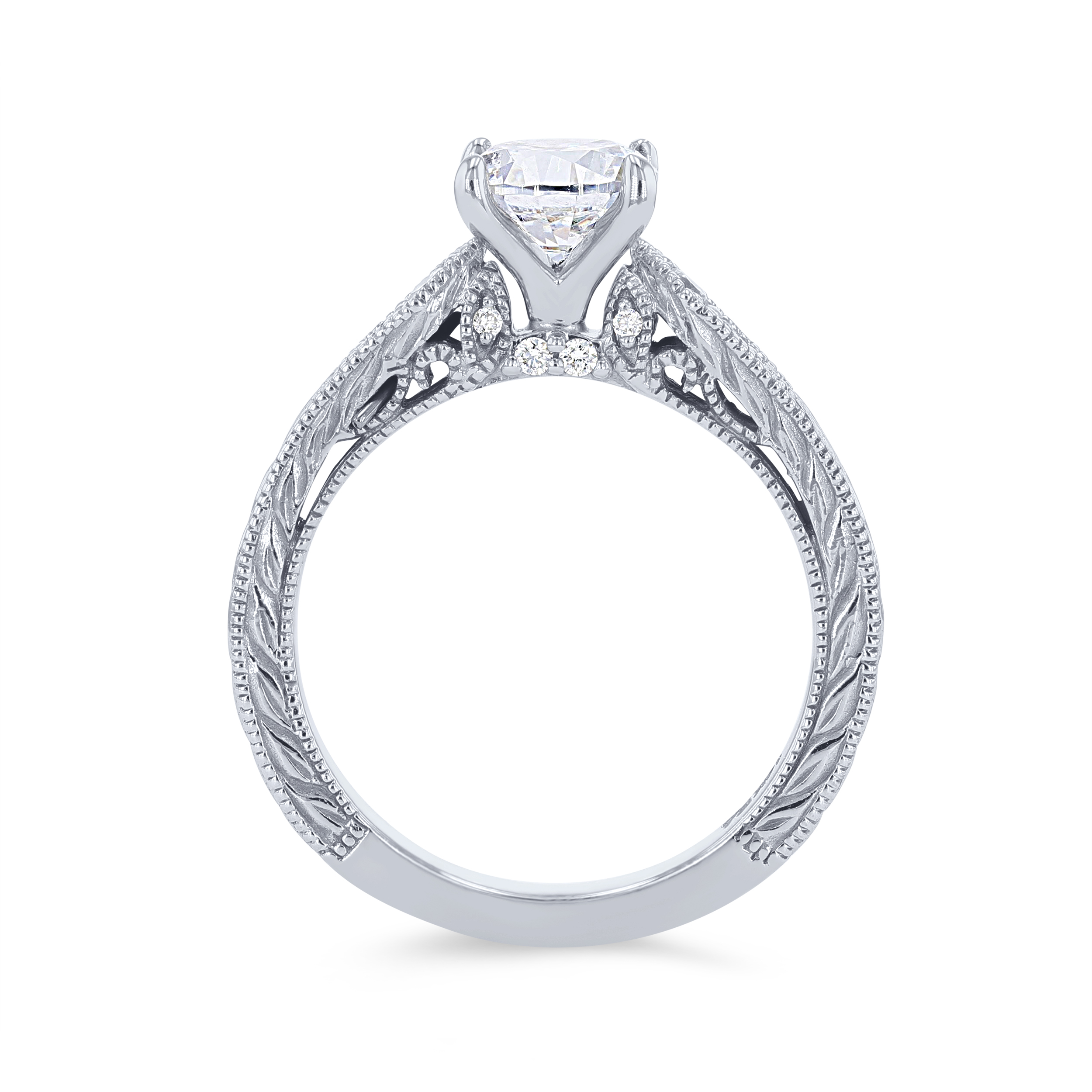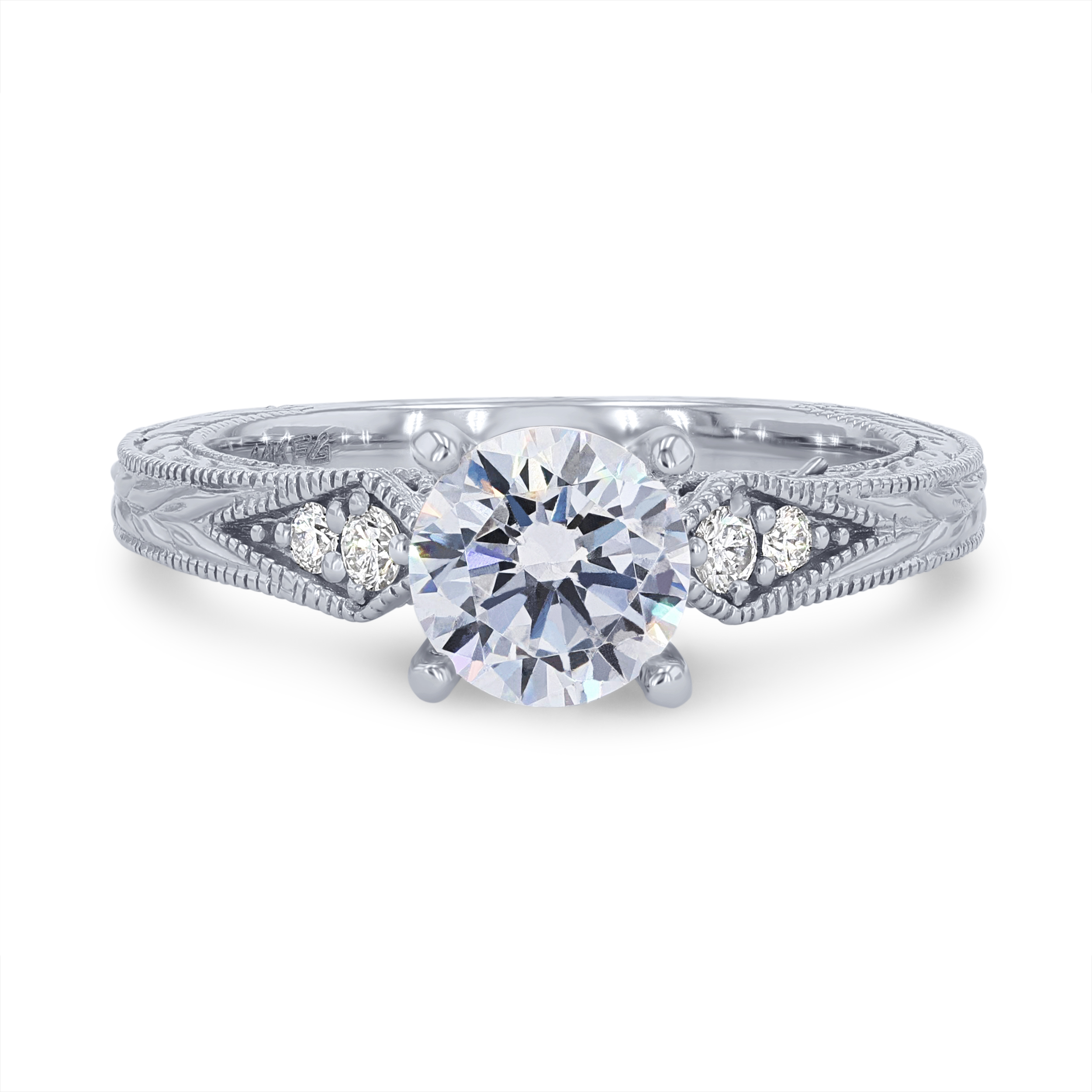 Product Description Intricate hand-engraved details with milgrain create a stunning vintage engagement setting accented by round brilliant cut diamonds totaling 0.15 carats. Other Details Metal Color: Rose Gold Metal Color: White Gold Metal Color: Yellow Gold Mounting Type: Diamond Accented Gemstone Type: Diamond Disable Reason: None Total Setting Diamond Carat Weight: 0.15TW Type: Setting Style: Vintage Metal Color: Platinum