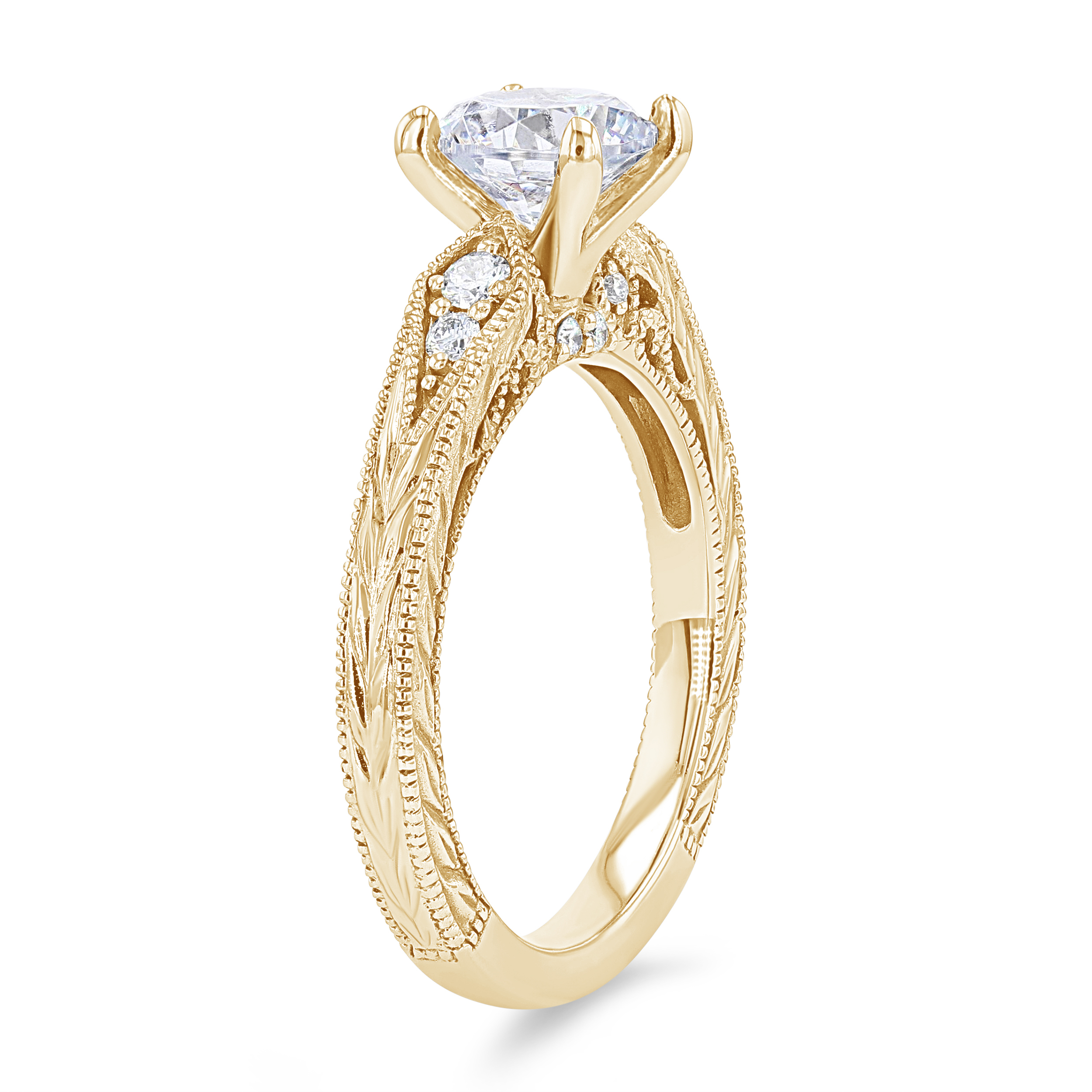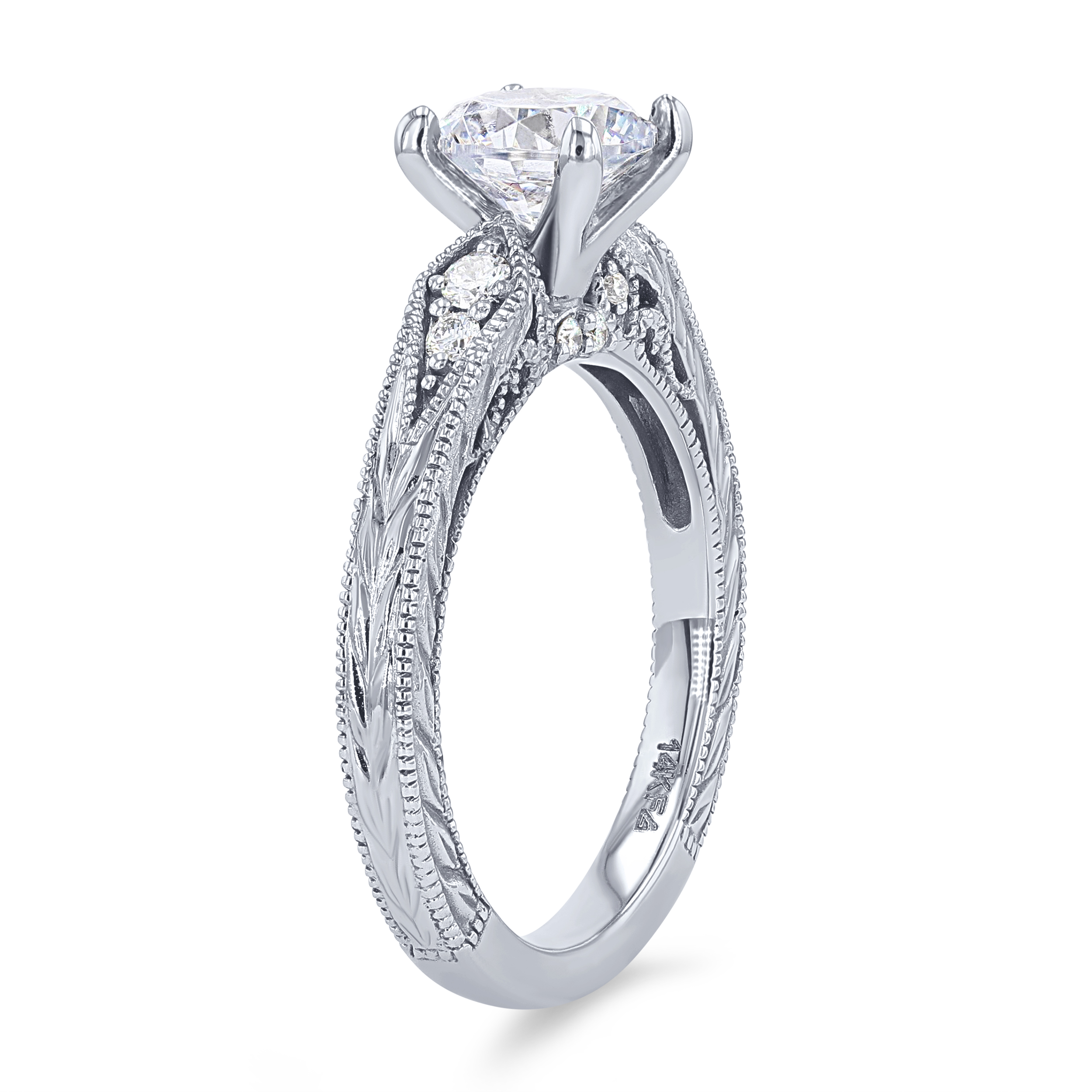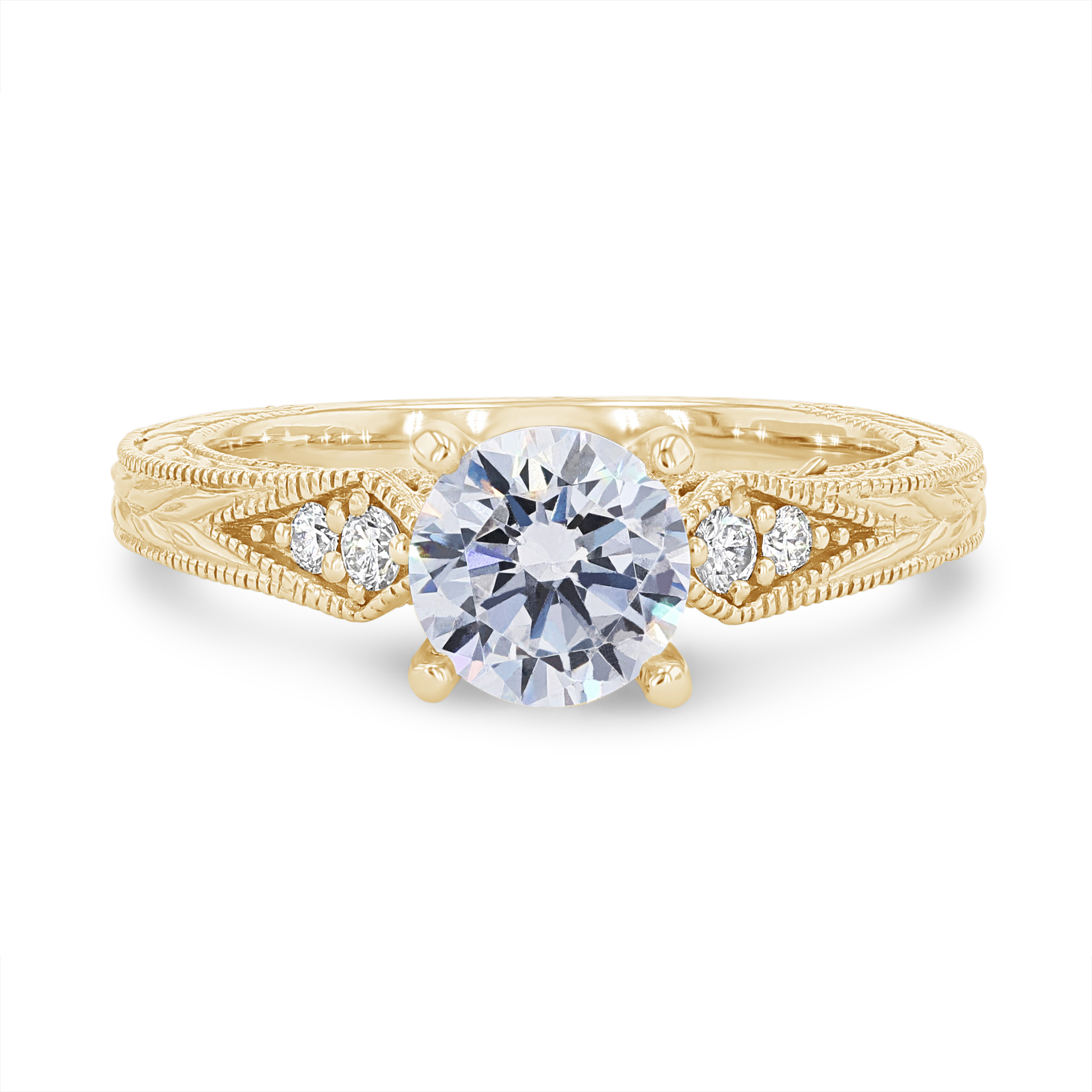 Product Description Intricate hand-engraved details with milgrain create a stunning vintage engagement setting accented by round brilliant cut diamonds totaling 0.15 carats. Other Details Metal Color: Rose Gold Metal Color: White Gold Metal Color: Yellow Gold Mounting Type: Diamond Accented Gemstone Type: Diamond Disable Reason: None Total Setting Diamond Carat Weight: 0.15TW Type: Setting Style: Vintage Metal Color: Platinum