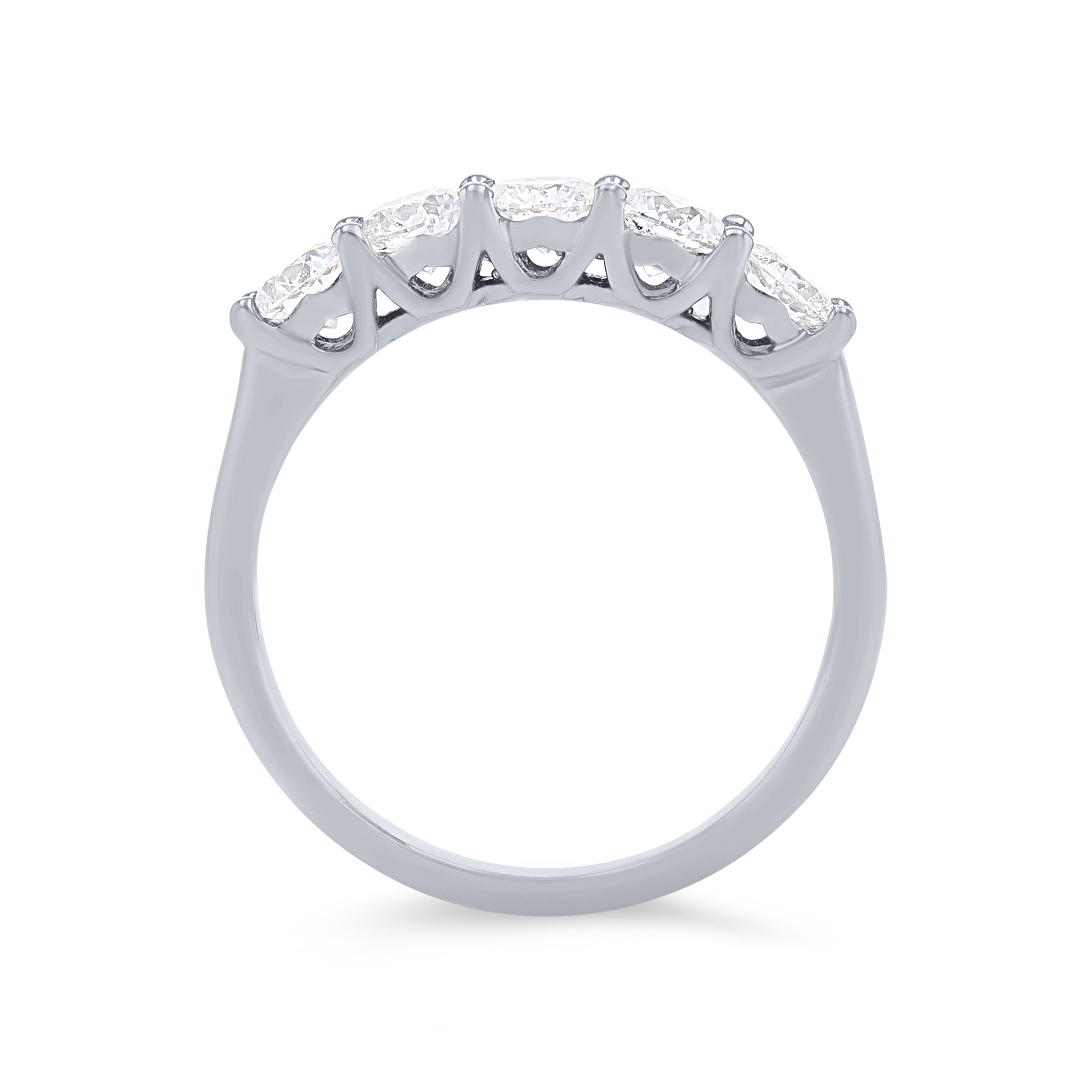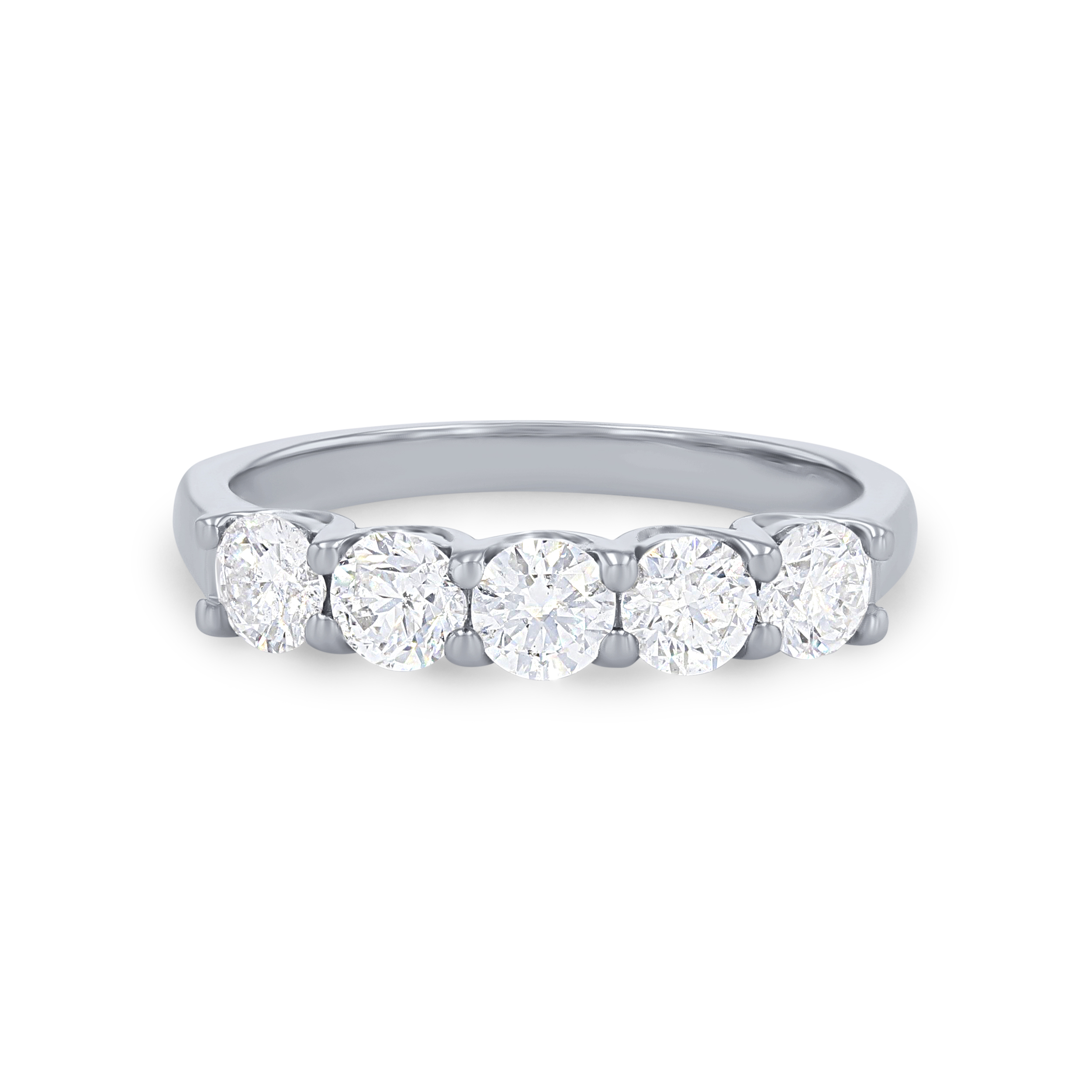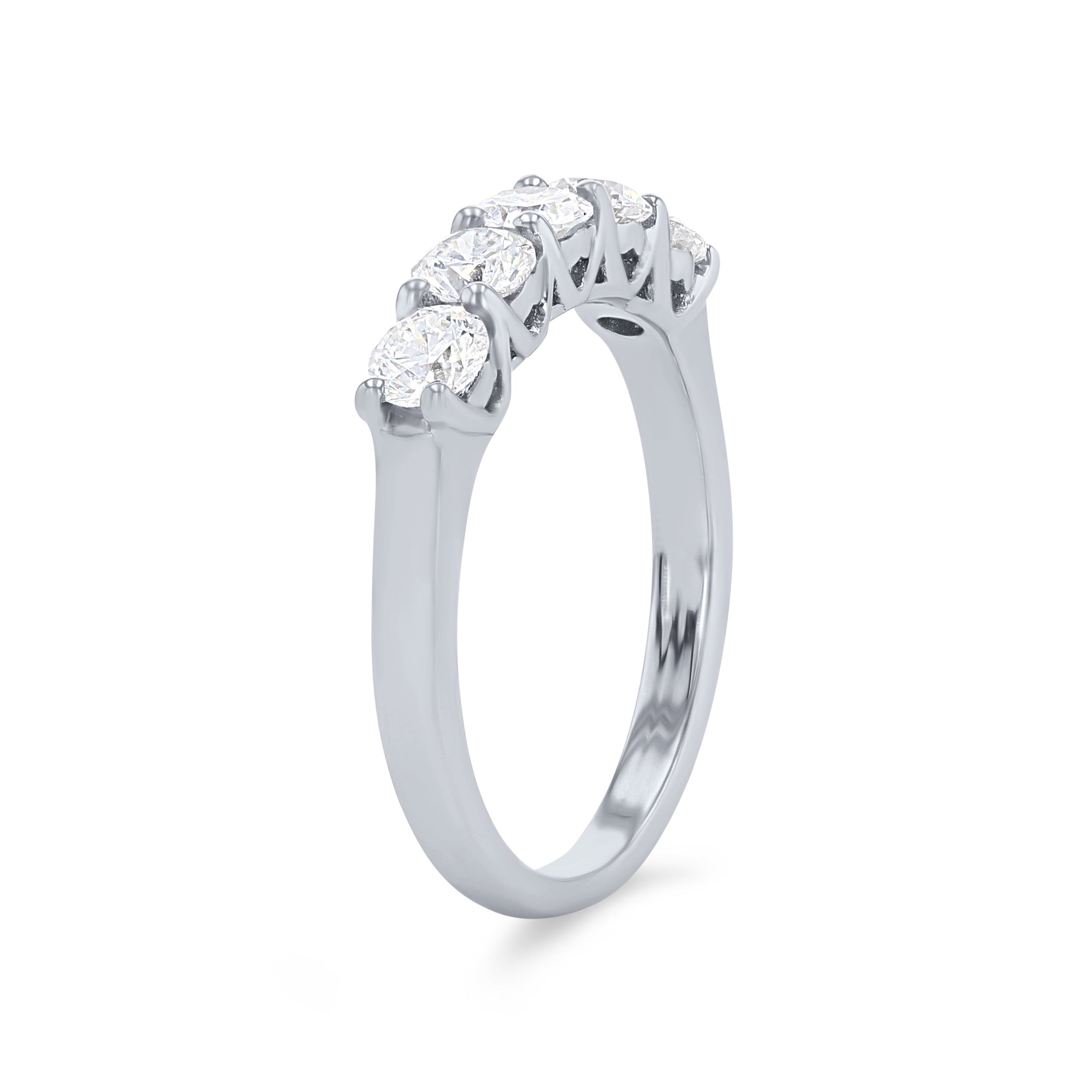 Product Description Perfect next to an engagement ring or as an anniversary band, this classic features five round brilliant cut diamonds weighing 1.00 carat total. Other Details Metal Color: Yellow Gold Gemstone Type: Diamond Metal Color: Rose Gold Average clarity range: SI Type: Ladies Wedding Band Metal Color: White Gold Total Setting Diamond Carat Weight: 1TW Average color range: GH Wedding Band Type: Prong Set Disable Reason: None Metal Color: Platinum Style: Classic
