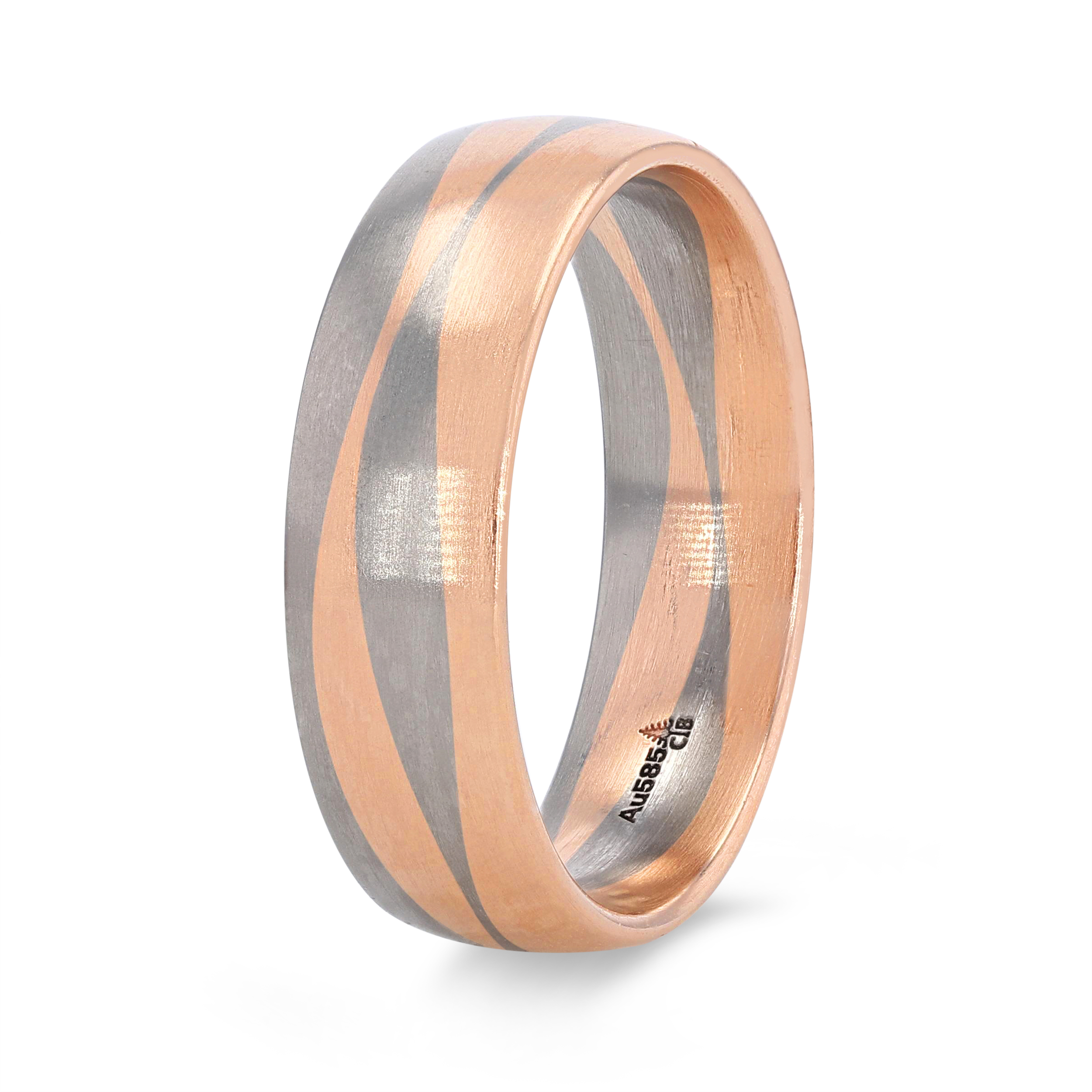 Product Description This unique contemporary wedding band features two tones of gold in a marble-like design and measures 6.5 millimeters wide. Other Details Metal Color: Two Tone Disable Reason: None Type: Gents Wedding Band Men Wedding Band Type: Matte Gents Wedding Band Style: Contemporary