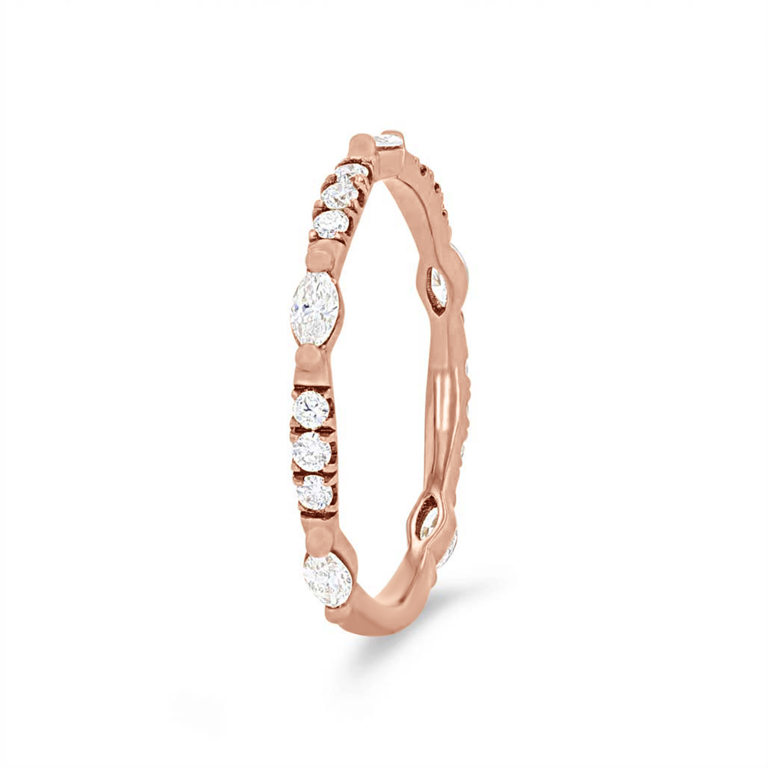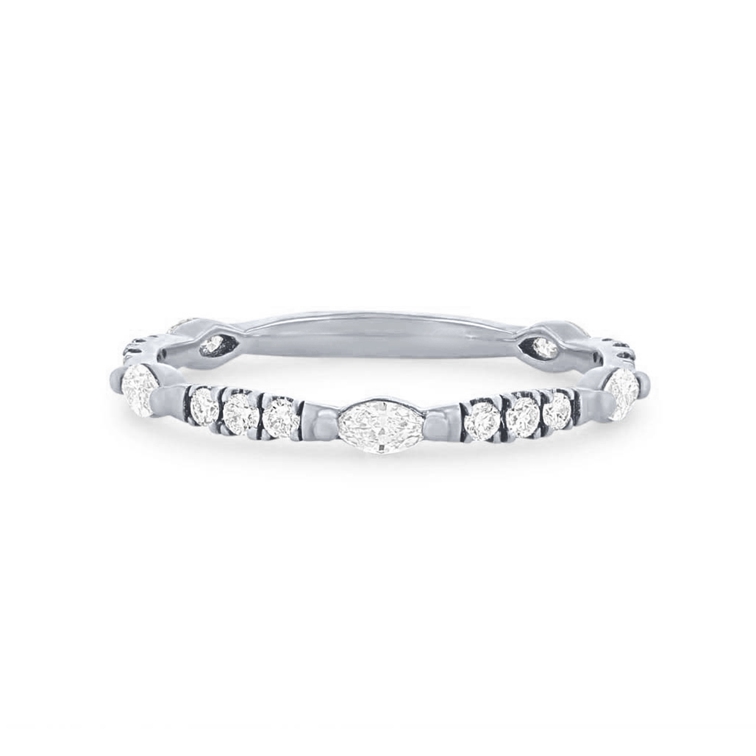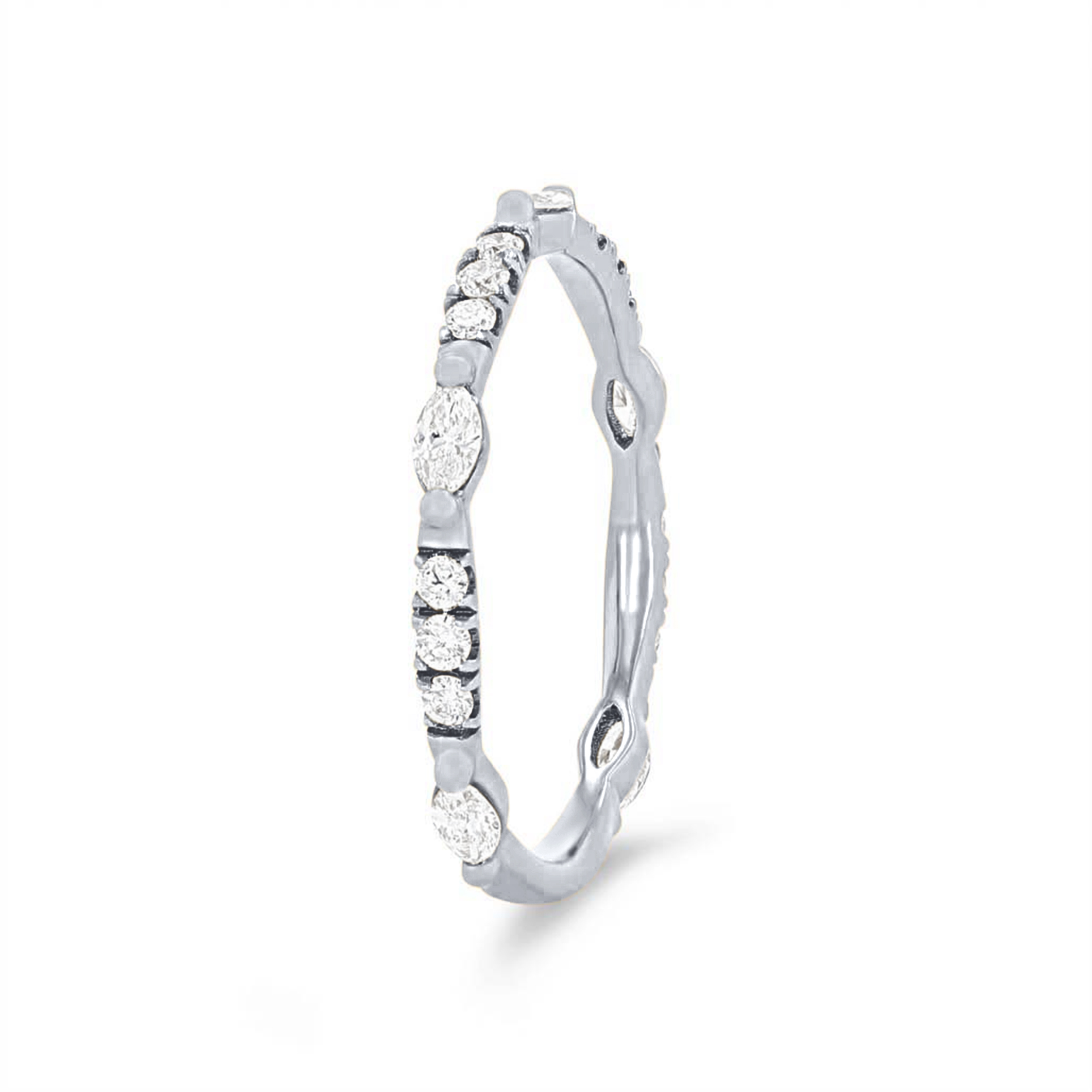 Product Description This unique wedding band features marquise cut and round brilliant cut diamonds graduating in size, all totaling 0.40 carats. The diamonds extend three-quarters of the way around. Other Details Metal Color: Rose Gold Metal Color: Platinum Style: Contemporary Metal Color: Yellow Gold Disable Reason: None Diamond: Stackable Wedding Band Type: Fancy Shapes Metal Color: White Gold Gemstone Type: Diamond Total Setting Diamond Carat Weight: 0.4TW Type: Ladies Wedding Band