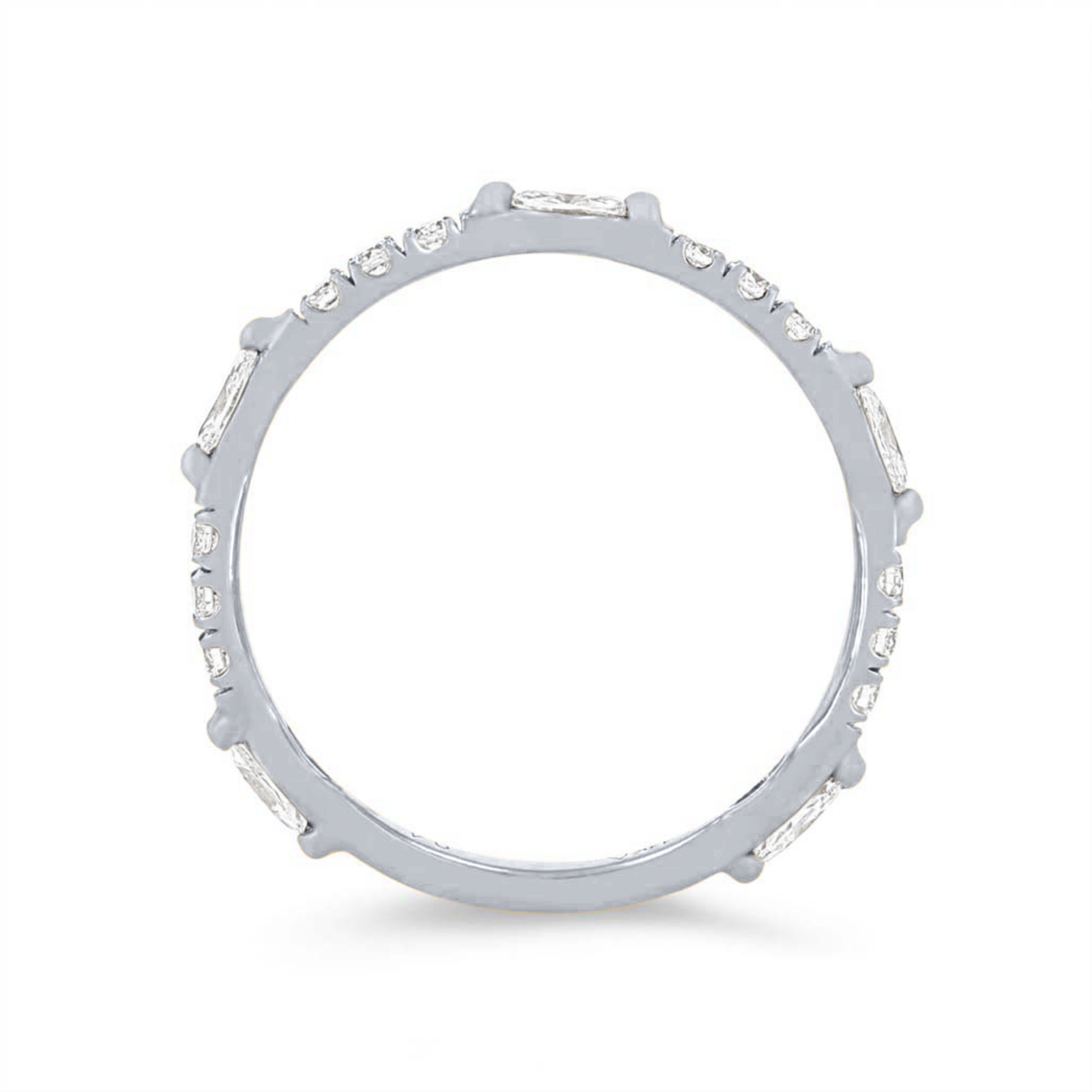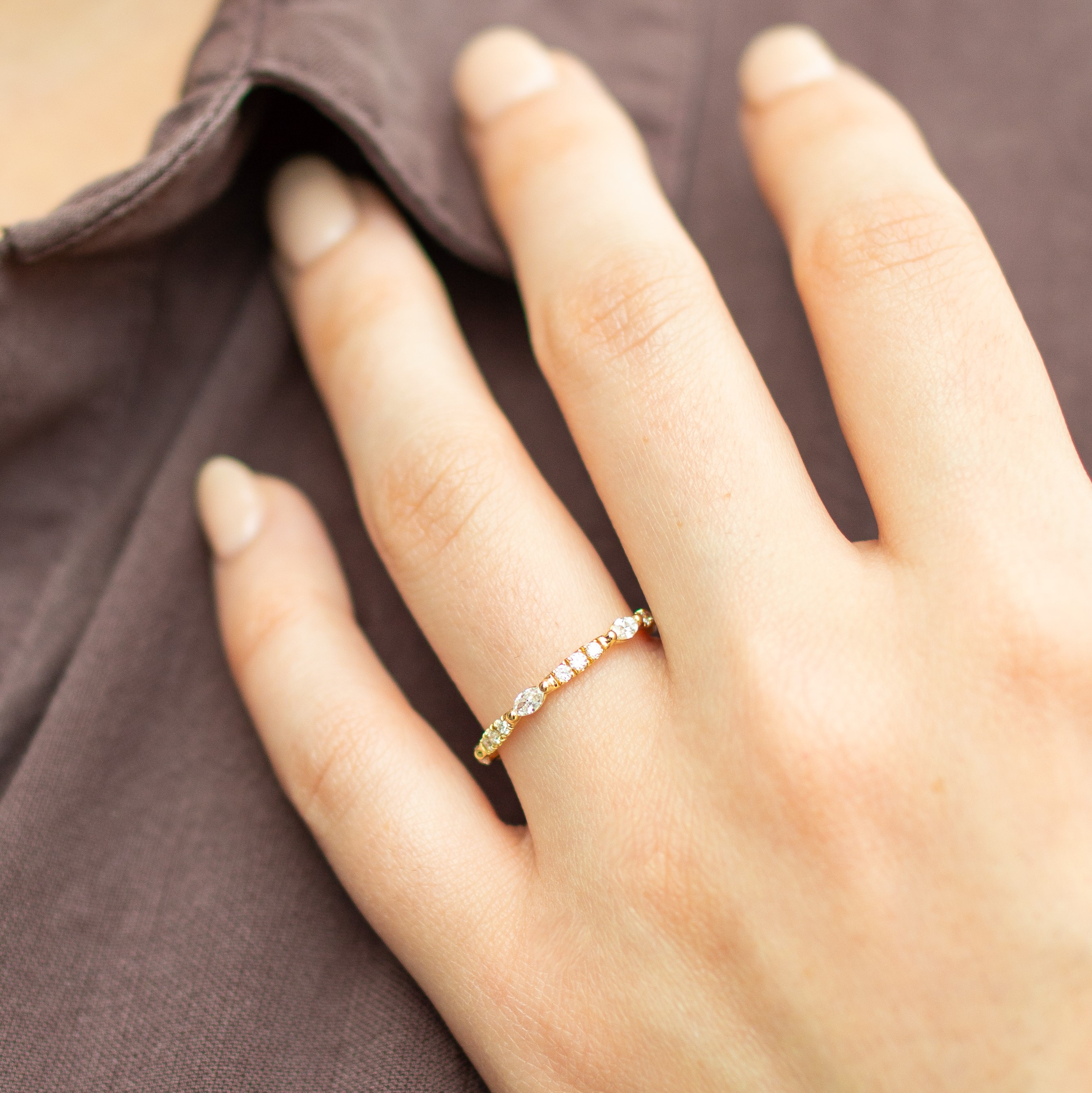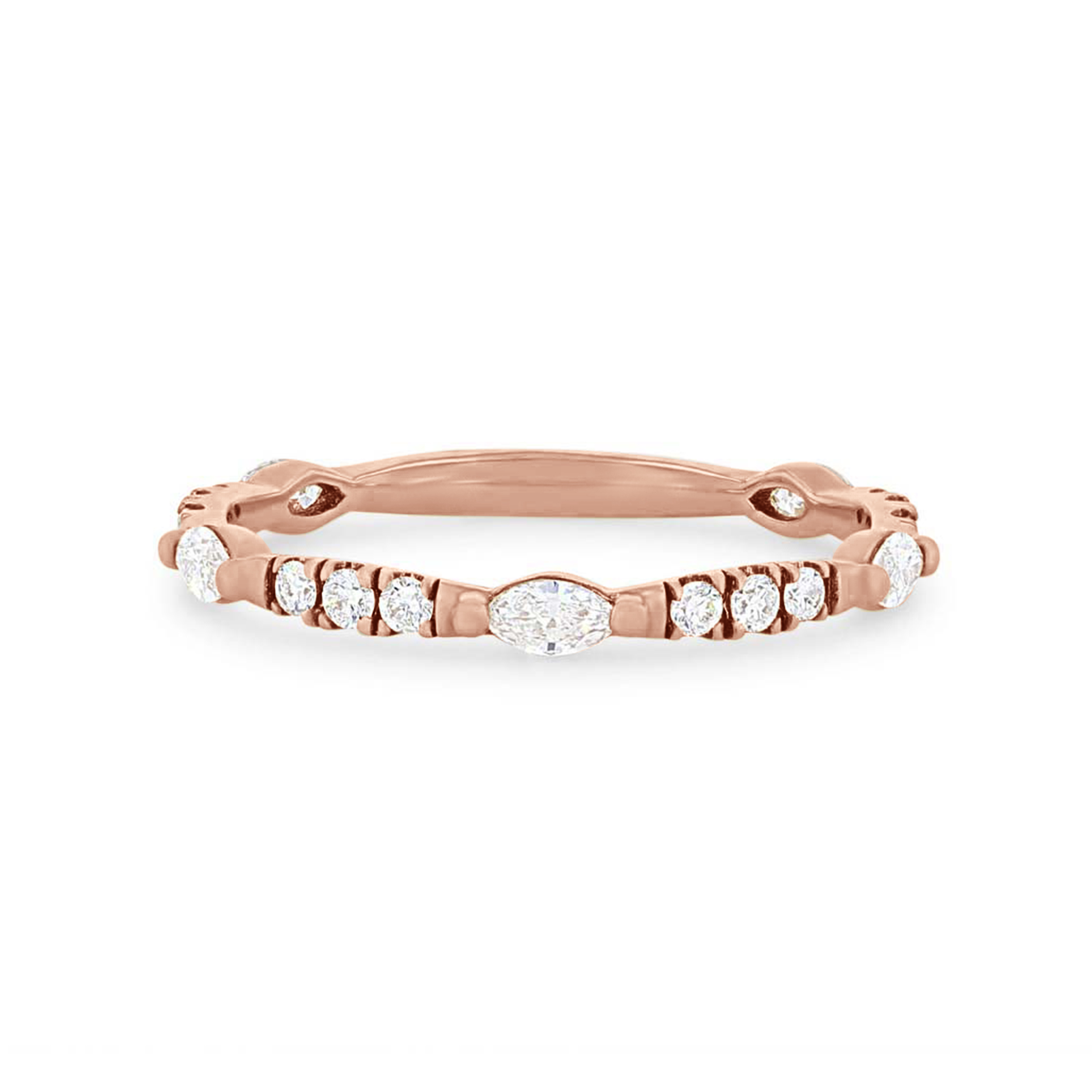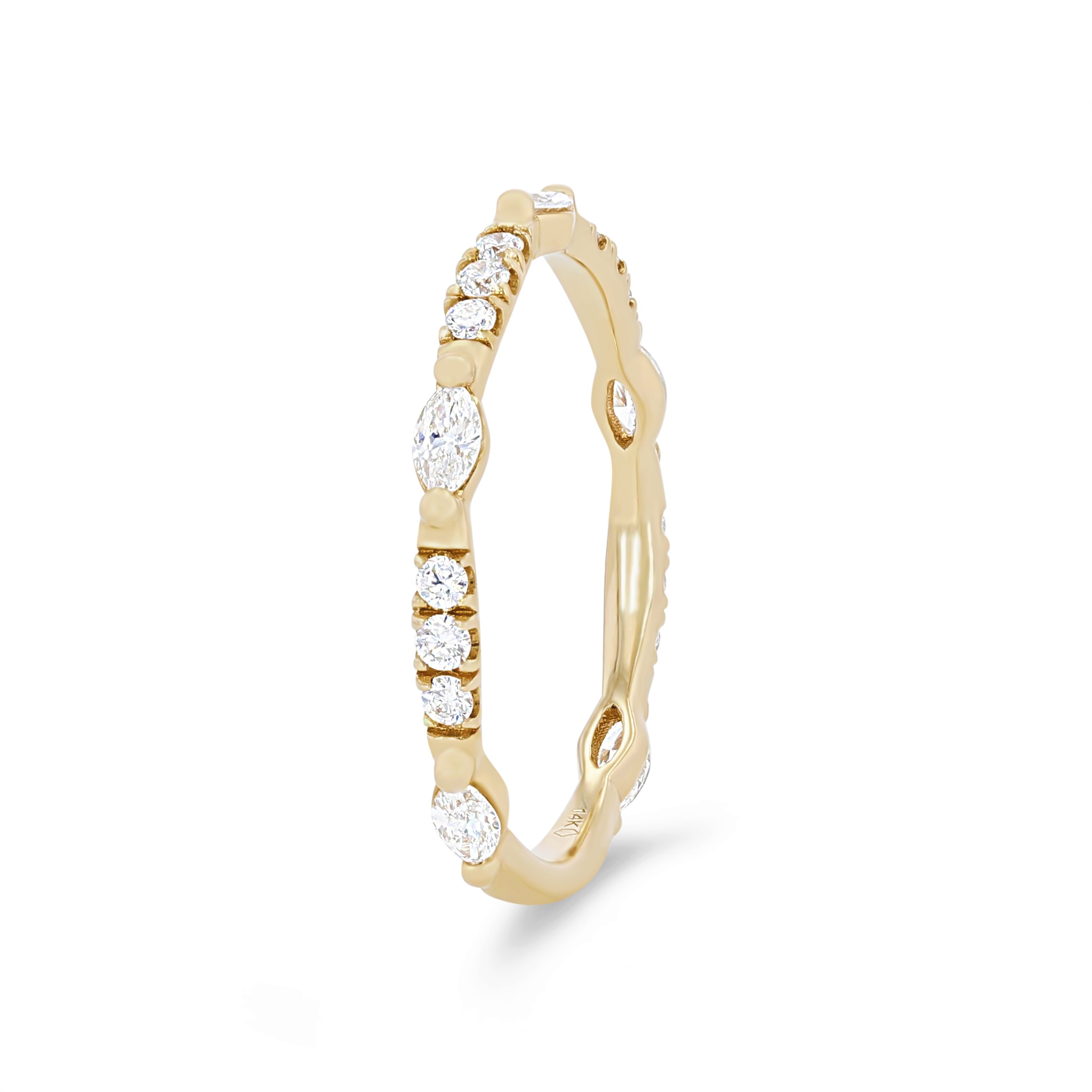 Product Description This unique wedding band features marquise cut and round brilliant cut diamonds graduating in size, all totaling 0.40 carats. The diamonds extend three-quarters of the way around. Other Details Metal Color: Rose Gold Metal Color: Platinum Style: Contemporary Metal Color: Yellow Gold Disable Reason: None Diamond: Stackable Wedding Band Type: Fancy Shapes Metal Color: White Gold Gemstone Type: Diamond Total Setting Diamond Carat Weight: 0.4TW Type: Ladies Wedding Band