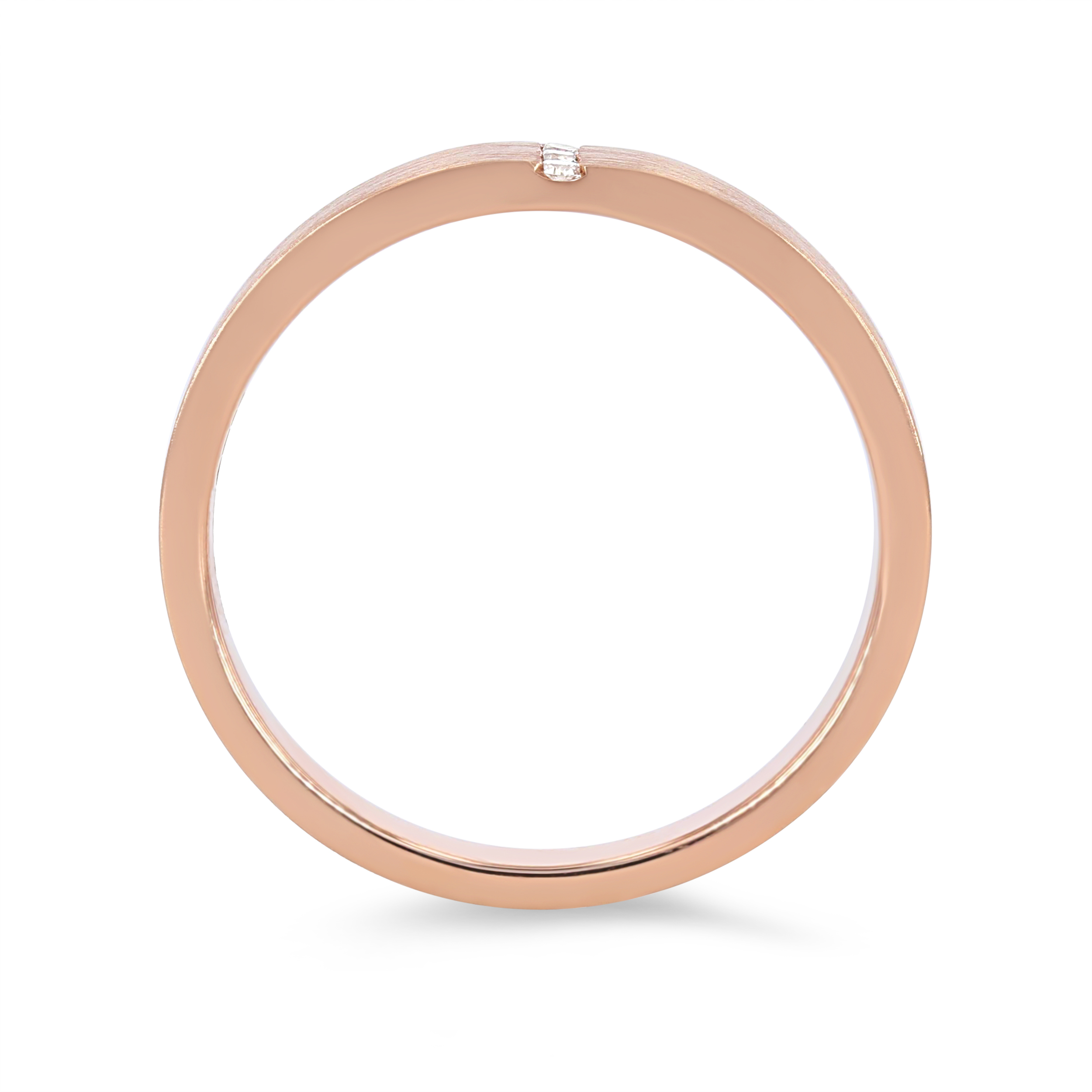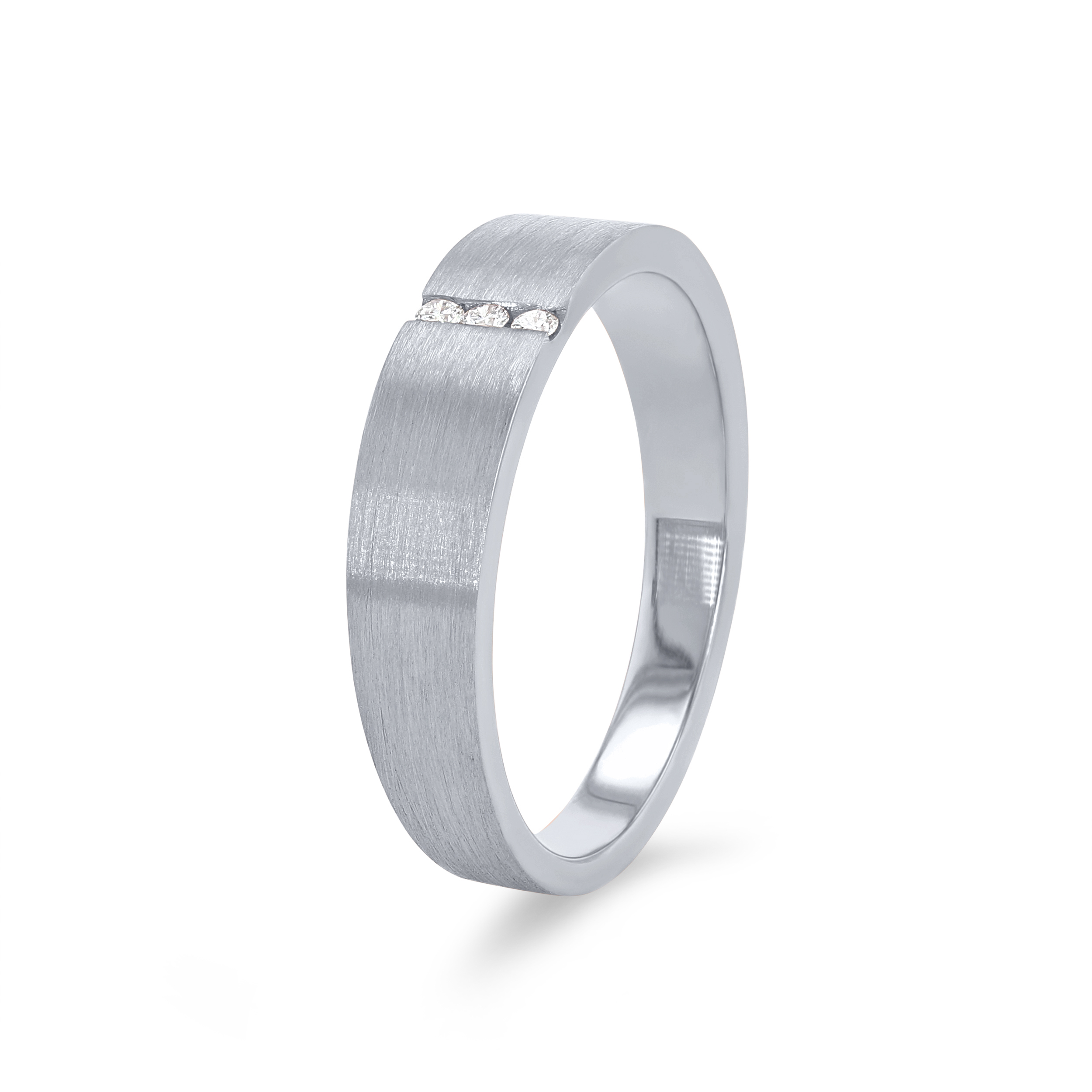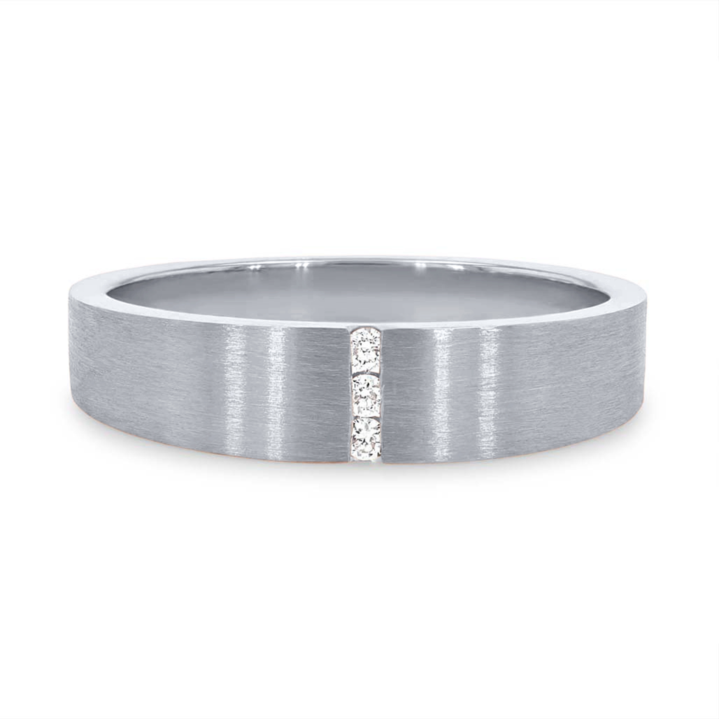 Product Description Beautiful to wear as a wedding or anniversary band, this 4.5 millimeter ring highlights a matte finish with four round brilliant cut diamonds totaling 0.03 carats veritcally in the center. Other Details Metal Color: Platinum Type: Ladies Wedding Band Metal Color: Rose Gold Metal Color: White Gold Metal Color: Yellow Gold Disable Reason: None Wedding Band Type: Channel Set Style: Contemporary Gemstone Type: Diamond Ring Type: Fashion Total Setting Diamond Carat Weight: 0.03TW