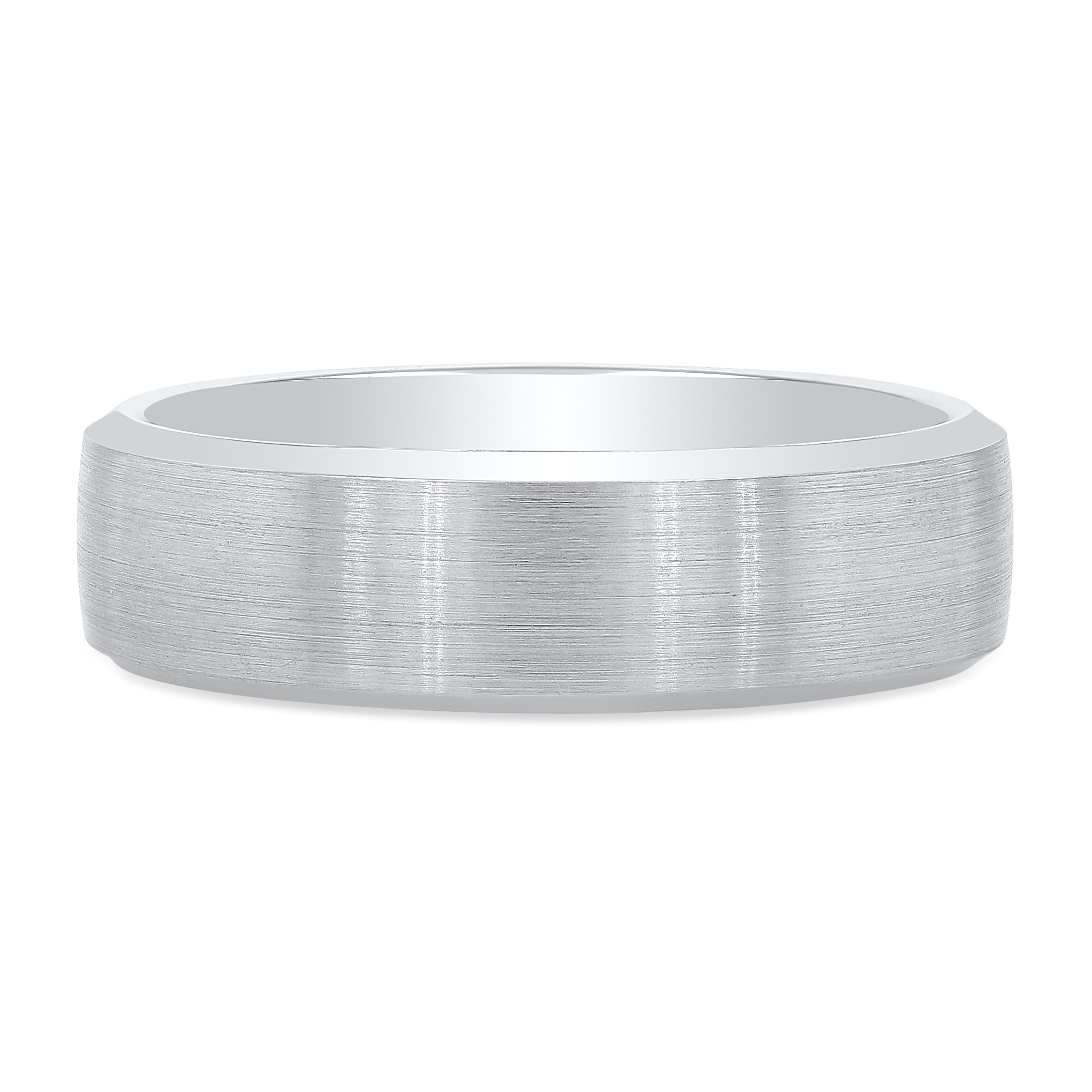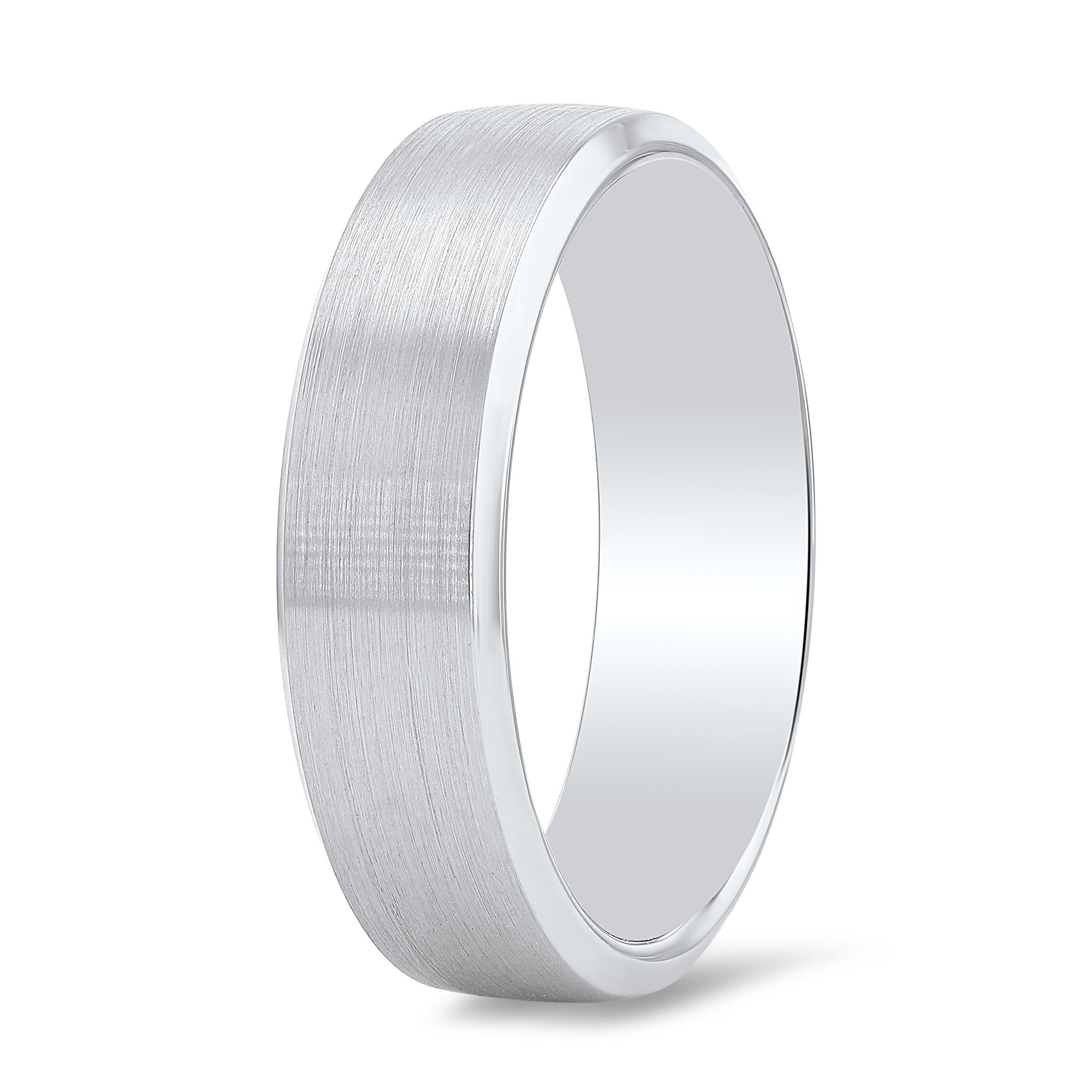 Product Description Simple and classic, this wedding band features a matte finish with bevel edges measuring 6.5 millimeters wide. Other Details Finish: Matte Gents Wedding Band Style: Classic Type: Gents Wedding Band Style: Classic