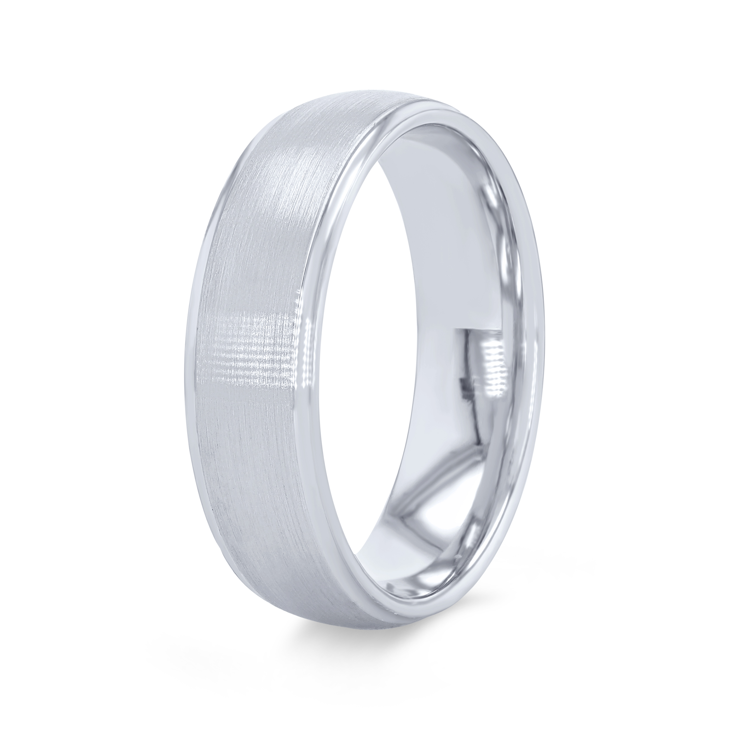 Product Description This timeless wedding band features a matte finish with high-polished edges and measures 6.5 millimeters wide. Other Details Disable Reason: None Metal Color: Yellow Gold Metal Color: Rose Gold Men Wedding Band Type: Men's Plain Bands Metal Color: White Gold Type: Gents Wedding Band Gents Wedding Band Style: Classic Metal Color: Platinum