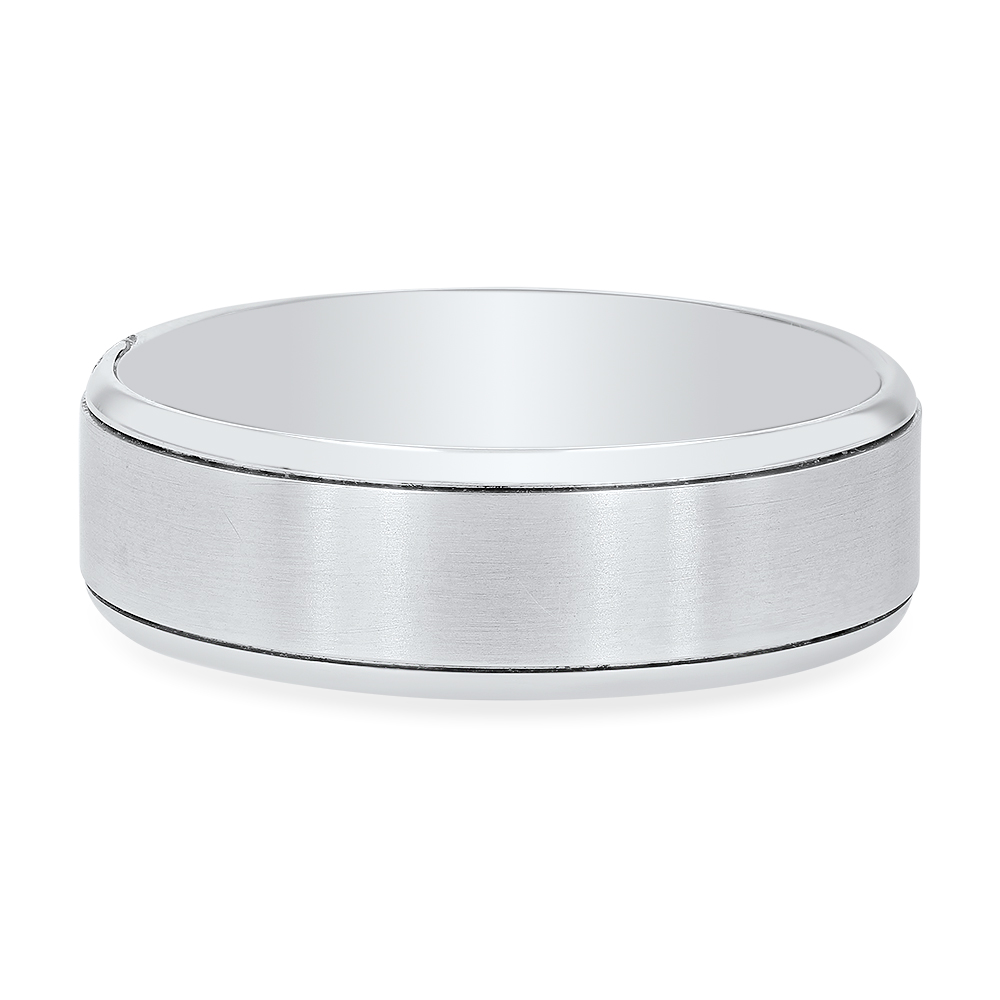 Product Description Classic and timeless, this wedding band measures seven millimeters wide and features a matte finish center with high-polished edges. Other Details Metal Color: Platinum Metal Color: Rose Gold Metal Color: White Gold Metal Color: Yellow Gold Men Wedding Band Type: Men's Plain Bands Type: Gents Wedding Band Gents Wedding Band Style: Classic Disable Reason: None