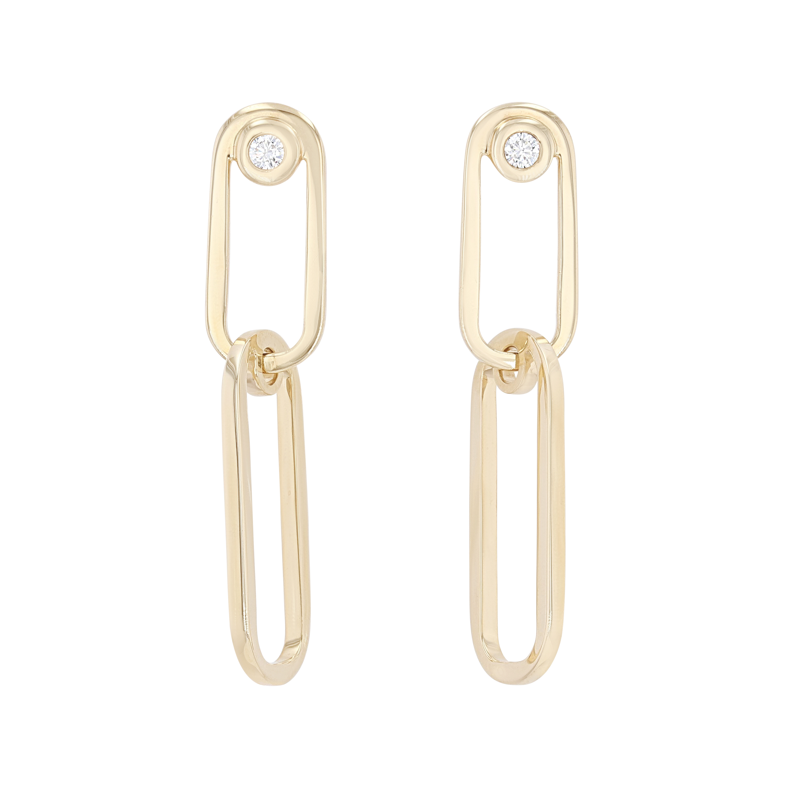 Product Description These stunning earrings by Michael M. feature large links with two bezel set round brilliant cut diamonds totaling 0.13 carats. Other Details Earring Type: Dangle Style: Contemporary Total Setting Diamond Carat Weight: 0.13TW Type: Earrings Gemstone Type: Diamond Disable Reason: None Metal Color: Yellow Gold