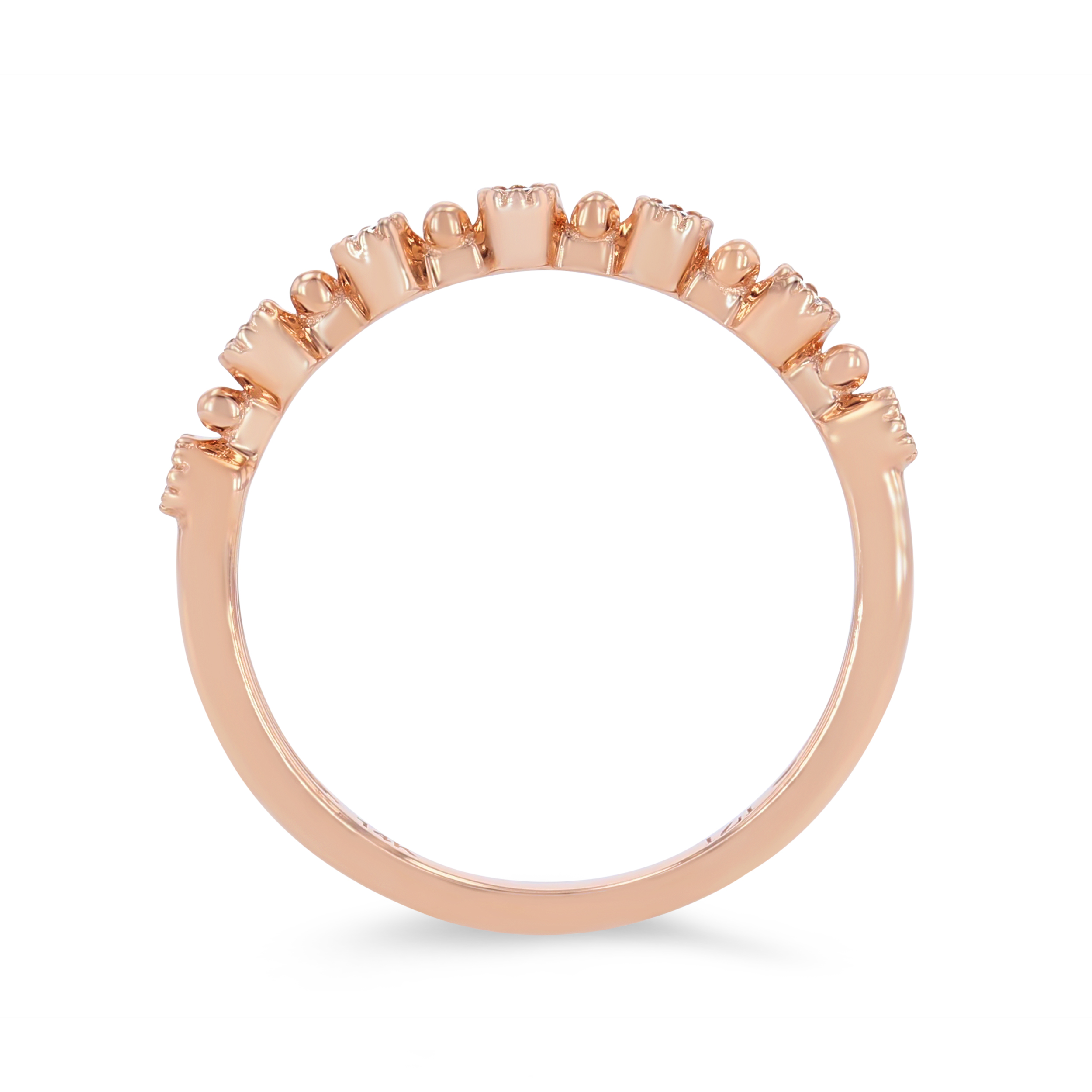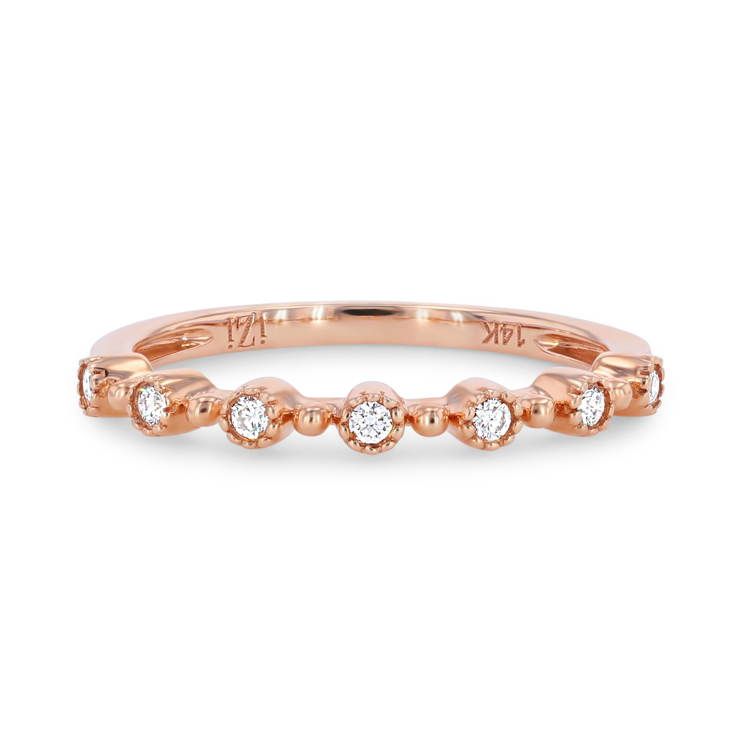 Product Description This enchanting vintage-inspired band features round brilliant cut diamonds totaling 0.10 carats alternating with beaded drops of metal. Other Details Gemstone Type: Diamond Diamond: Stackable Style: Vintage Metal Color: Rose Gold Type: Ladies Wedding Band Metal Color: White Gold Disable Reason: None Metal Color: Yellow Gold Total Setting Diamond Carat Weight: 0.1TW Wedding Band Type: Bezel