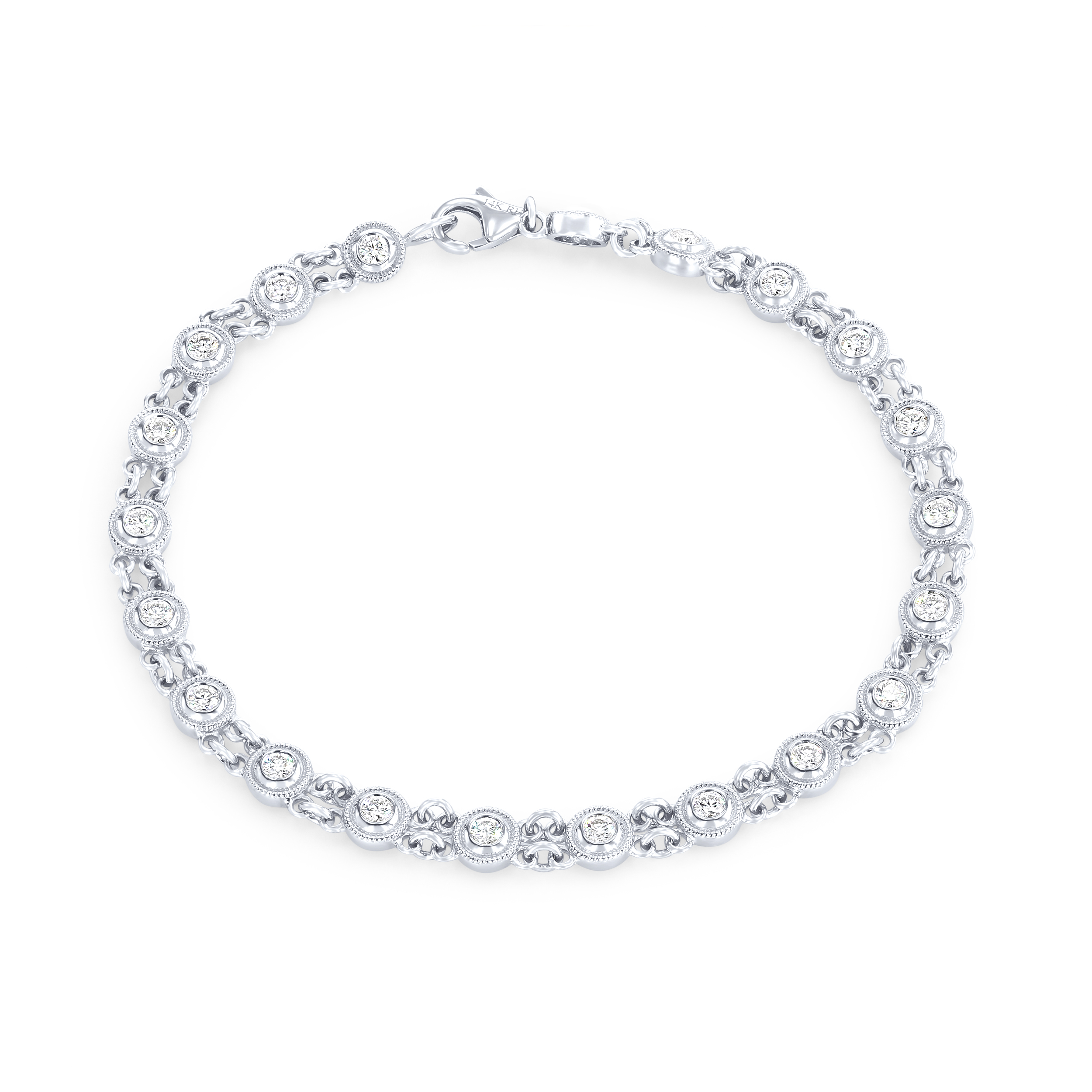 Product Description A stunning vintage inspired design, this bracelet features 21 round brilliant cut diamonds totaling 1.05 carats accented with milgrain detail. Other Details Tennis Bracelet Type: Distinctive Tennis Bracelet Gemstone Type: Diamond Metal Color: Rose Gold Total Setting Diamond Carat Weight: 1.05TW Bracelet Type: Tennis Bracelets Disable Reason: None Metal Color: White Gold Type: Bracelet Style: Vintage