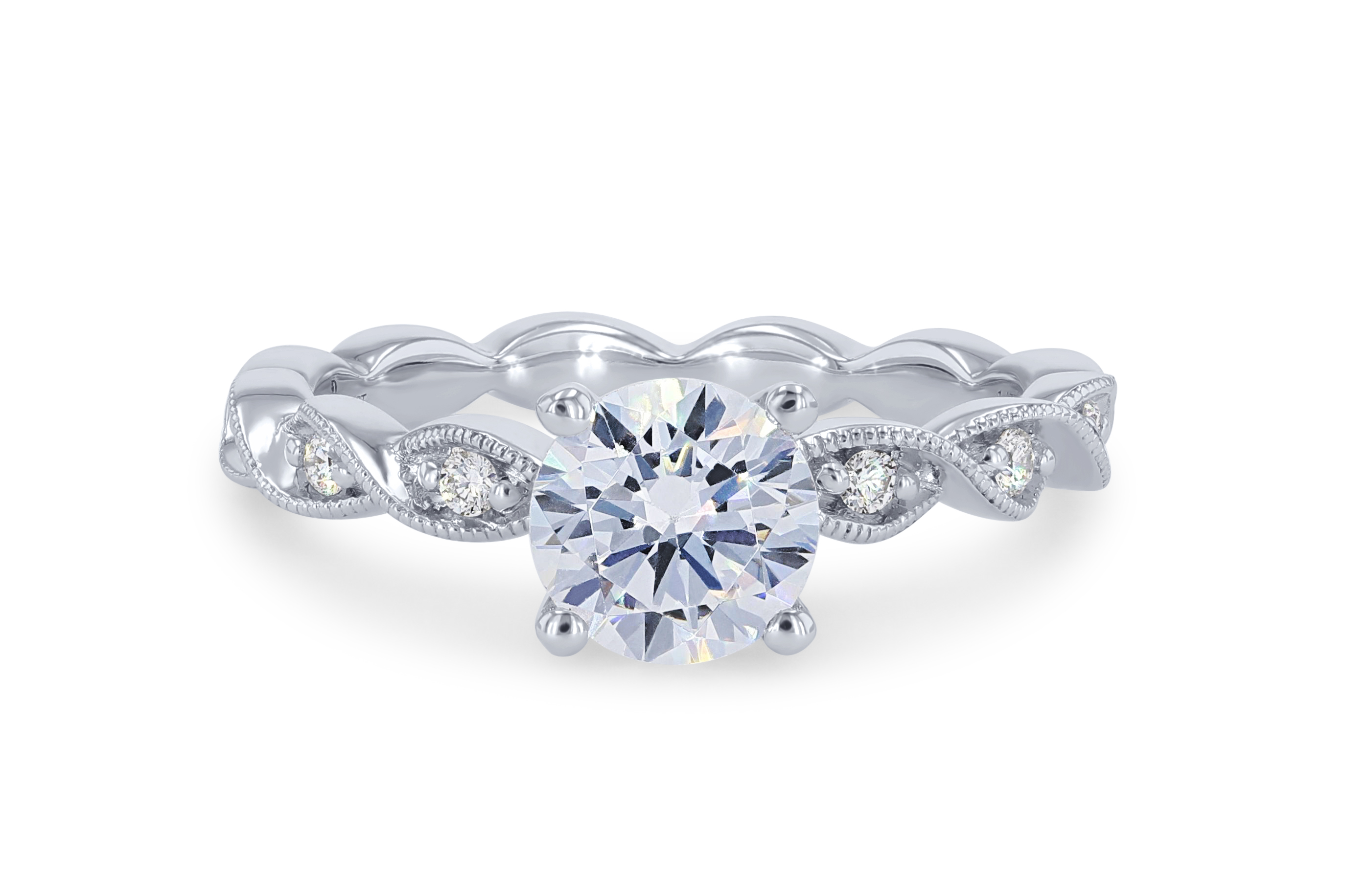 Product Description The twist milgrain detail encircling the 0.09 carats of round brilliant cut diamonds creates a beautiful vintage-inspired look. Other Details Gemstone Type: Diamond Type: Setting Total Setting Diamond Carat Weight: 0.09TW Metal Color: Yellow Gold Style: Vintage Mounting Type: Twist Metal Color: White Gold Metal Color: Platinum Disable Reason: None Metal Color: Rose Gold