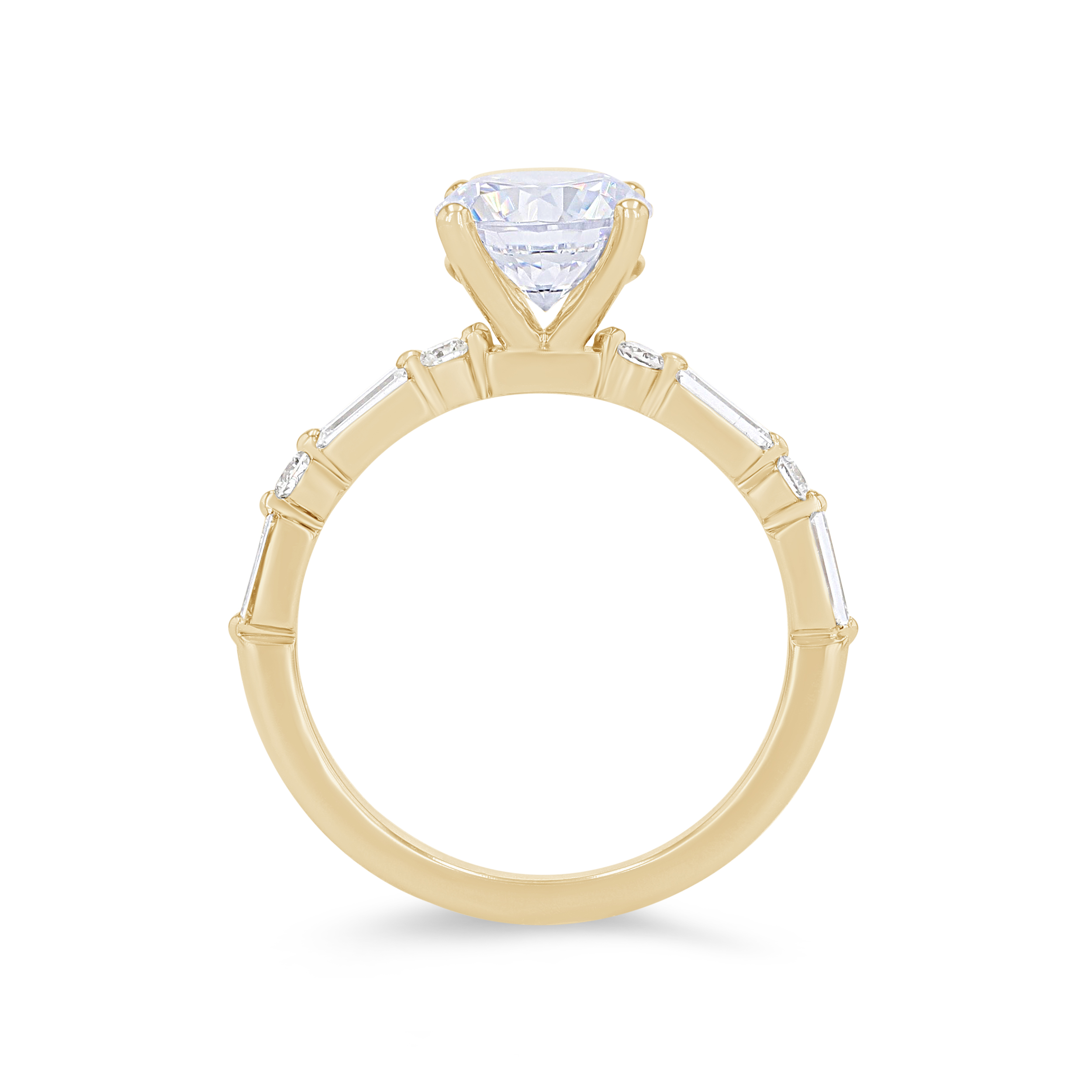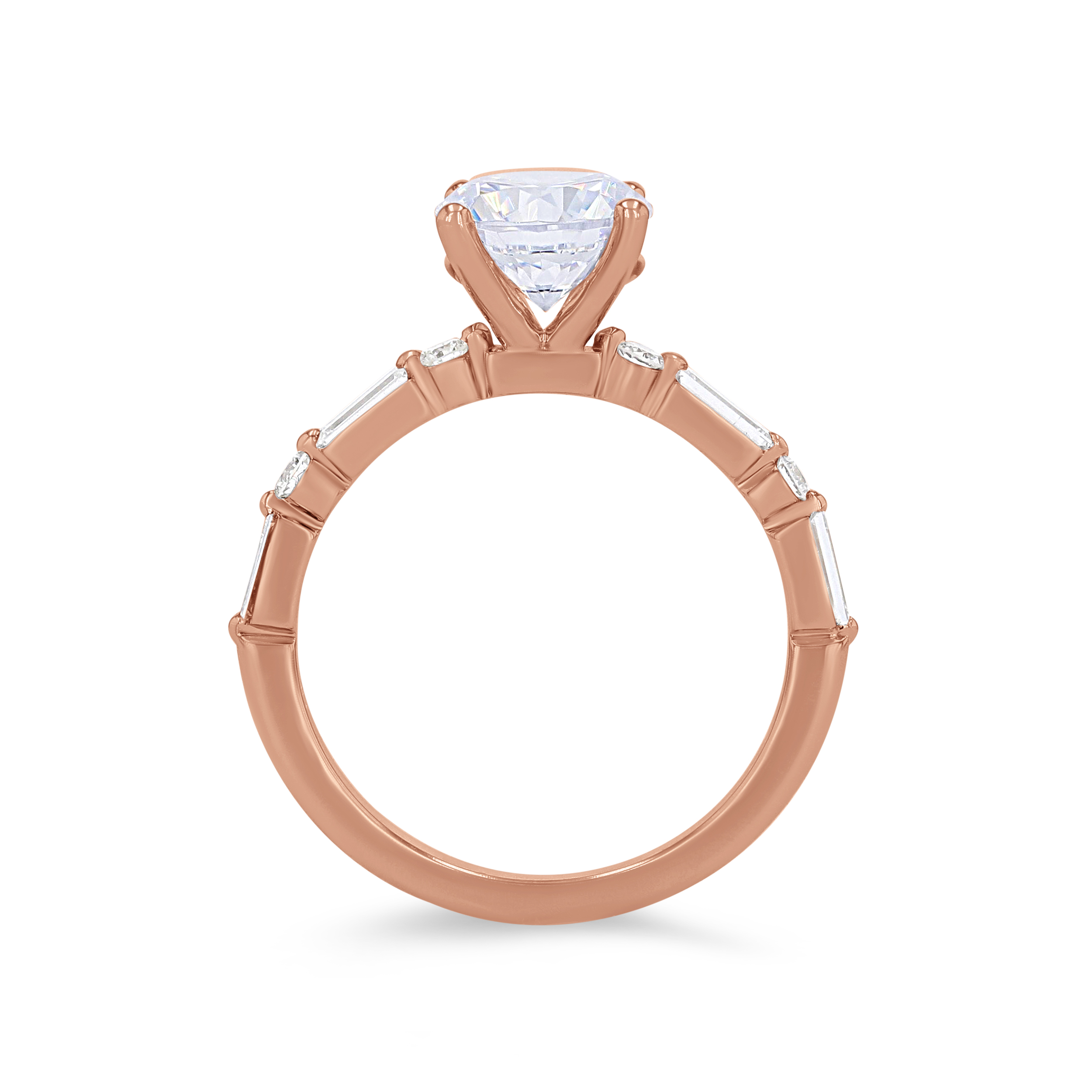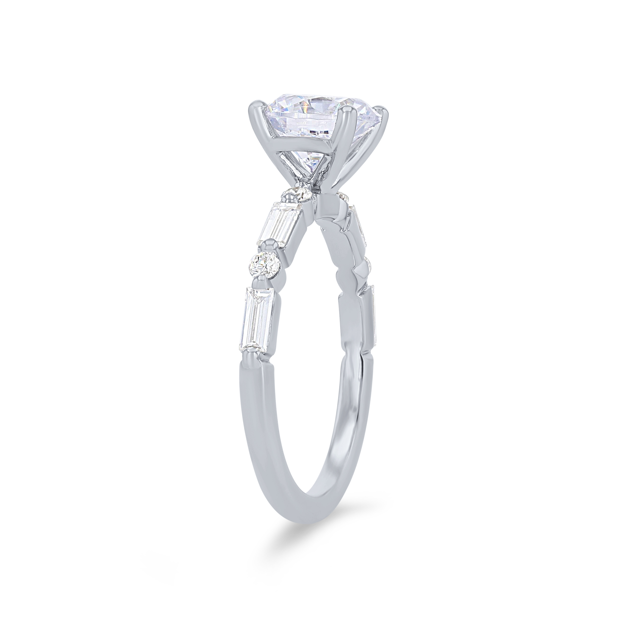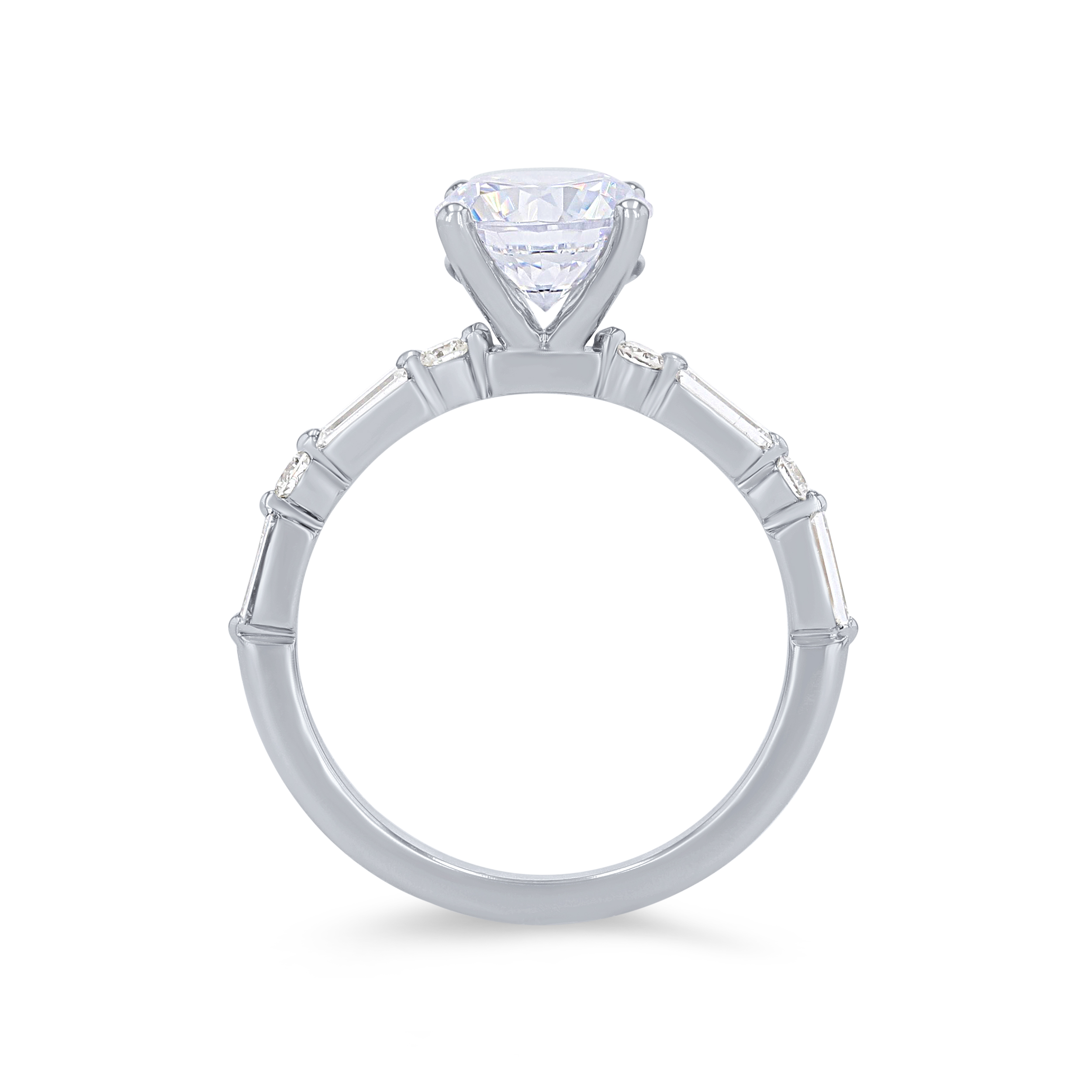 Product Description Alternating in a single prong design, this engagement setting features baguette cut and round brilliant cut diamonds totaling 0.42 carats. Other Details Style: Contemporary Metal Color: White Gold Gemstone Type: Diamond Metal Color: Yellow Gold Total Setting Diamond Carat Weight: 0.42TW Mounting Type: Diamond Accented Metal Color: Rose Gold Metal Color: Platinum Disable Reason: None Type: Setting