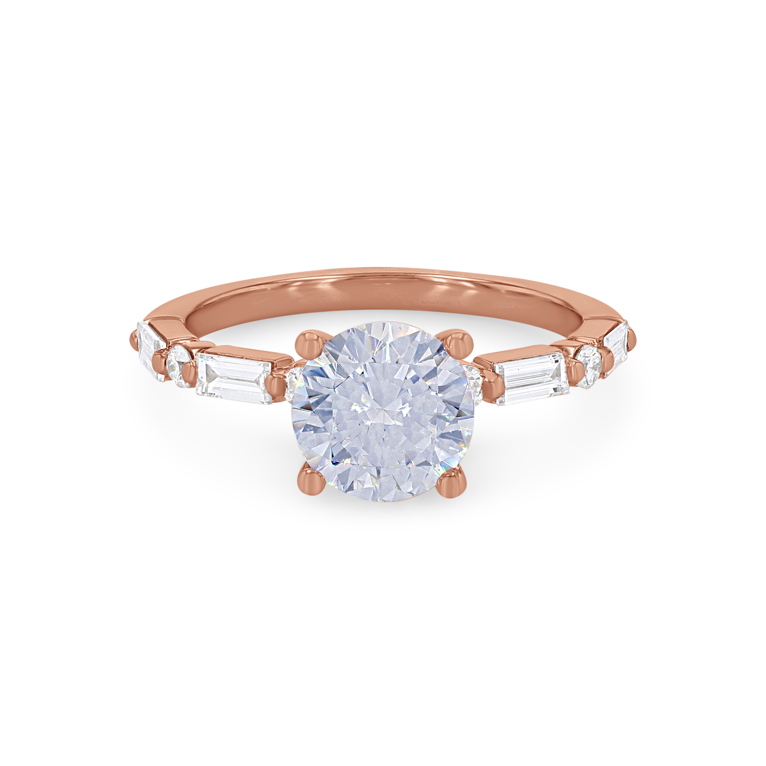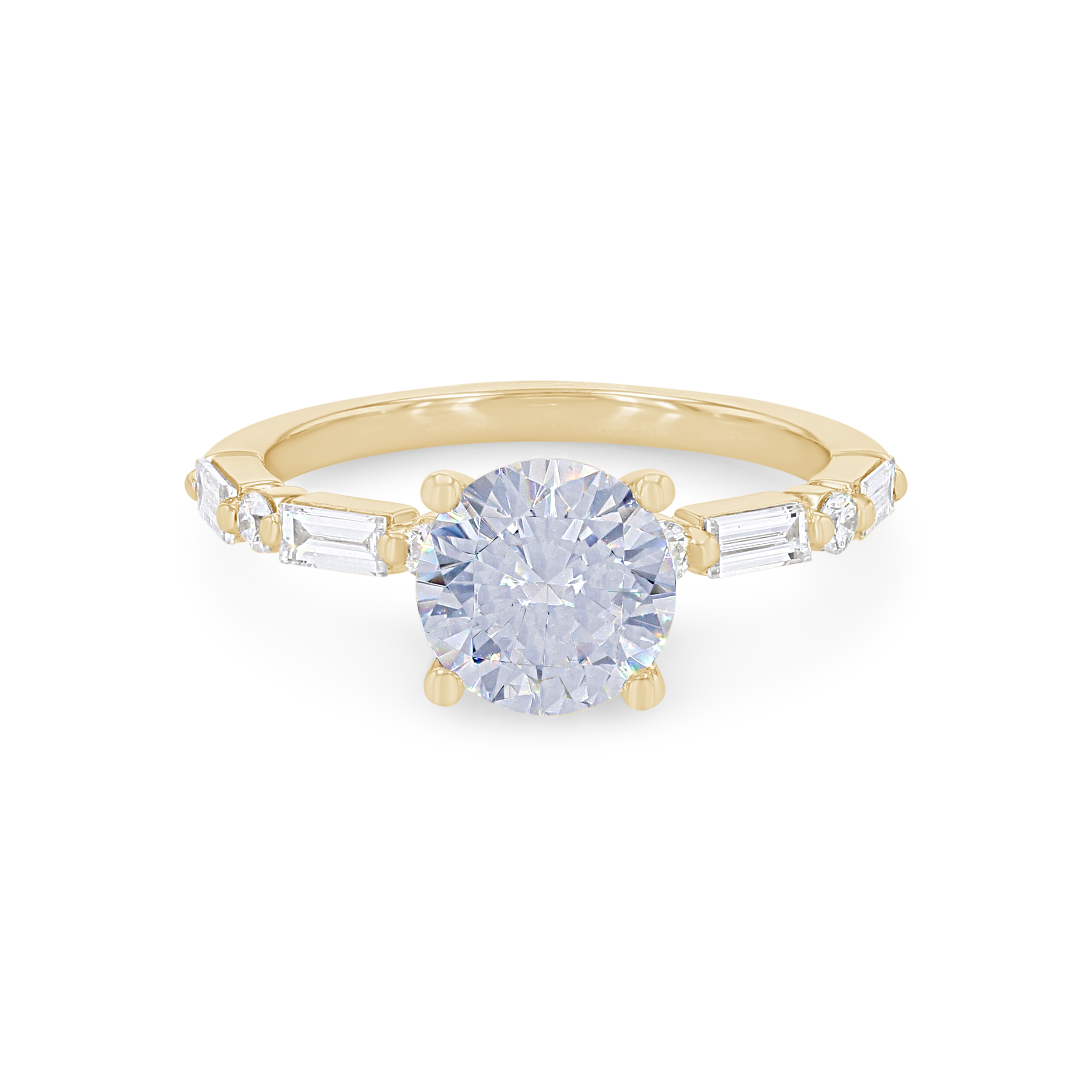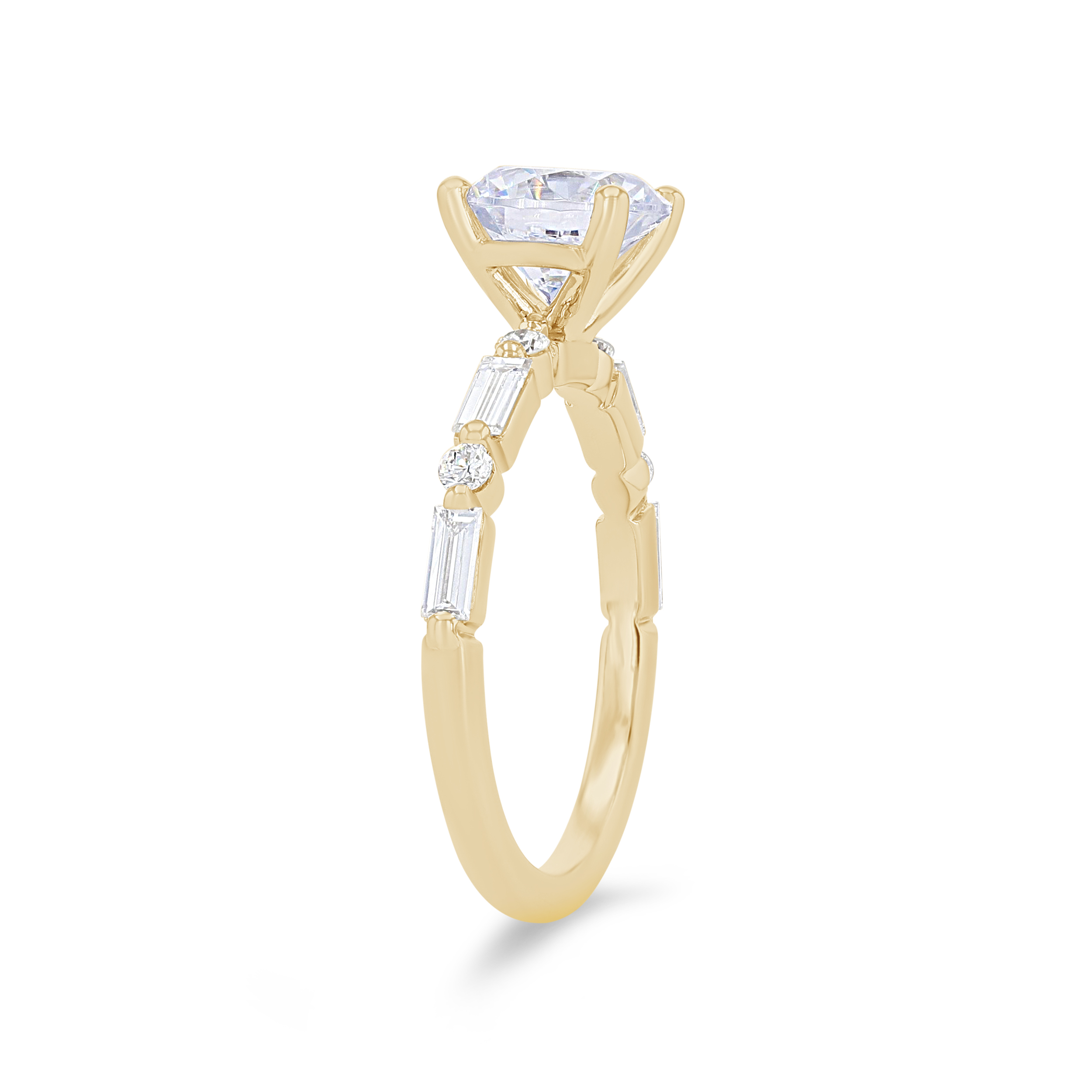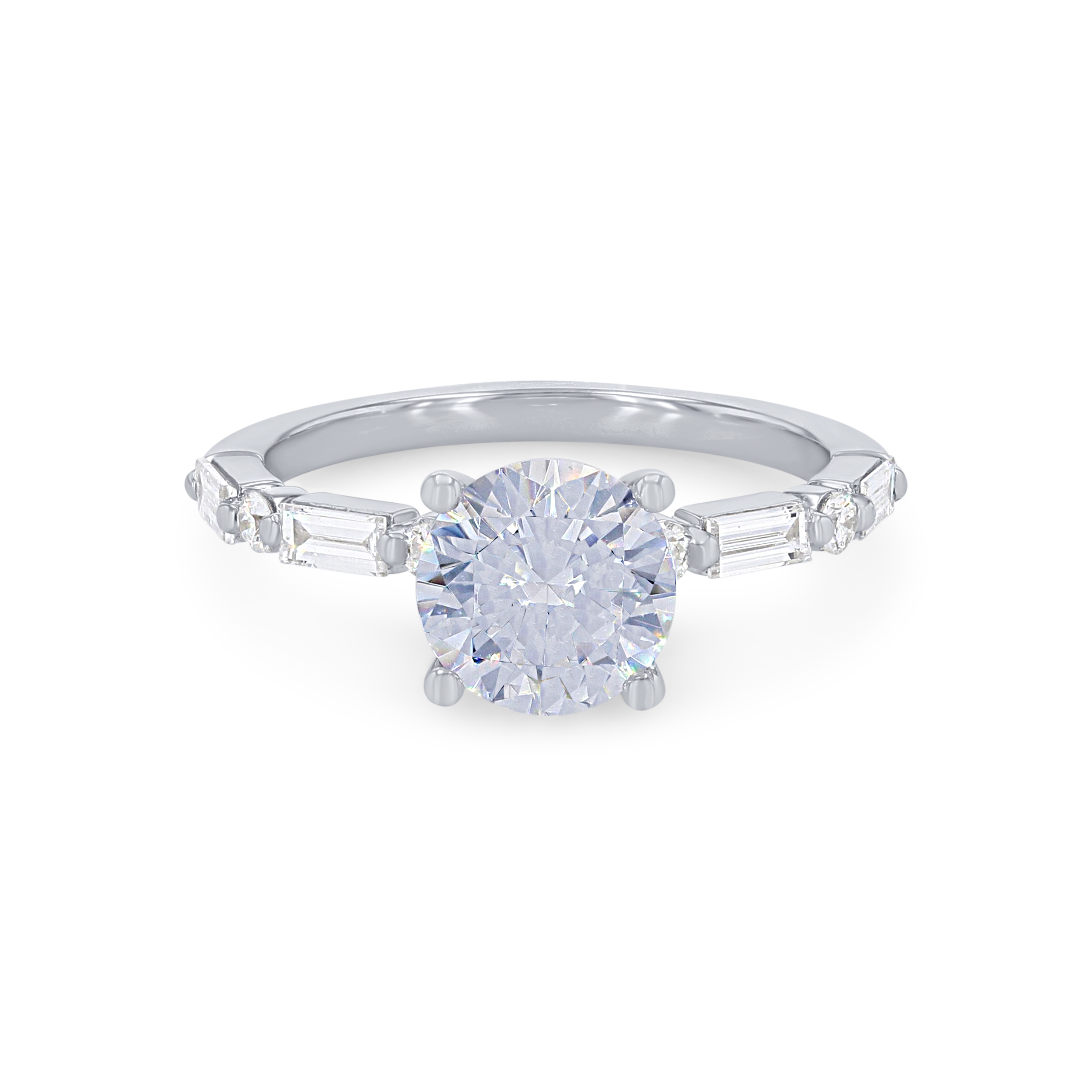 Product Description Alternating in a single prong design, this engagement setting features baguette cut and round brilliant cut diamonds totaling 0.42 carats. Other Details Style: Contemporary Metal Color: White Gold Gemstone Type: Diamond Metal Color: Yellow Gold Total Setting Diamond Carat Weight: 0.42TW Mounting Type: Diamond Accented Metal Color: Rose Gold Metal Color: Platinum Disable Reason: None Type: Setting