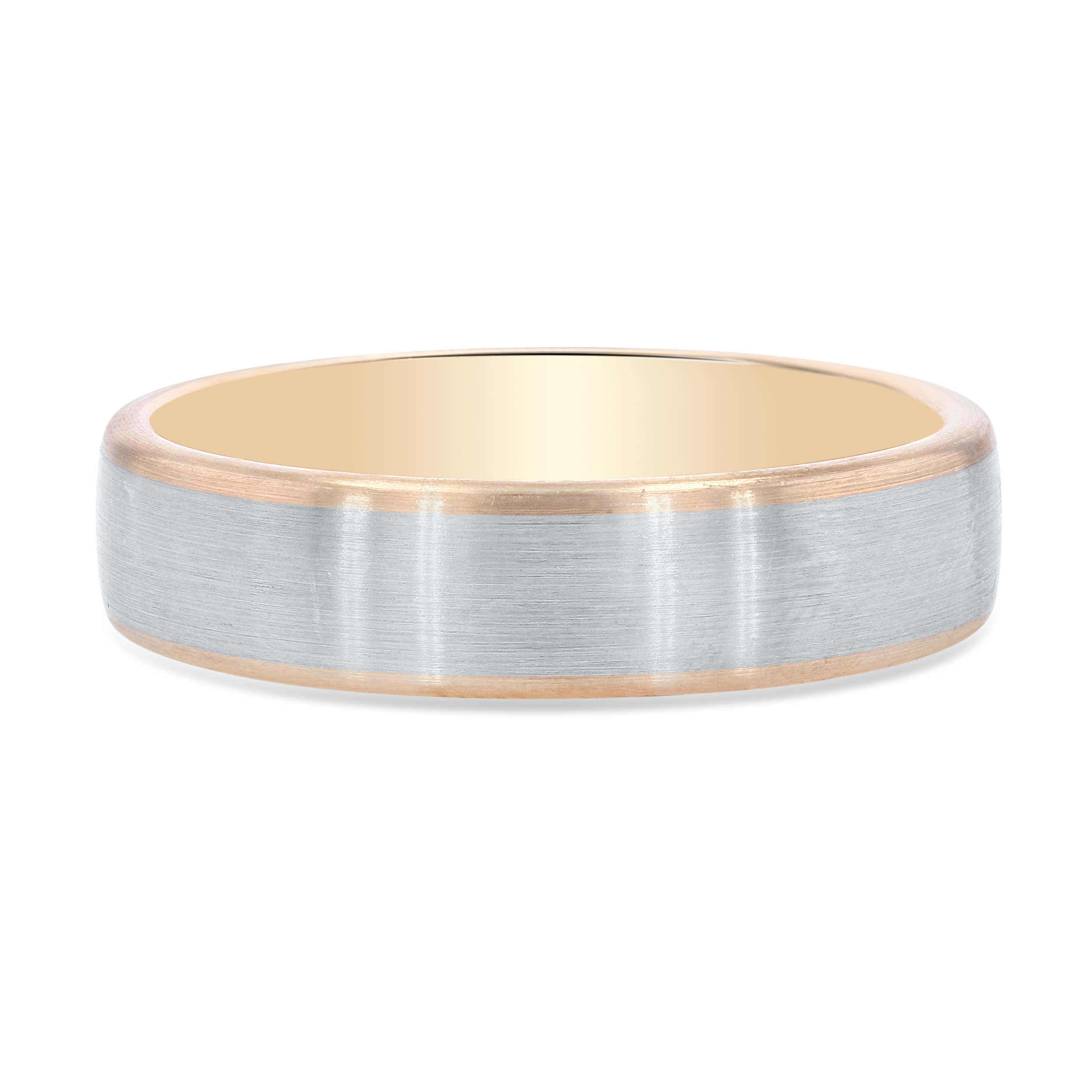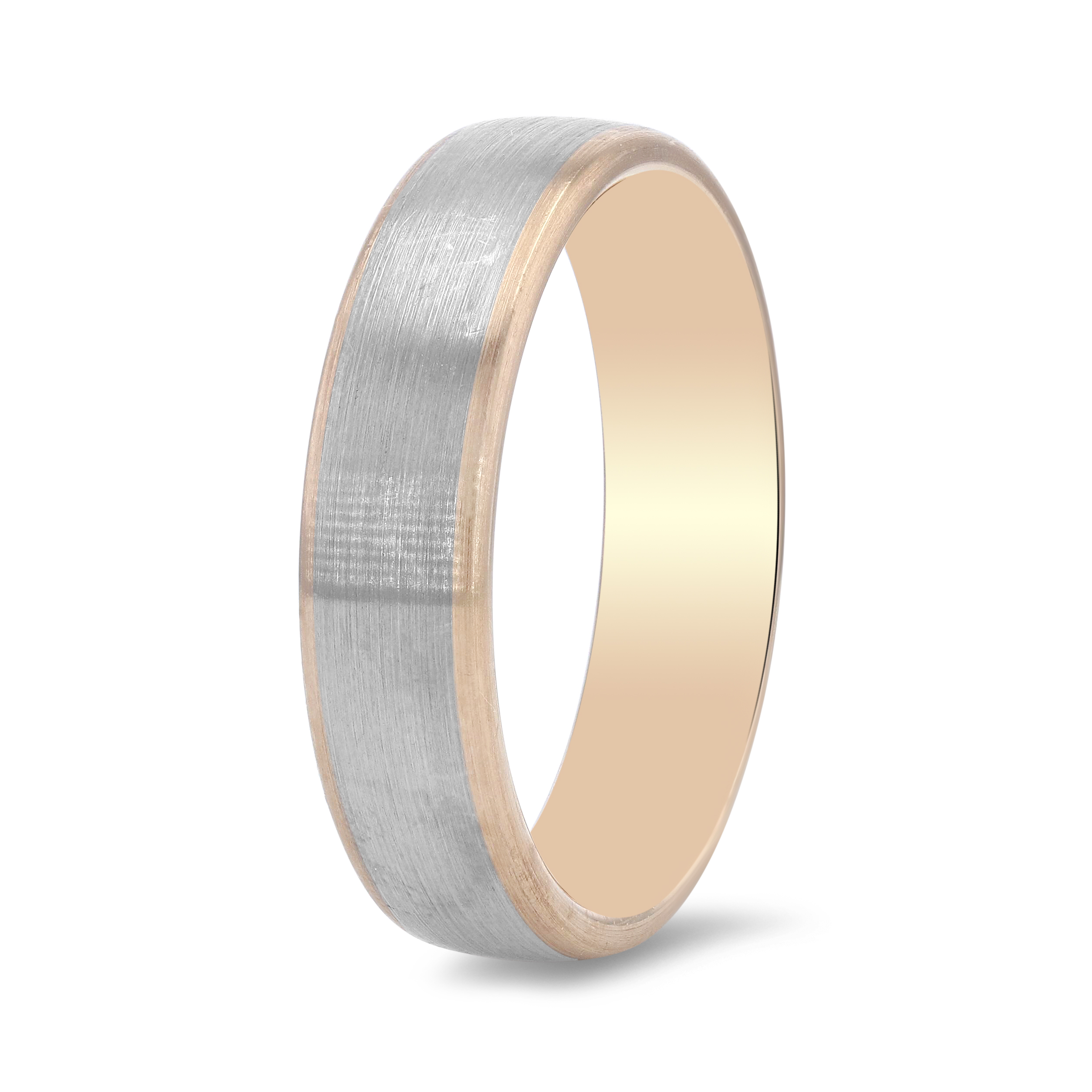 Product Description This mixed metal contemporary wedding band features palladium with gold edges in a matte finish. Other Details Type: Gents Wedding Band Gents Wedding Band Style: Classic Finish: Matte Style: Contemporary