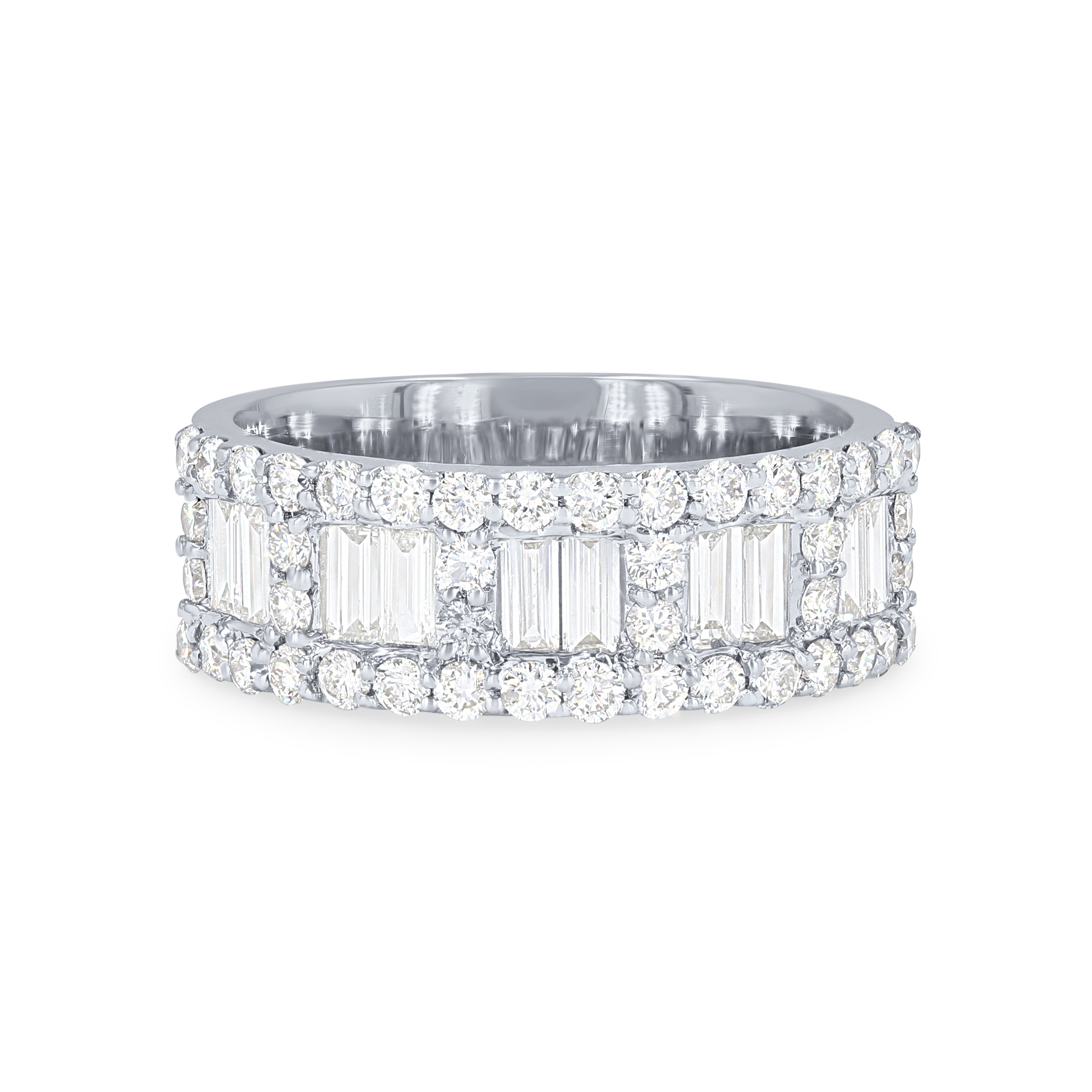 Product Description Full of sparkle, this ring features inset baguette cut diamonds surrounded by round brilliant cut diamonds, all totaling 1.70 carats. Other Details Total Setting Diamond Carat Weight: 1.7TW Gemstone Type: Diamond Type: Ring Metal Color: White Gold Ring Type: Fashion Disable Reason: None Style: Contemporary