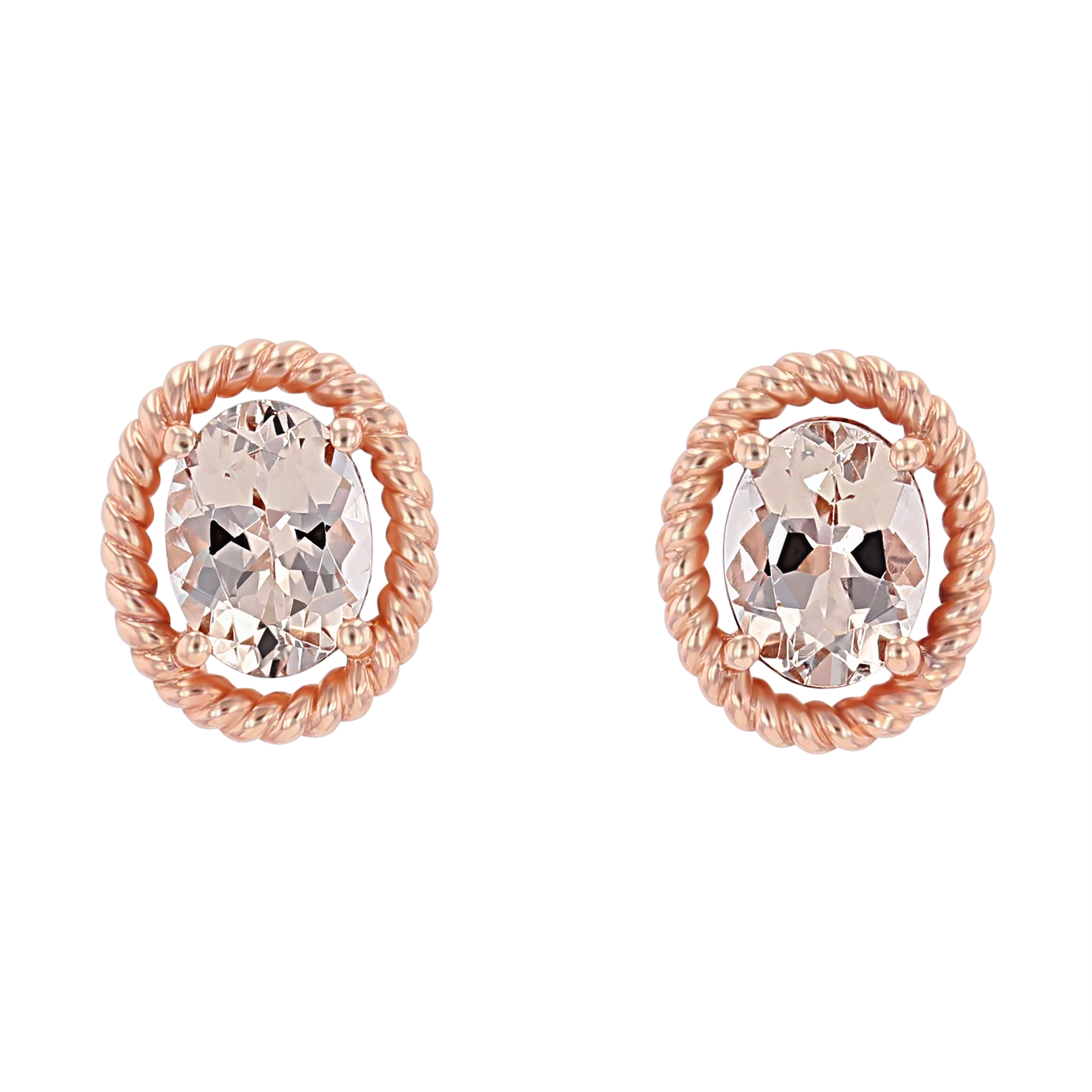 Product Description Showcasing 2.24 carats of beautiful morganites, these earrings have a delicate rope style halo. Other Details Gemstone Type: Morganite Metal Color: Rose Gold Women Wedding Band Type: Gemstone Type: Earrings Disable Reason: None Style: Contemporary Earring Type: Gemstones Total Gemstone Carat Weight: 2.24TW