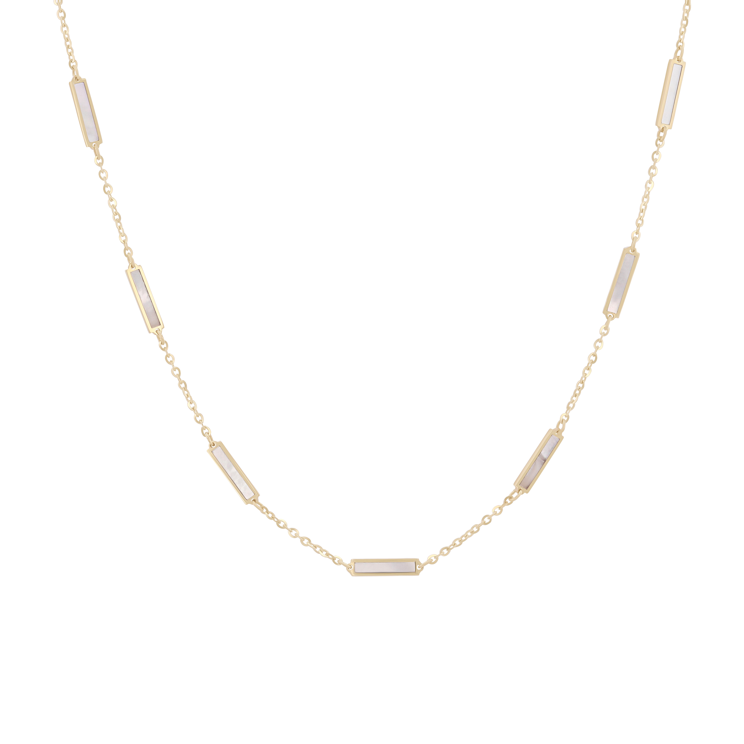 Product Description Beautiful segments of mother of pearl are outlined by 14 karat yellow gold. Other Details Length: 20 IN Gemstone Type: Pearl Necklace Type: Fashion Metal Color: Yellow Gold Disable Reason: None Style: Contemporary Pendant Type: Gemstone Type: Necklace