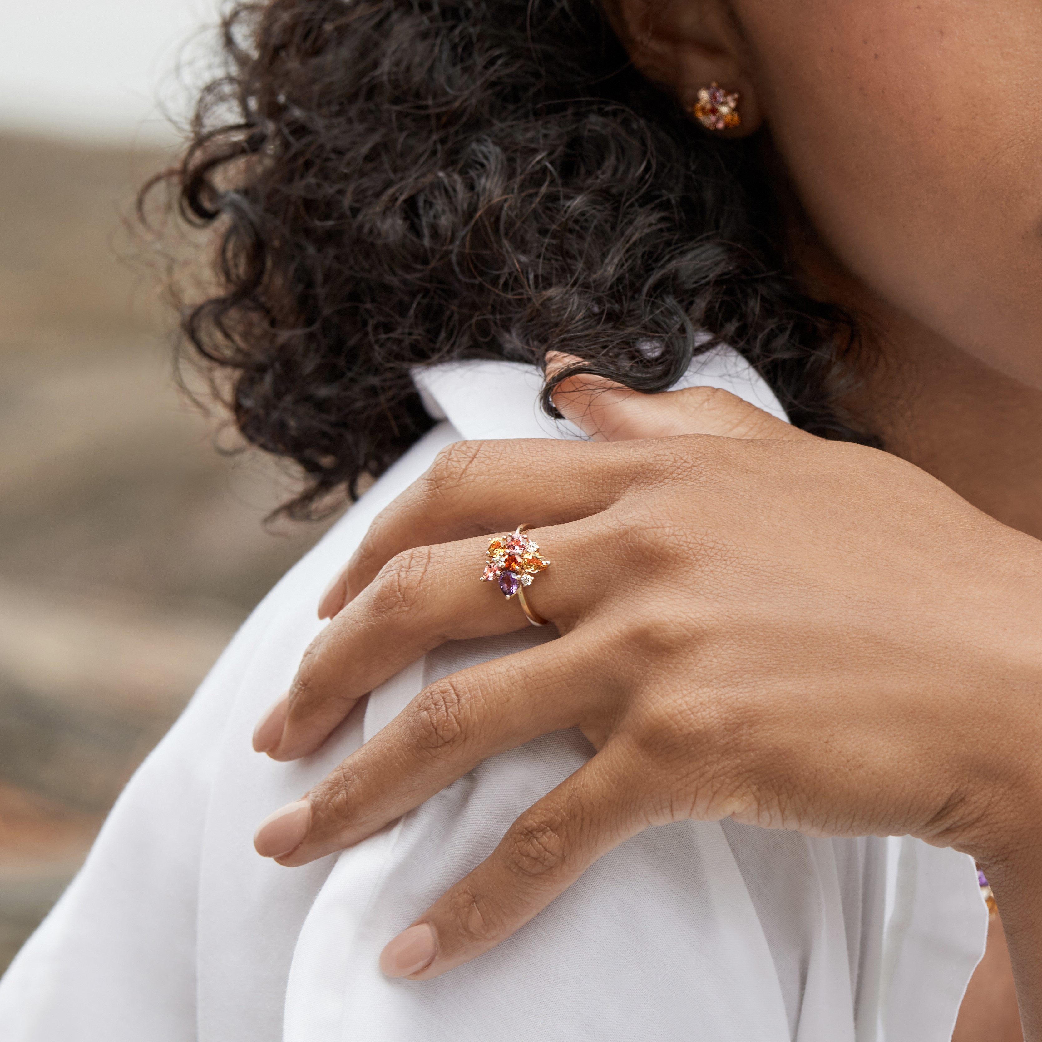Product Description Full of color, this cluster ring features citrine, pink tourmaline, and amethyst totaling 1.70 carats and round brilliant cut diamonds totaling 0.12 carats. Other Details Total Setting Diamond Carat Weight: 0.12TW Type: Ring Disable Reason: None Total Gemstone Carat Weight: 1.7TW Metal Color: Yellow Gold Gemstone Type: Citrine Style: Contemporary Women Wedding Band Type: Gemstone