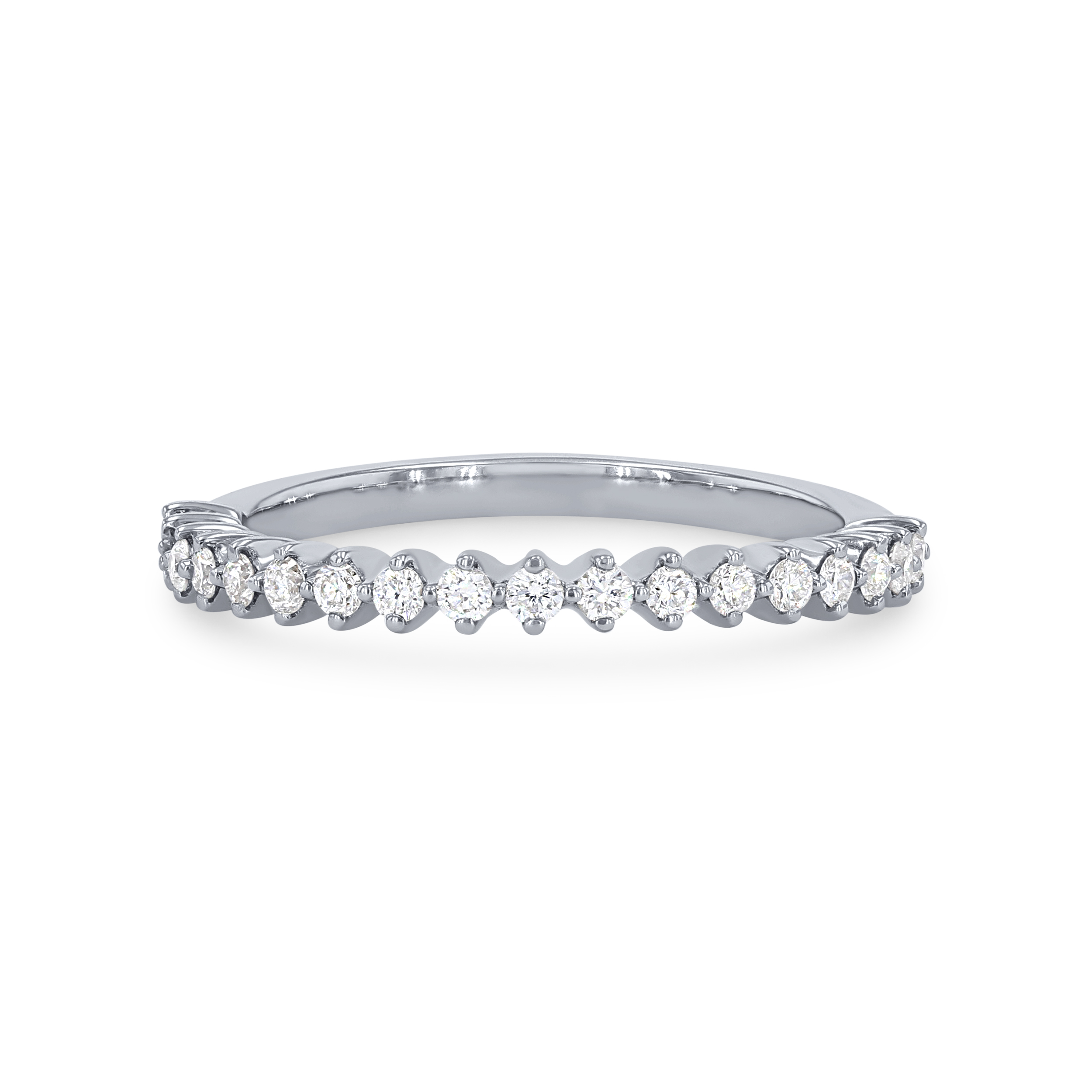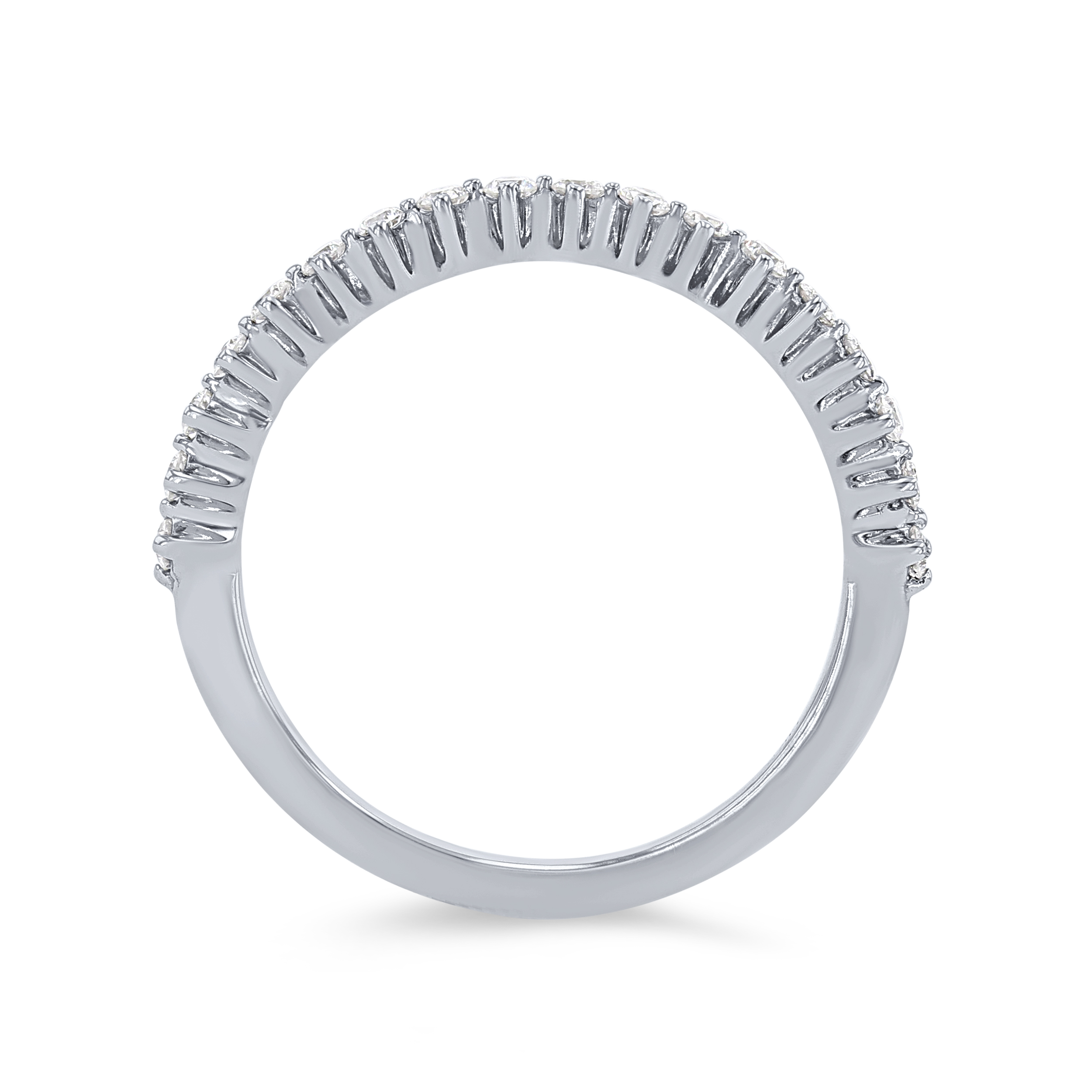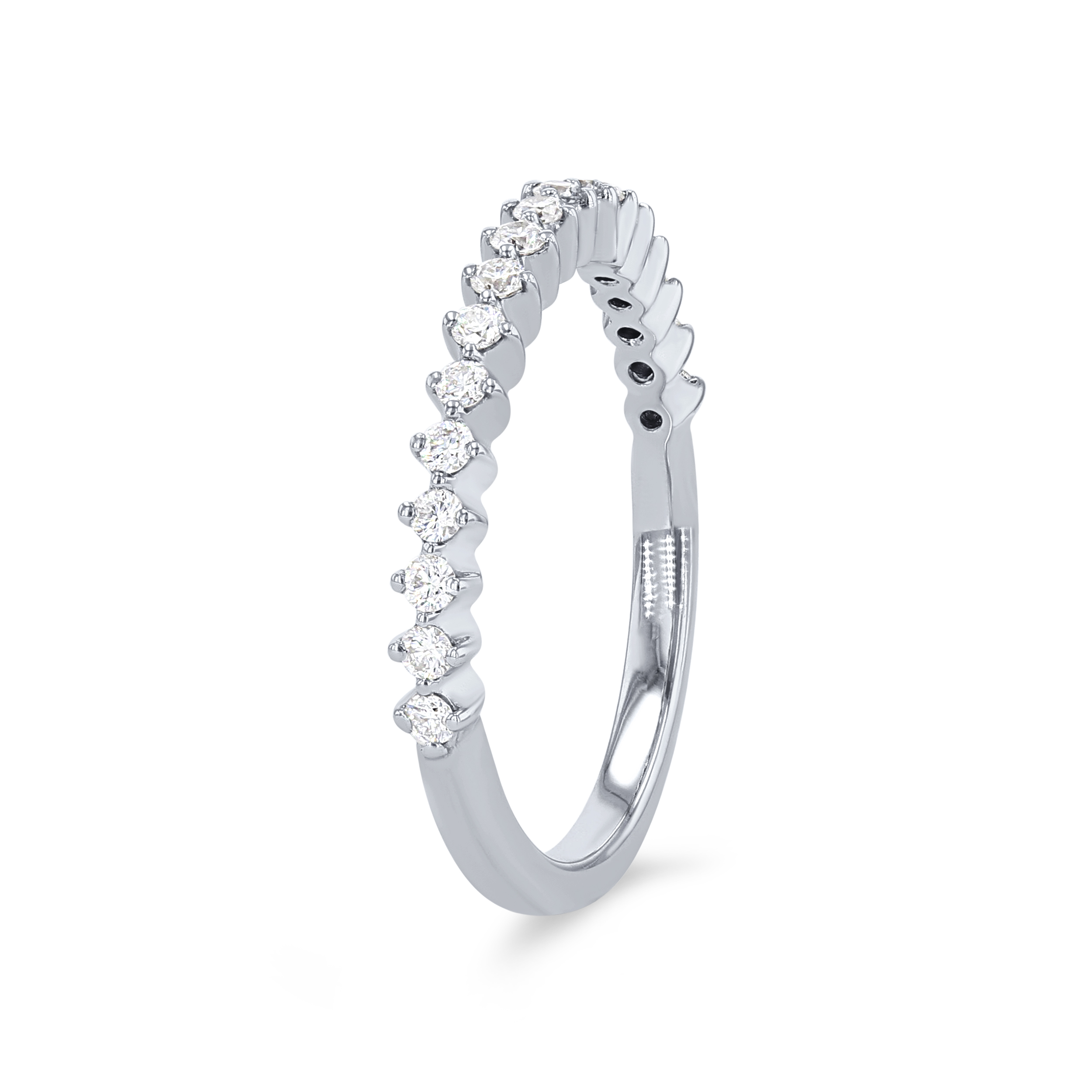 Product Description Each of the round brilliant cut diamonds is held in a kite-set prong, giving this band a distinct look. The diamonds total 0.26 carats. Other Details Metal Color: Rose Gold Diamond: Stackable Disable Reason: None Metal Color: Yellow Gold Total Setting Diamond Carat Weight: 0.26TW Gemstone Type: Diamond Metal Color: Platinum Wedding Band Type: Fancy Shapes Metal Color: White Gold Type: Ladies Wedding Band Style: Contemporary