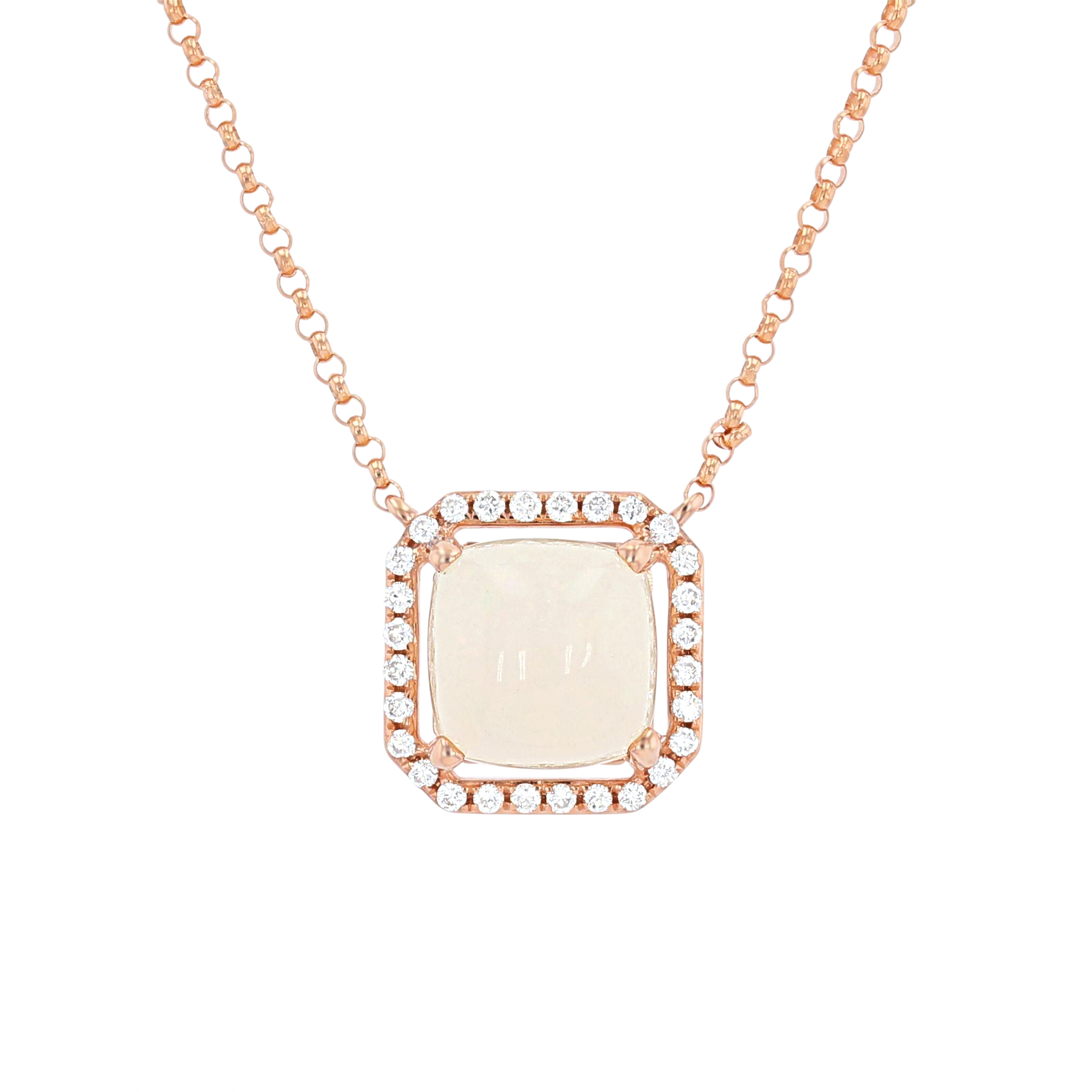 Product Description Wear a subtle pop of color with this beautiful pendant featuring a 1.40 carat opal surrounded by a halo of round brilliant cut diamonds totaling 0.14 carats. Other Details Total Setting Diamond Carat Weight: 0.14TW Type: Necklace Gemstone Type: Opal Disable Reason: None Necklace Type: Fashion Style: Contemporary