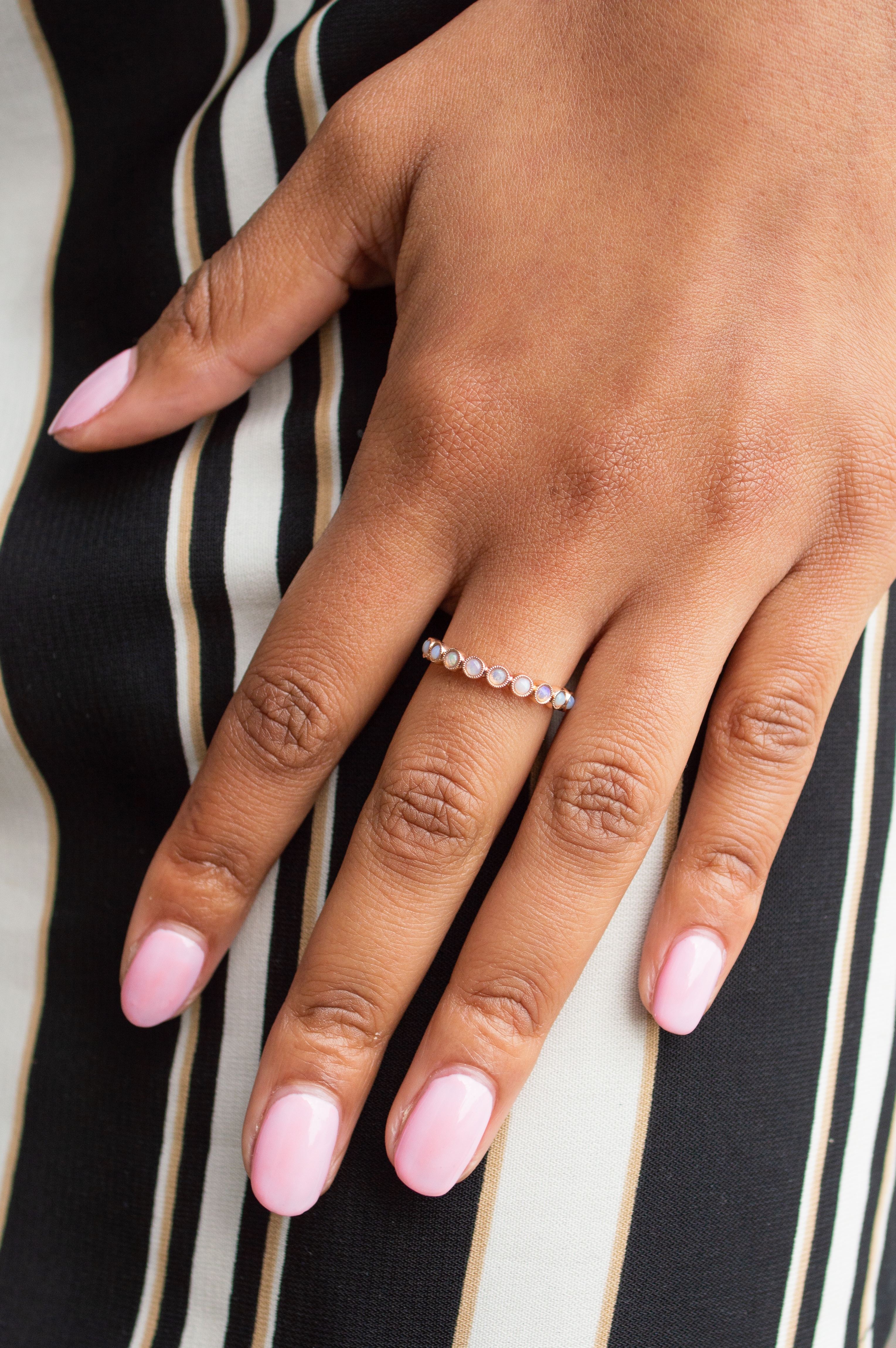 Opal Bezel Milgrain Wedding Band by Classique