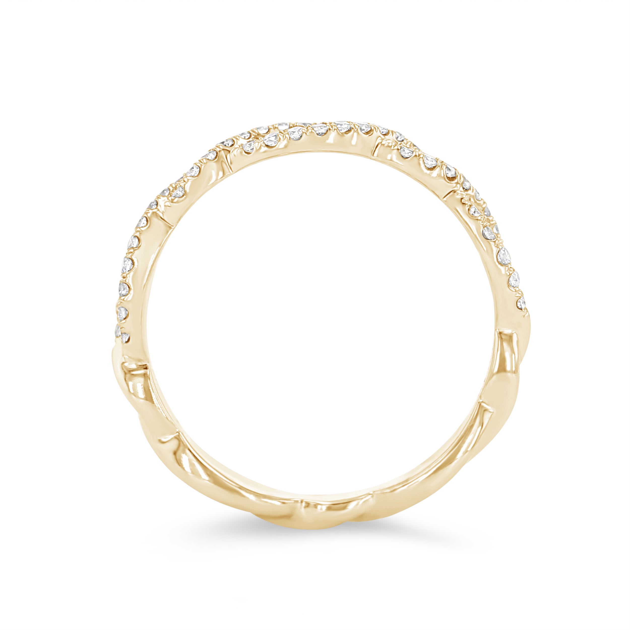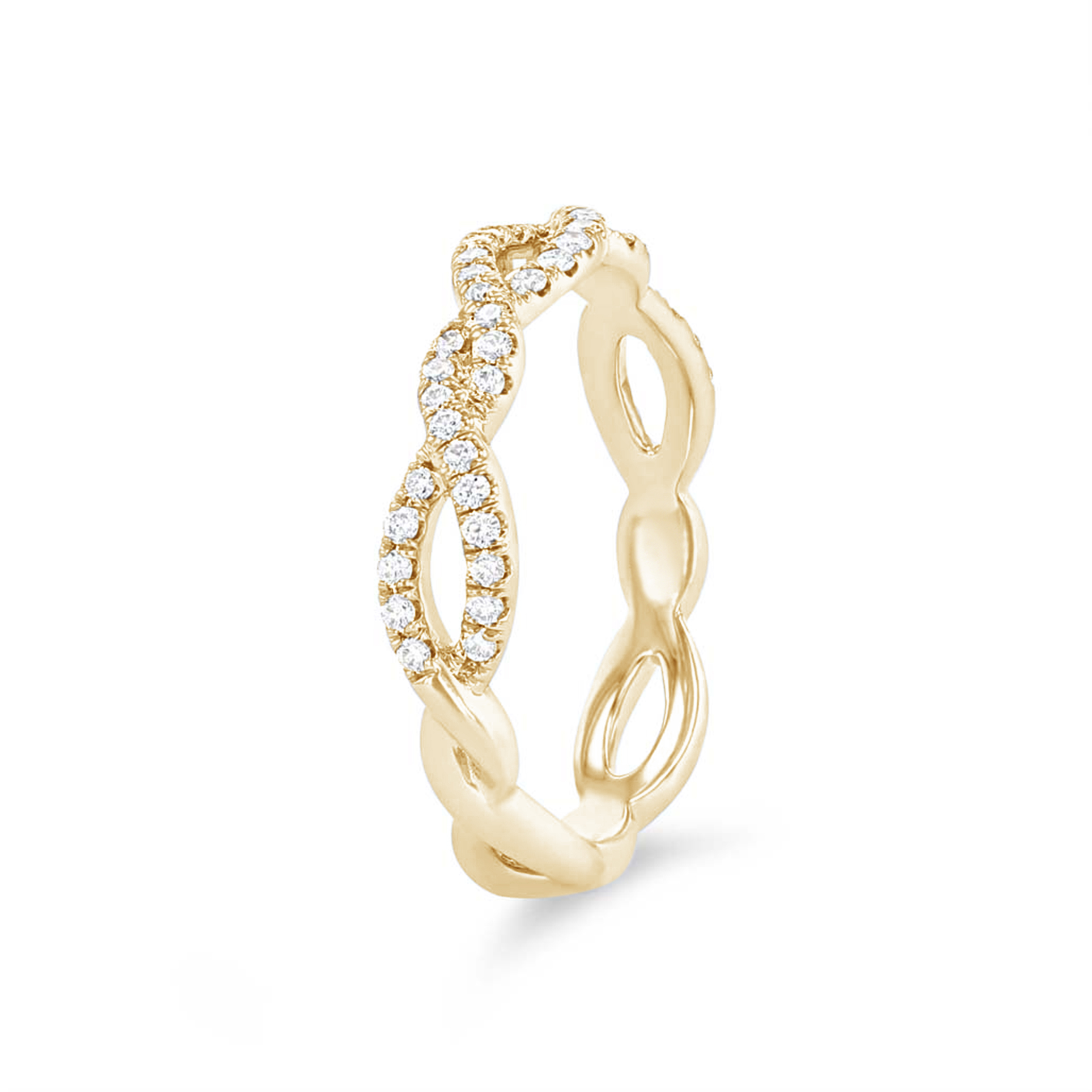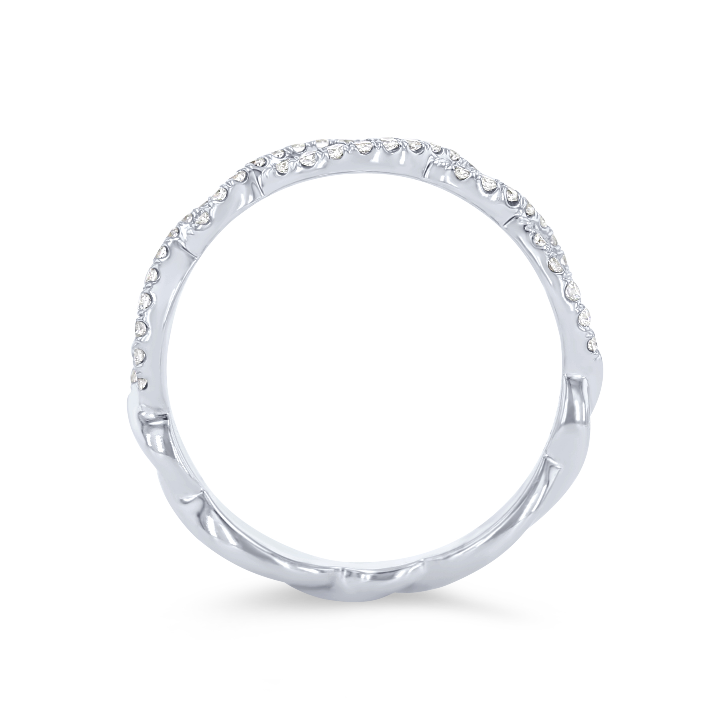 Product Description A romantic contemporary design, this wedding features open and closed twists accented by 0.25 carats of round brilliant cut diamonds. Other Details Type: Ladies Wedding Band Wedding Band Type: Twist Metal Color: Rose Gold Diamond: Stackable Metal Color: White Gold Total Setting Diamond Carat Weight: 0.25TW Gemstone Type: Diamond Metal Color: Platinum Disable Reason: None Metal Color: Yellow Gold Style: Contemporary