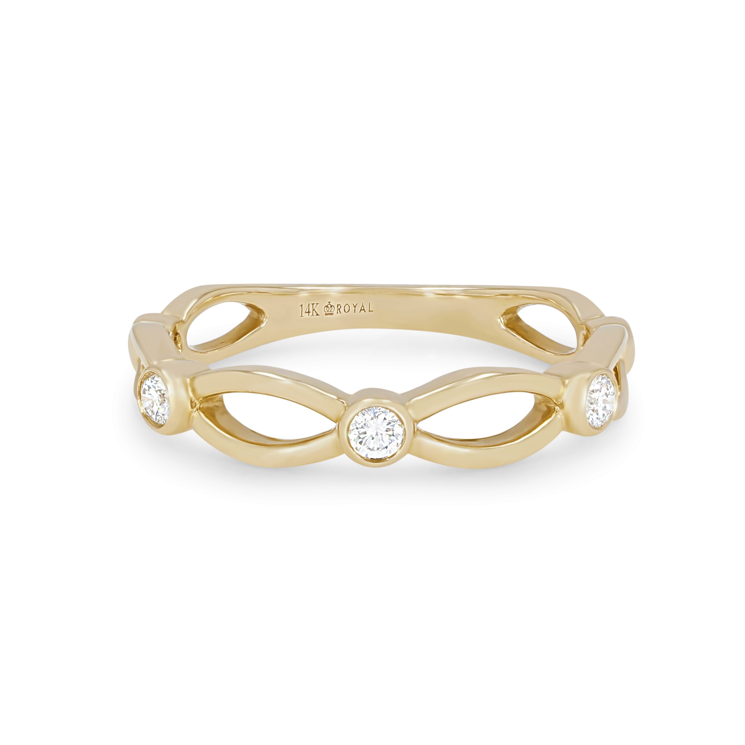 Product Description This open twist style wedding band features three round brilliant cut diamonds totaling 0.12 carats. Wear it with a wedding set or as a fashion statement. Other Details Diamond: Stackable Total Setting Diamond Carat Weight: 0.12TW Metal Color: Rose Gold Metal Color: White Gold Ring Type: Fashion Metal Color: Yellow Gold Disable Reason: None Style: Contemporary Gemstone Type: Diamond Wedding Band Type: Twist Type: Ladies Wedding Band